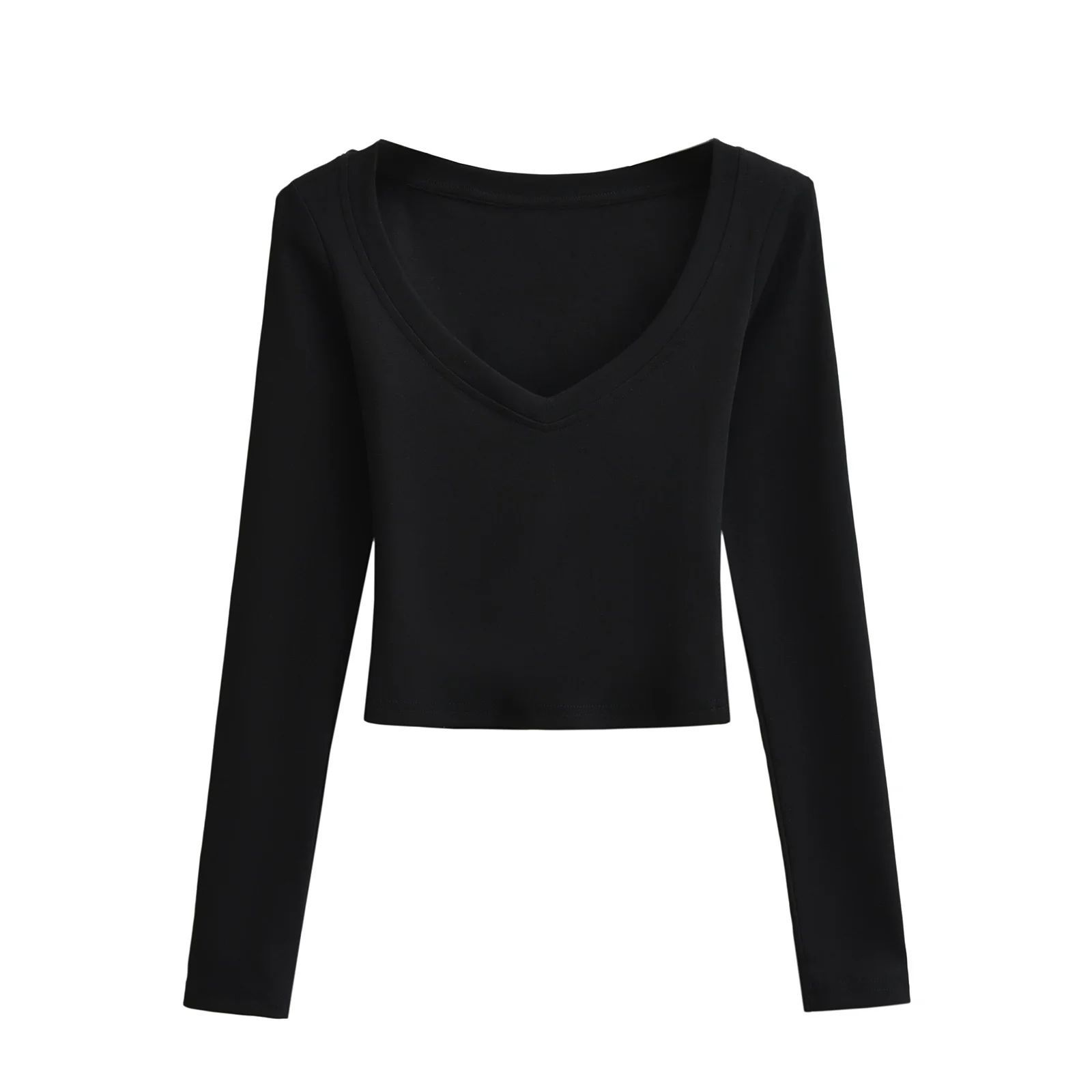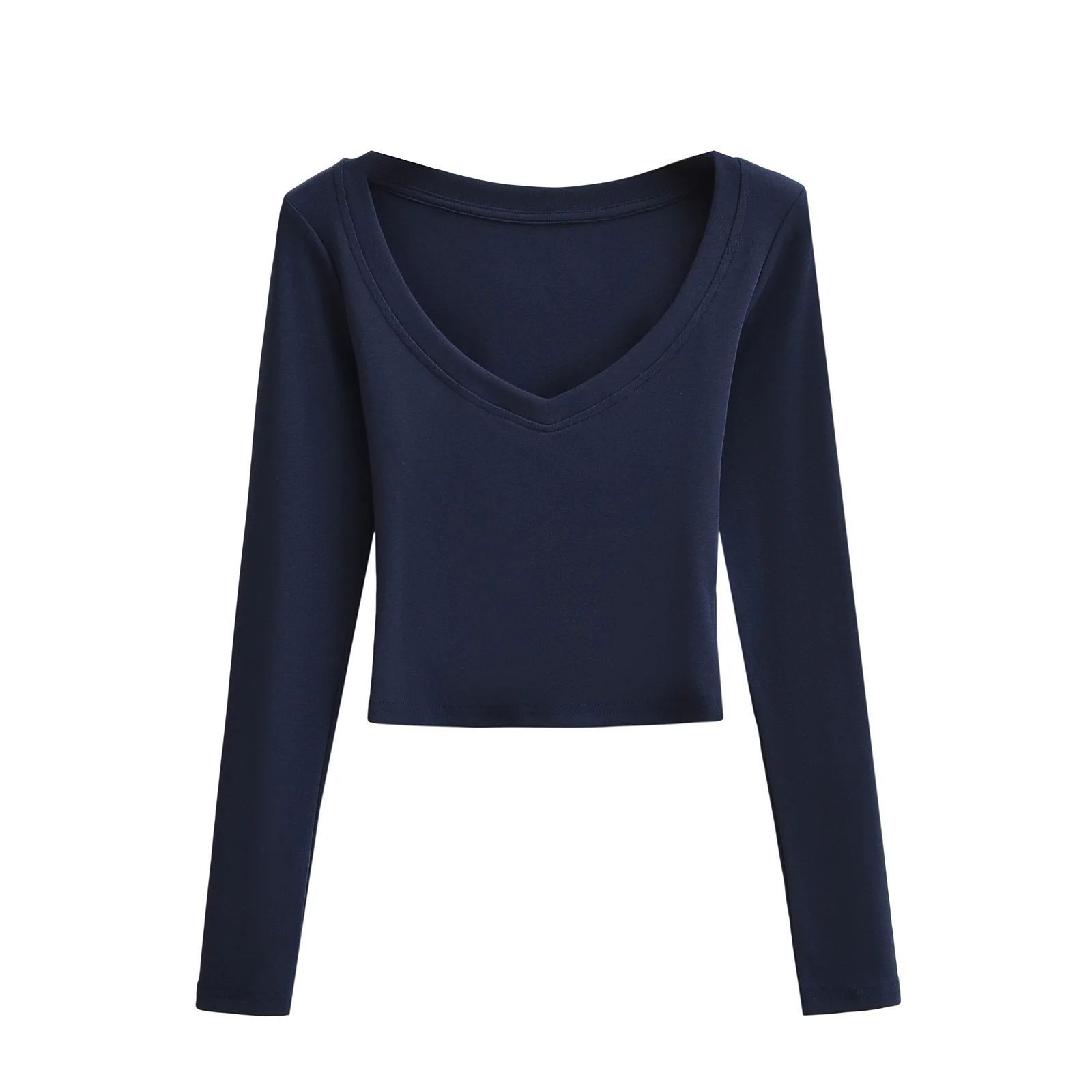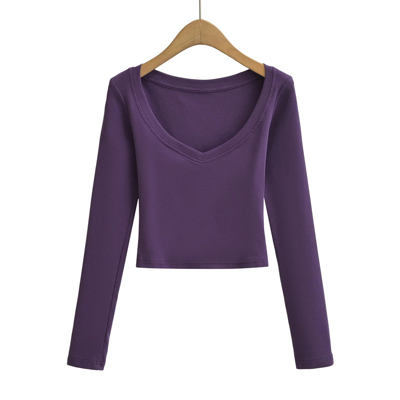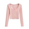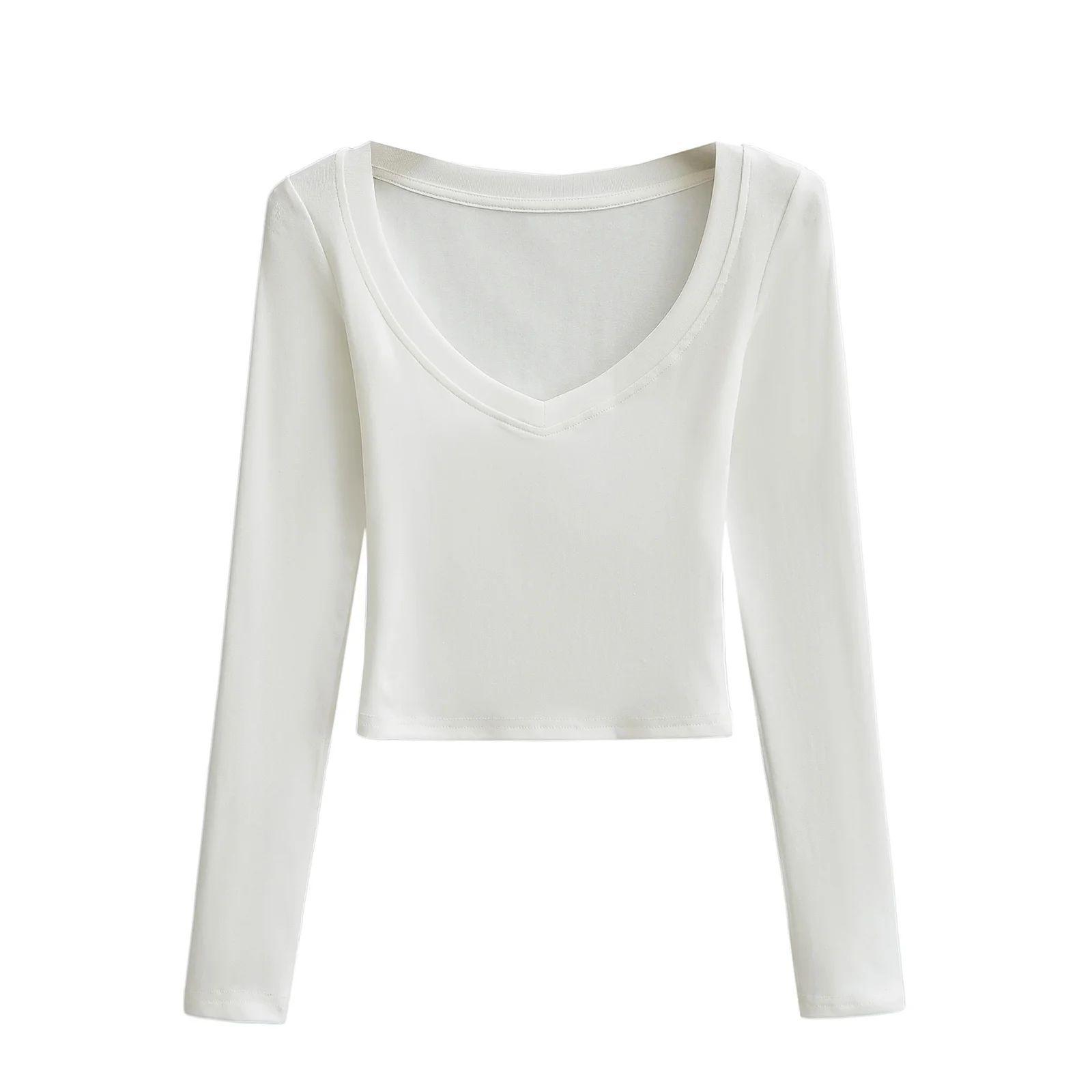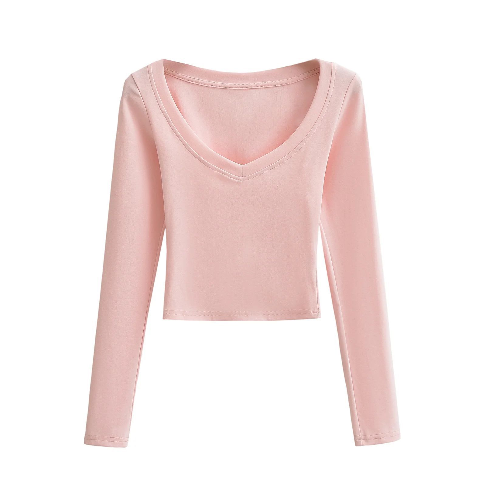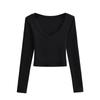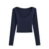 Camiseta de manga larga con cuello en forma de corazón, estilo Spice Girls, estilo europeo y americano, sexy y puro, para otoño e invierno, corte entallado y adelgazante.