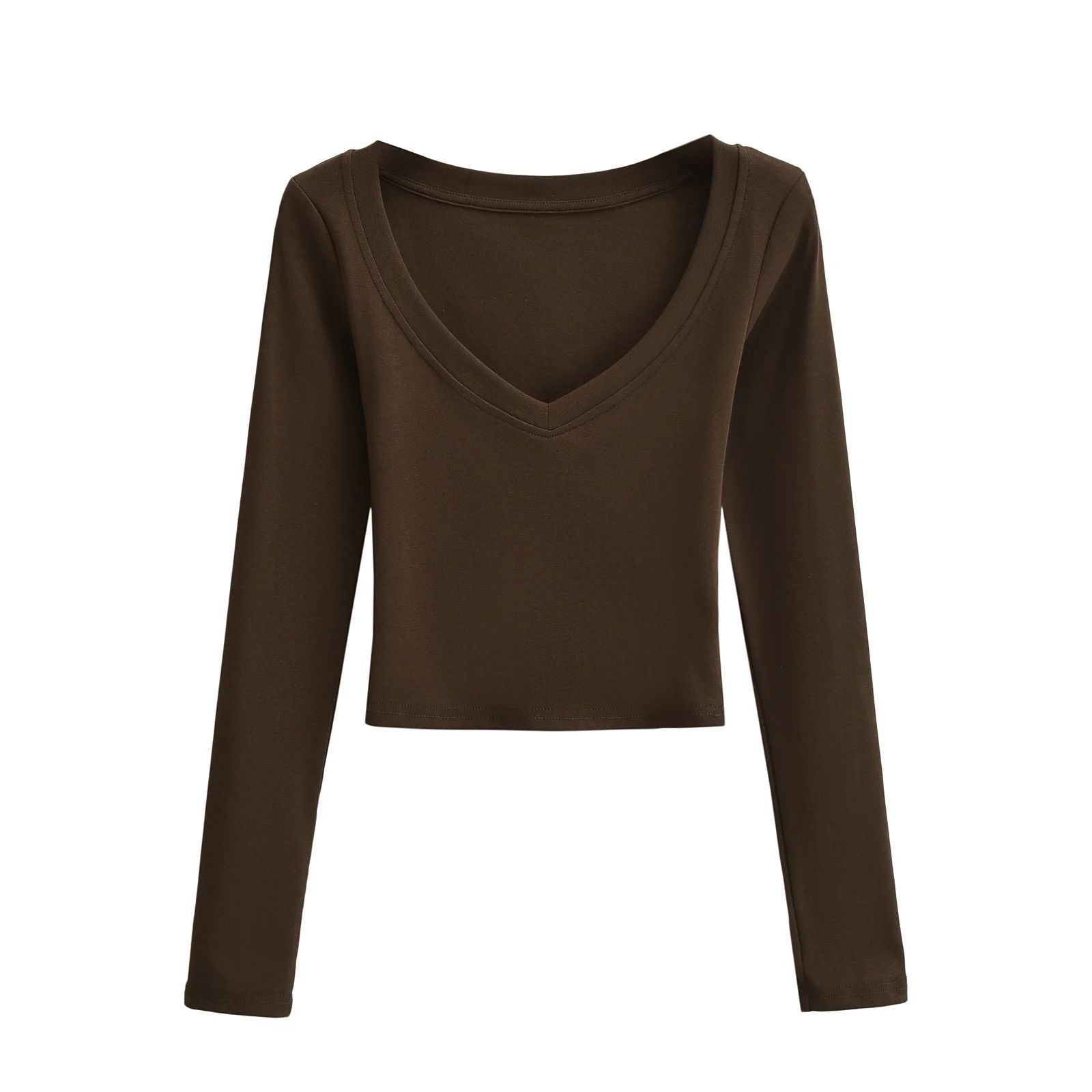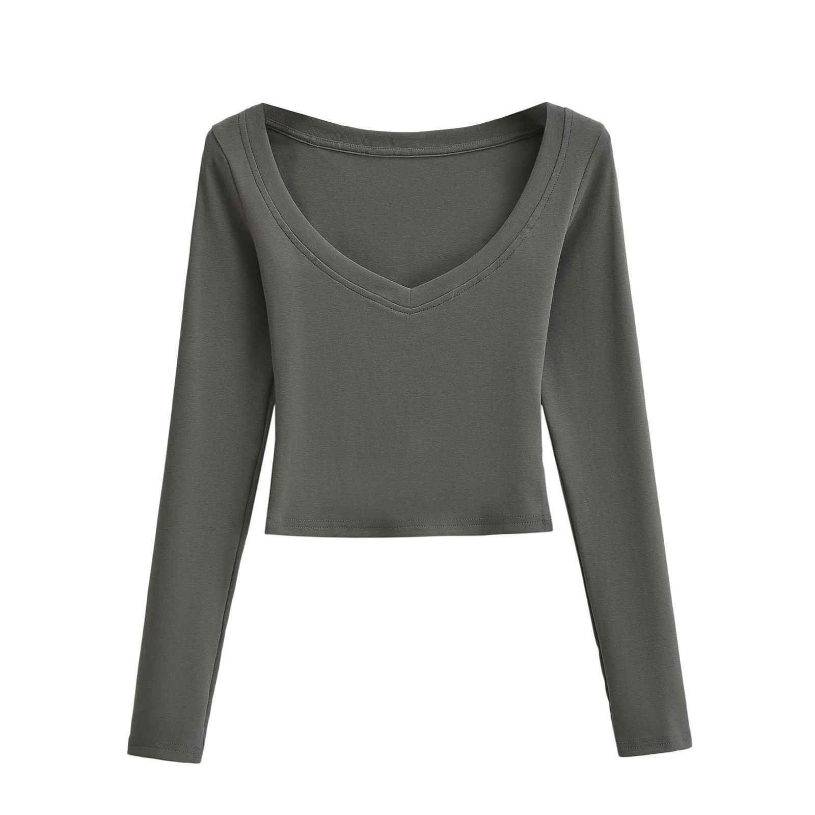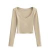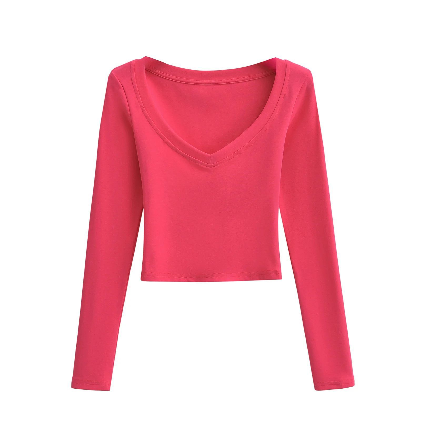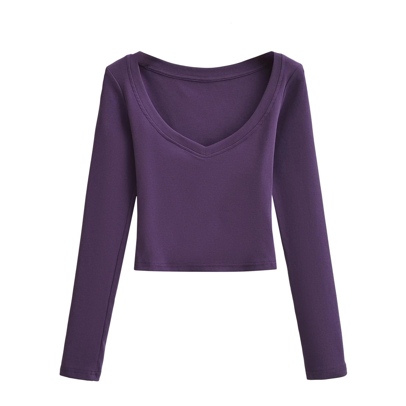 Camiseta de manga larga con cuello en forma de corazón, estilo Spice Girls, estilo europeo y americano, sexy y puro, para otoño e invierno, corte entallado y adelgazante.