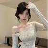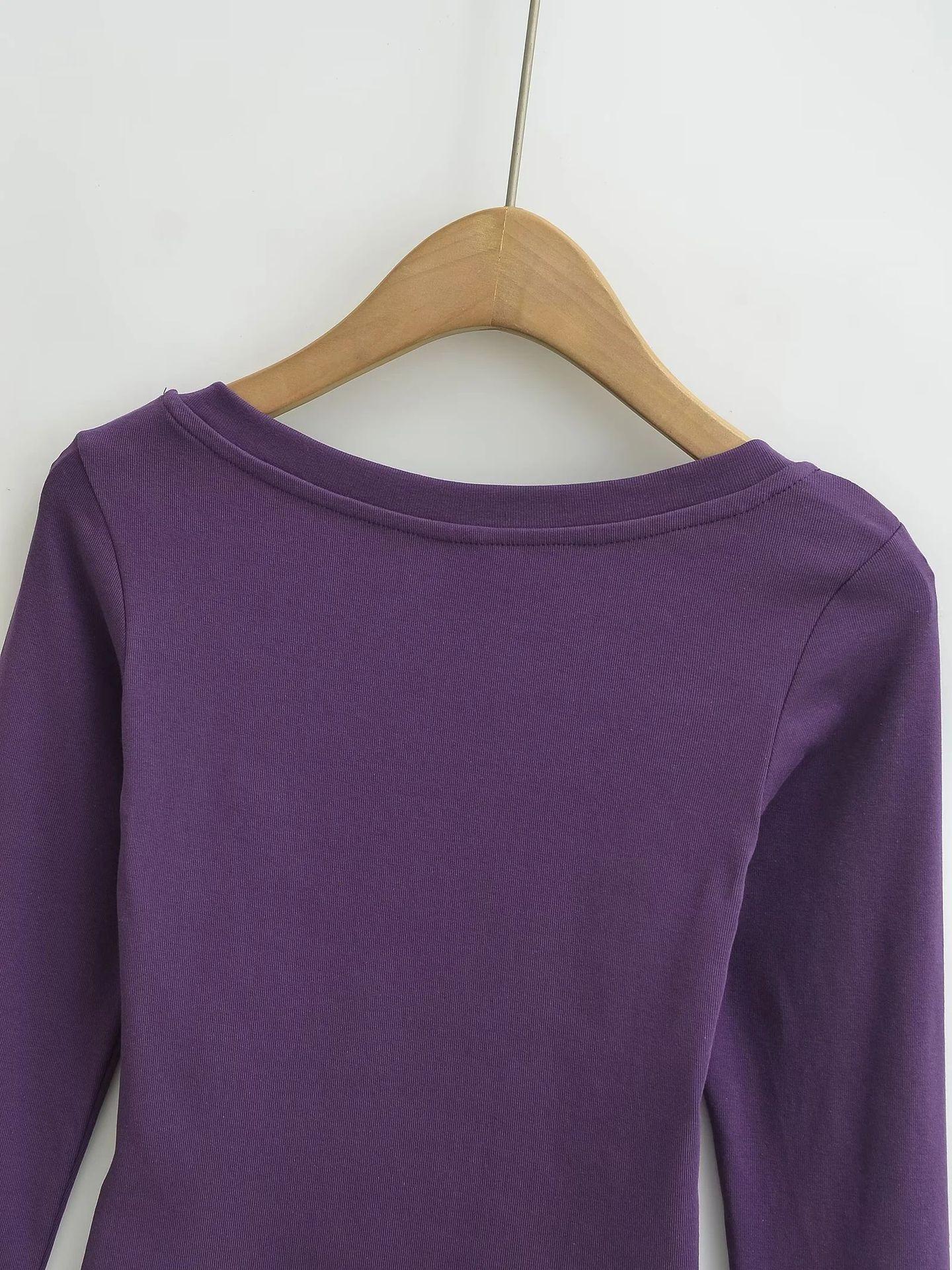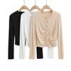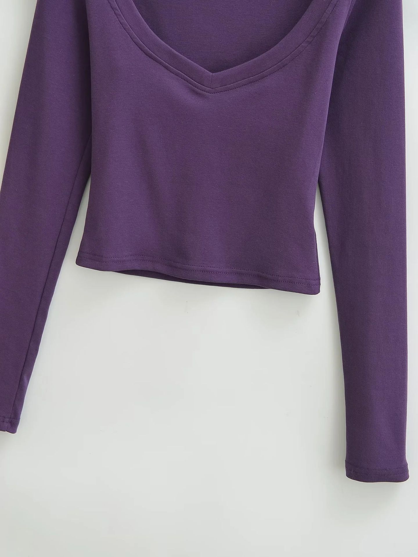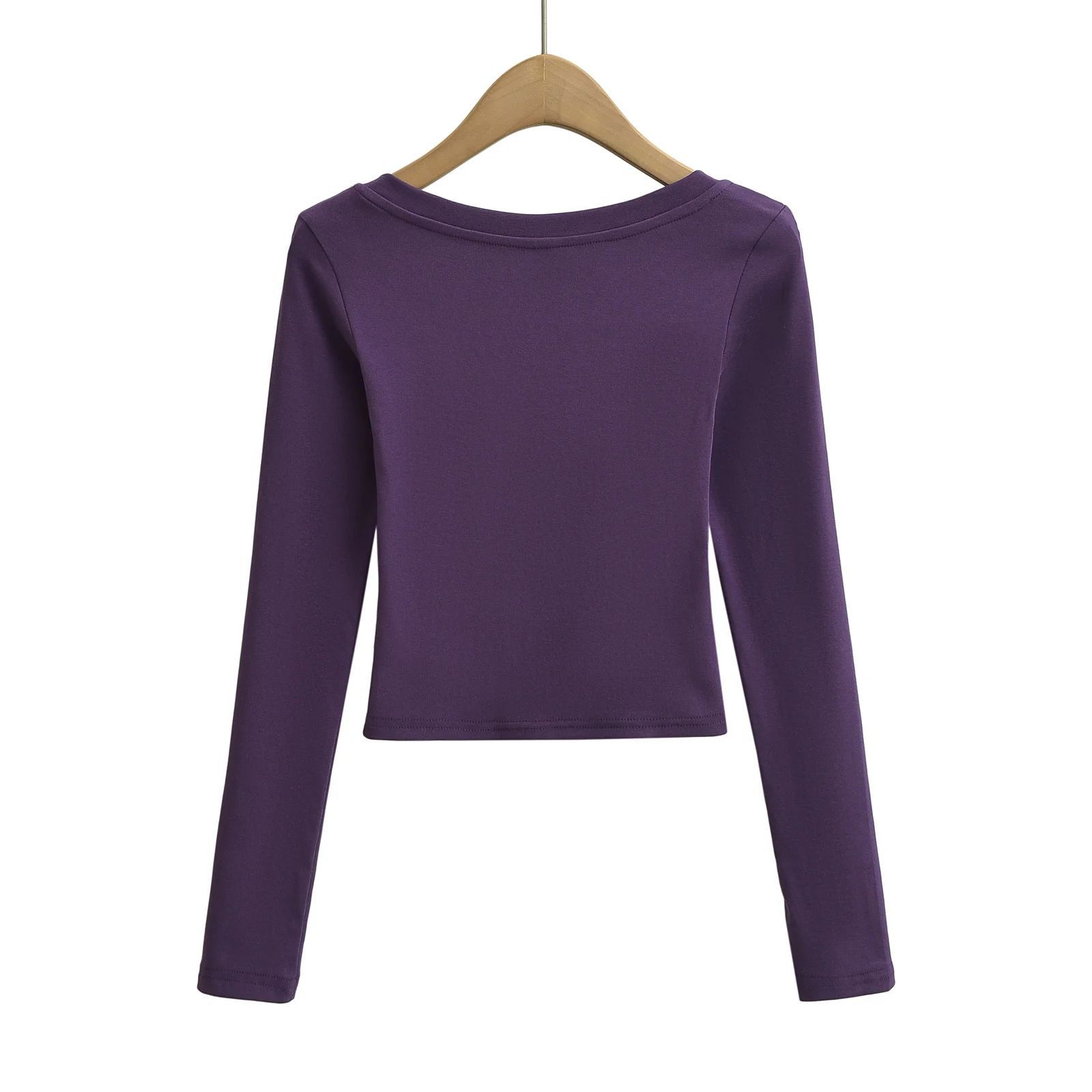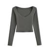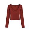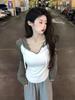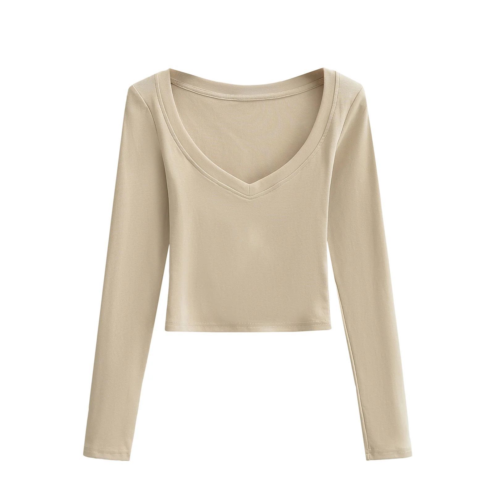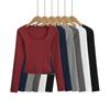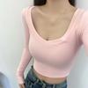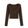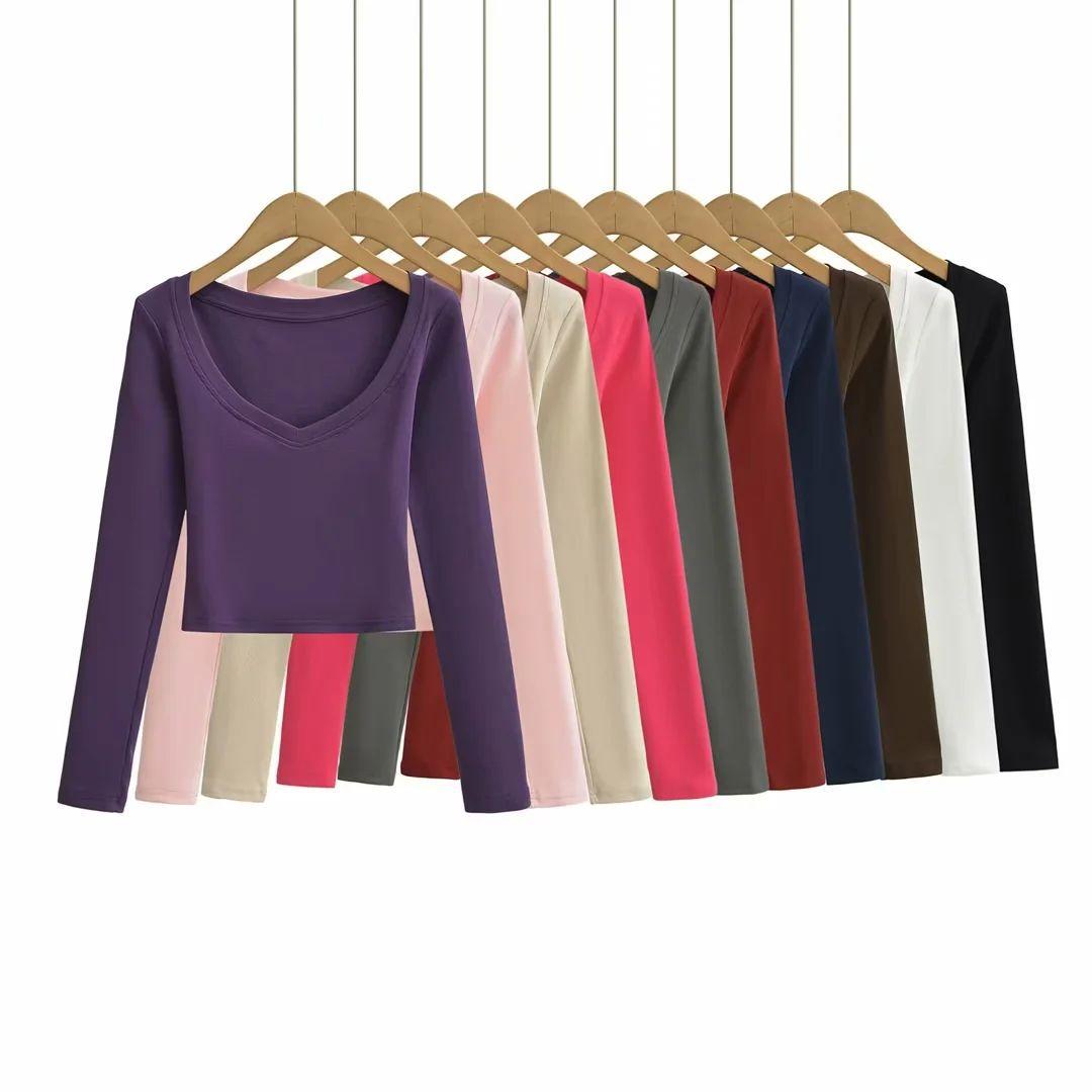 Camiseta de manga larga con cuello en forma de corazón, estilo Spice Girls, estilo europeo y americano, sexy y puro, para otoño e invierno, corte entallado y adelgazante.