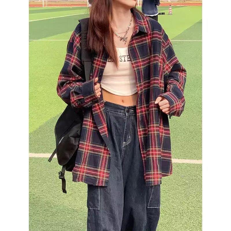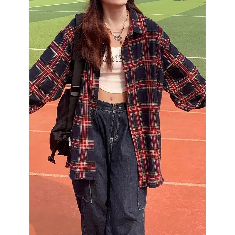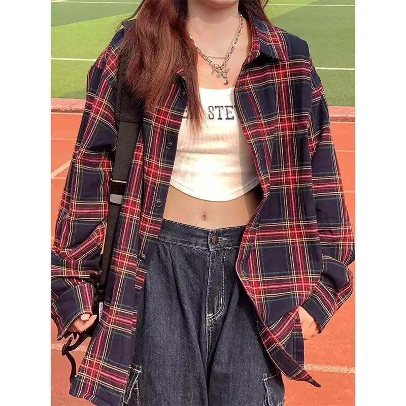 Camisa a cuadros retro americana para mujer, primavera 2024, nuevo diseño holgado, chaqueta de manga larga con estilo Sense Niche