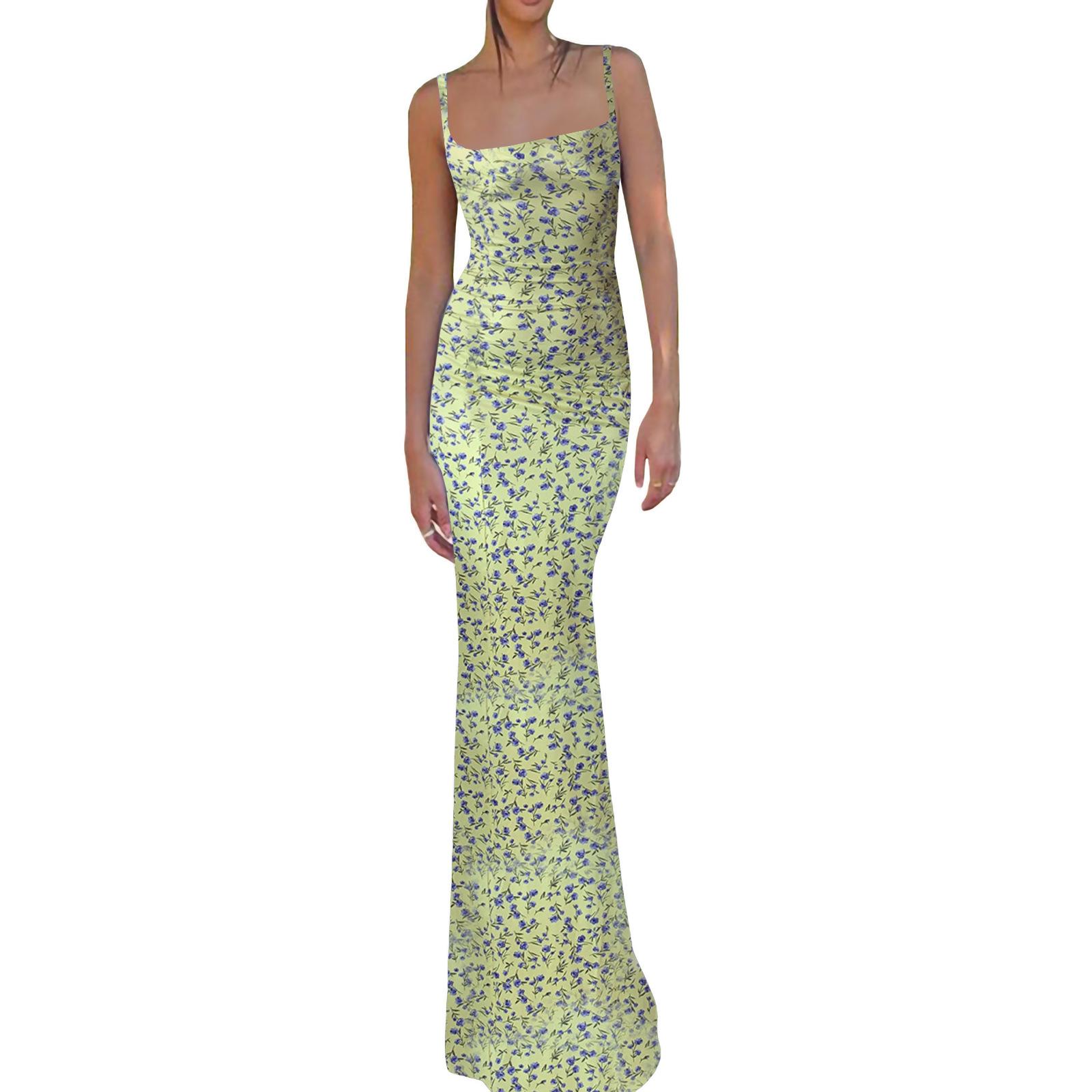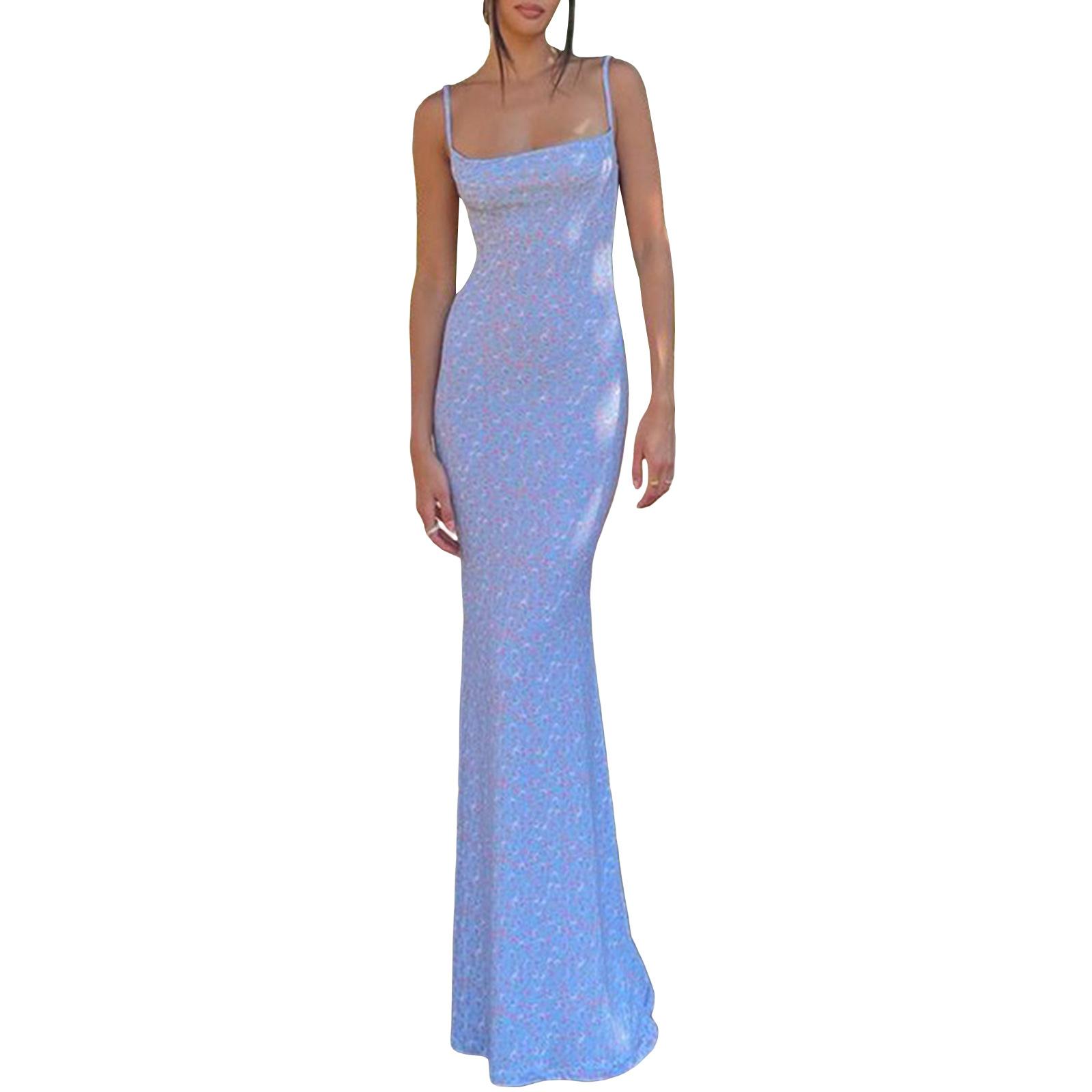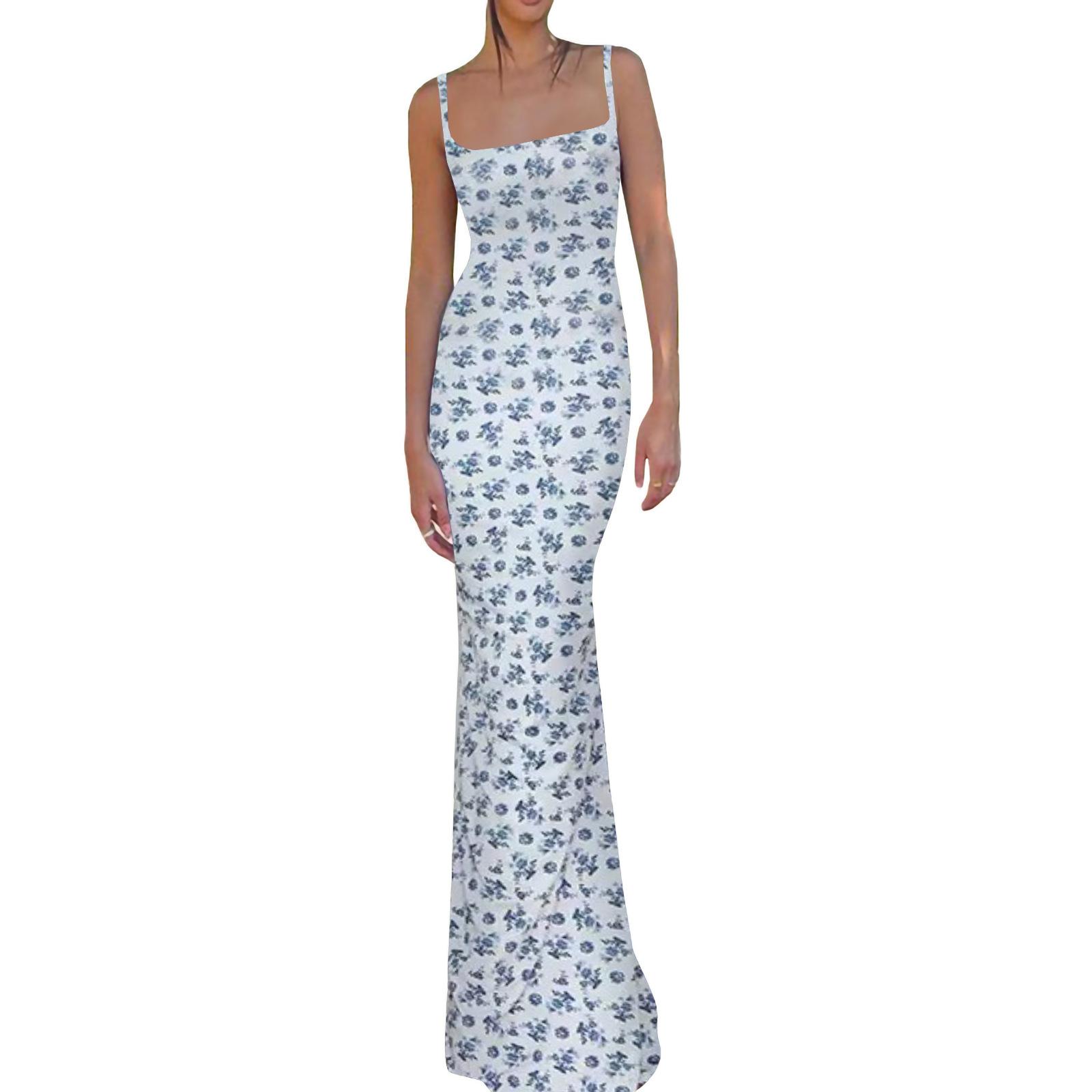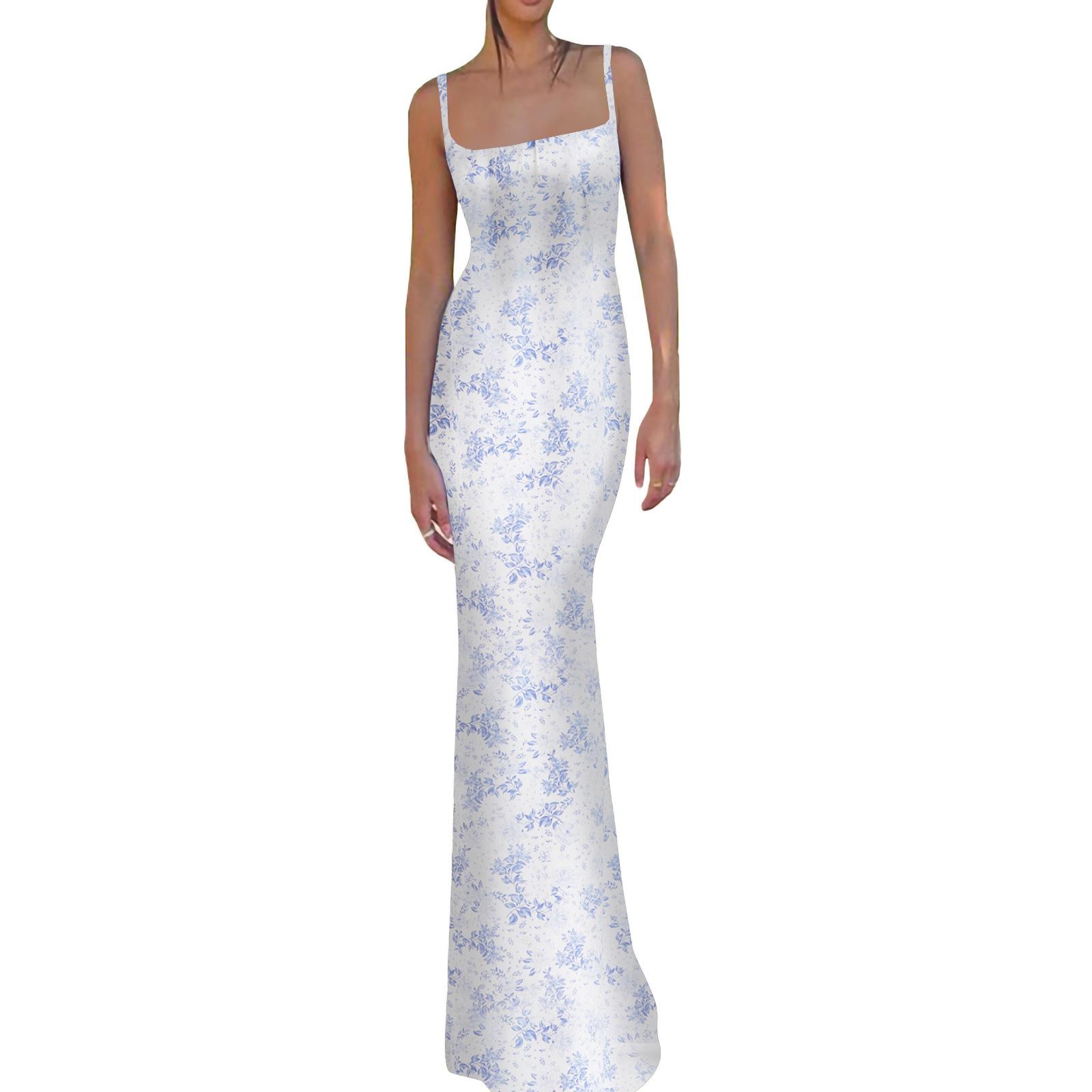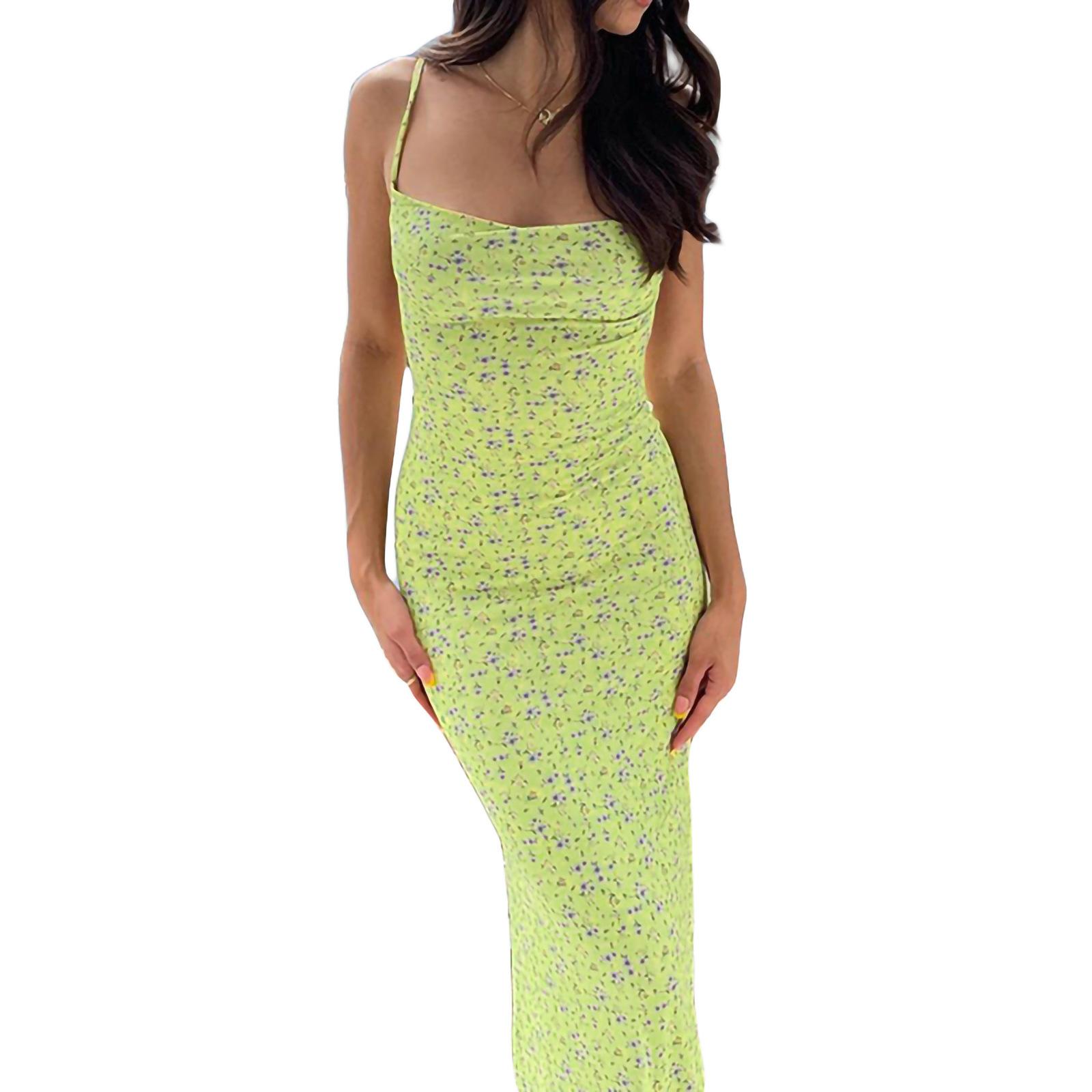 Dropshipping Moda Europea y Americana Ropa de Mujer Verano Nuevo Sexy Slim Tirantes Estampado Vestido sin Espalda para Mujer en Stock