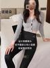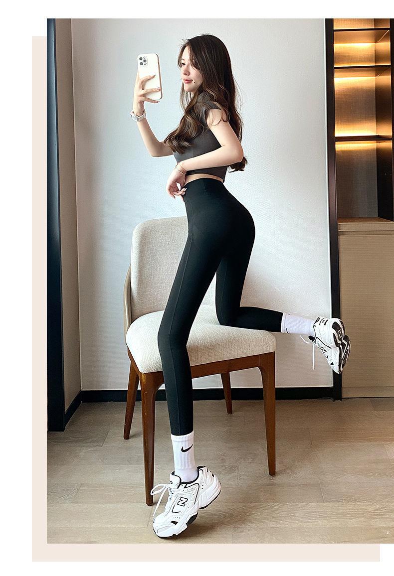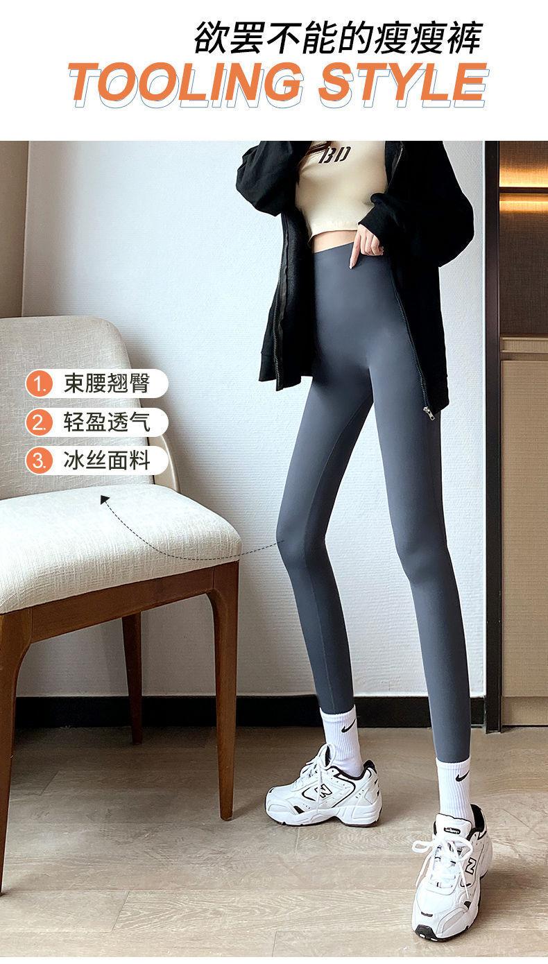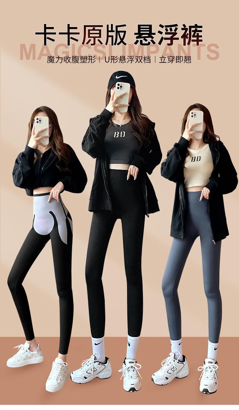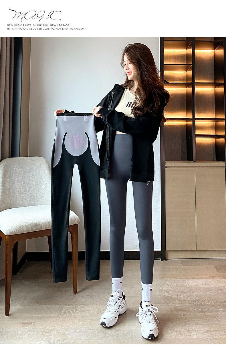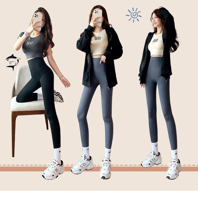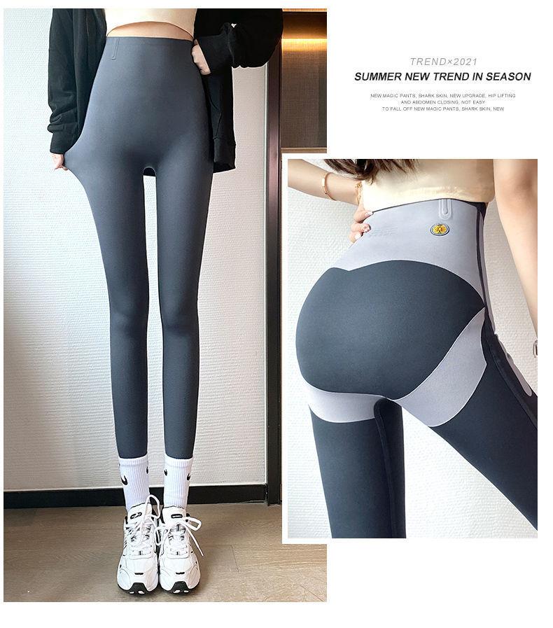 Kaka Pantalones Abdominales de Cadera para Mujer Leggings Delgados de Cintura Alta Primavera y Otoño Yoga Suspensión Barbie Pantalones de Tiburón Ropa Exterior Gris