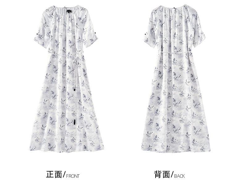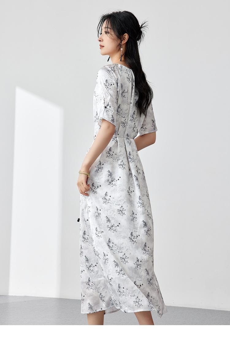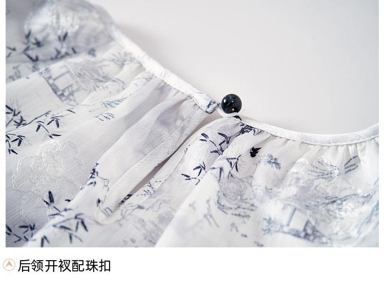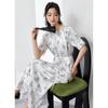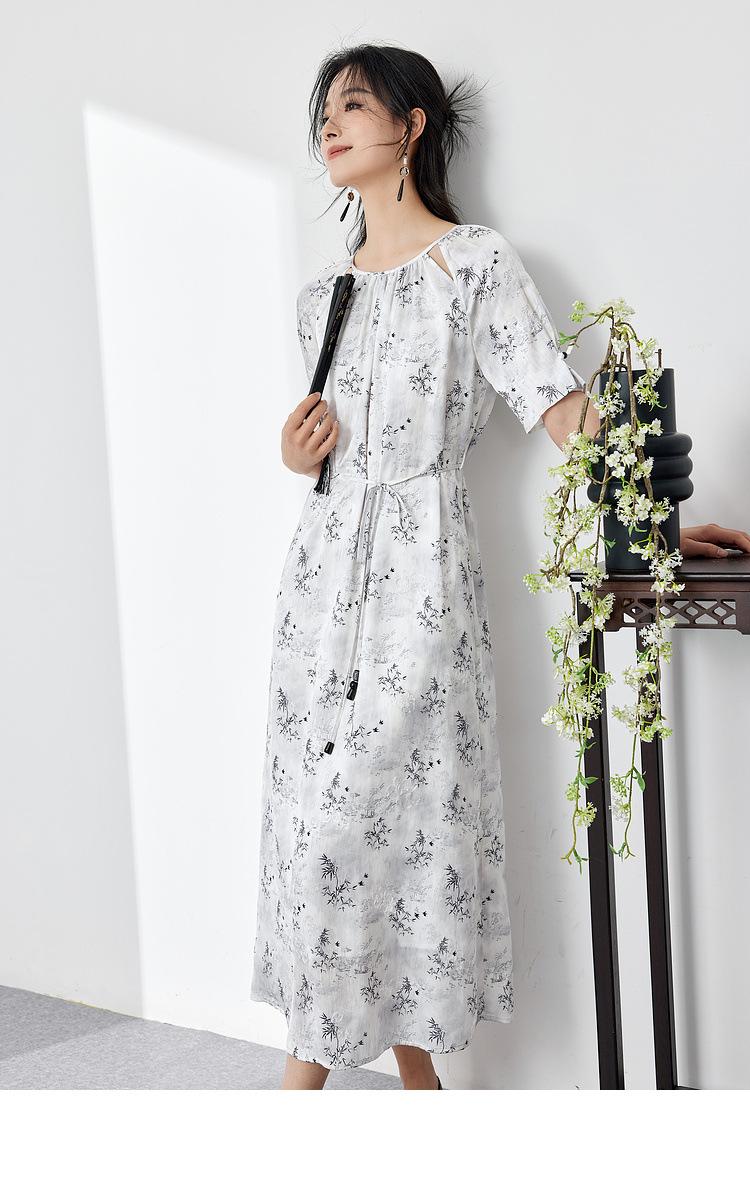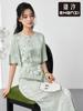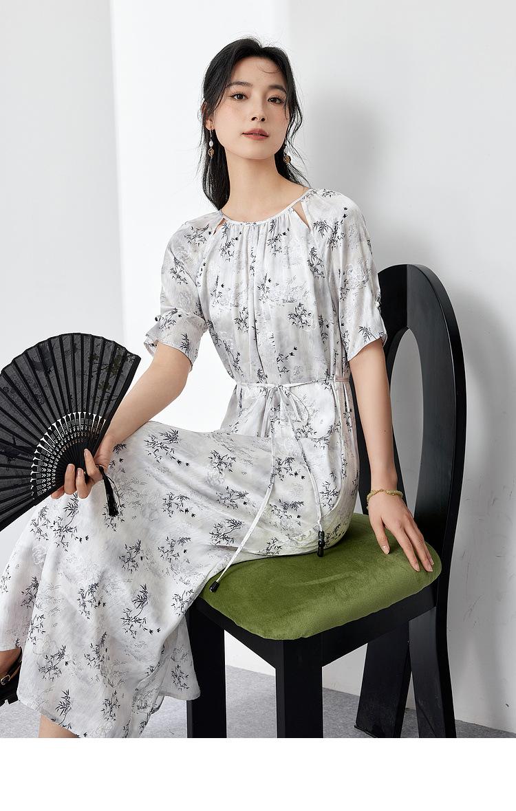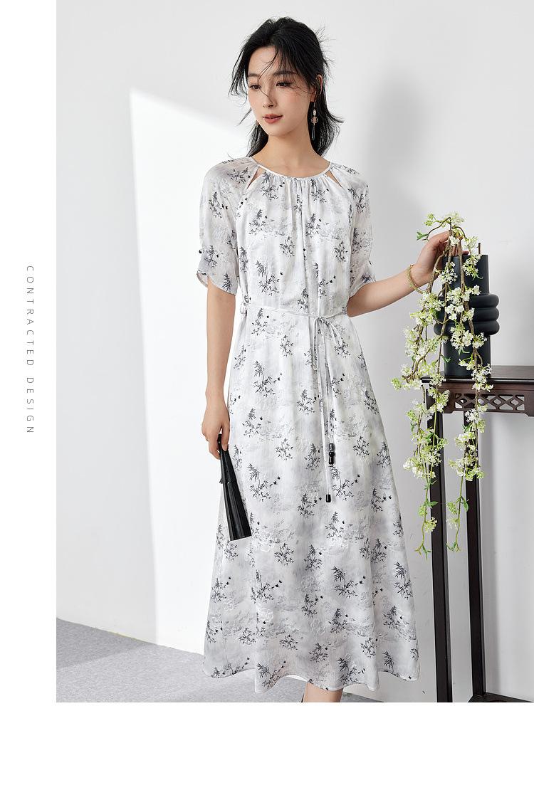 Zhen Xi - Vestido de satén con cuello redondo y manga corta para mujer, nuevo estilo chino, estampado, cintura alta, cordones, DP297