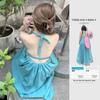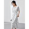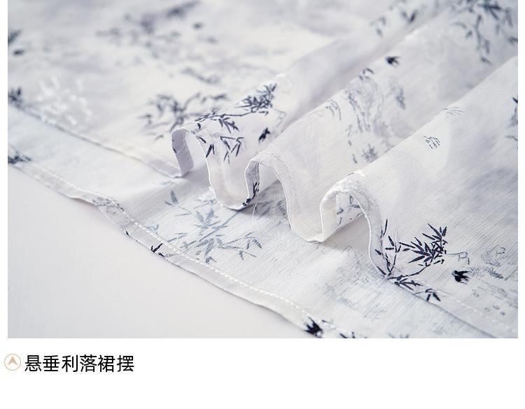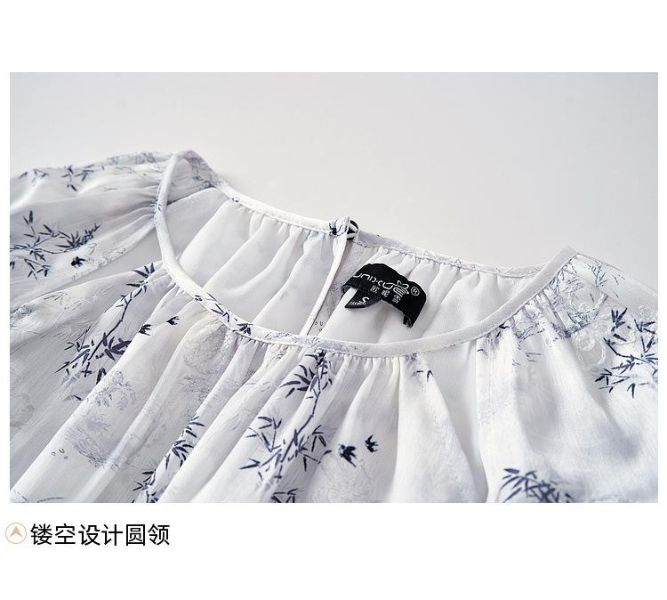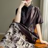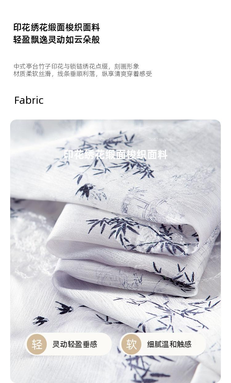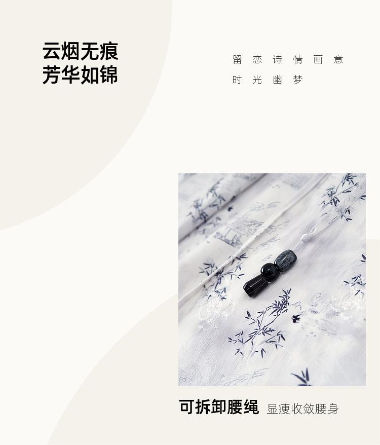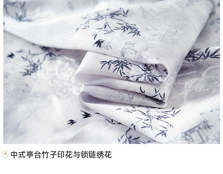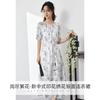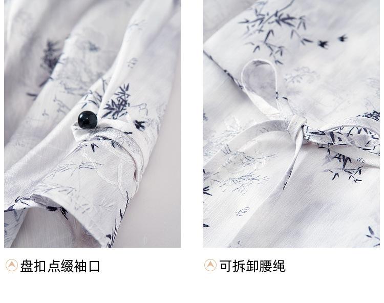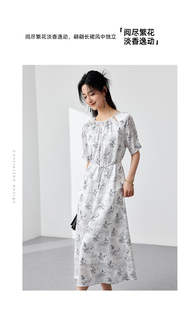 Zhen Xi - Vestido de satén con cuello redondo y manga corta para mujer, nuevo estilo chino, estampado, cintura alta, cordones, DP297