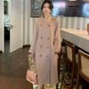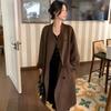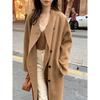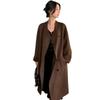Abrigo nuevo de otoño e invierno con cuello alto de doble vista de lana de alpaca, elegante versión coreana de abrigo largo de lana cruzado