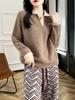 Suéter de cuello polo para mujer, prenda exterior holgada, otoño e invierno 2024, nuevo estilo holgado, estilo coreano, jersey de color liso con cuello en V, suéter de lana