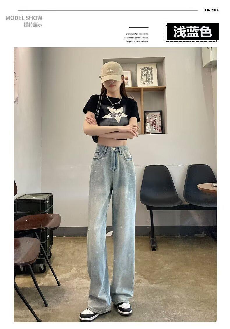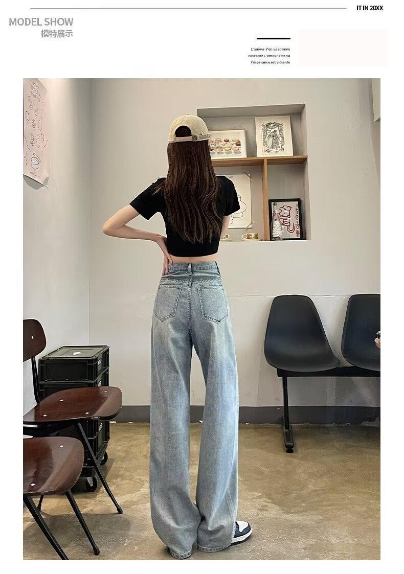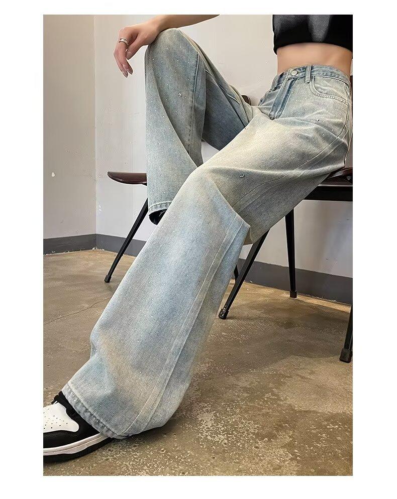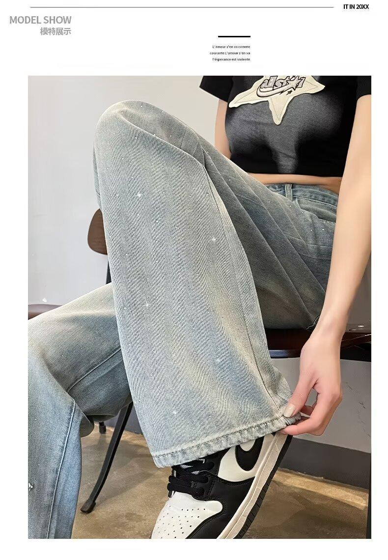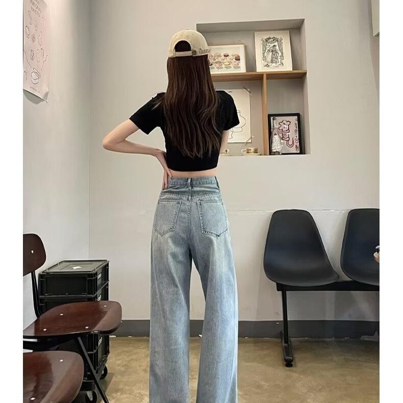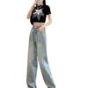 Pantalones vaqueros viejos lavados de verano para niña, estilo americano, retro, holgados, de pierna ancha y rectos