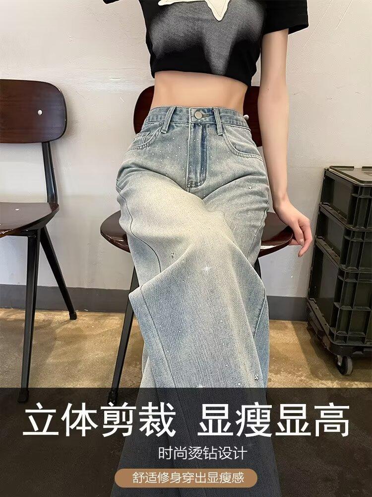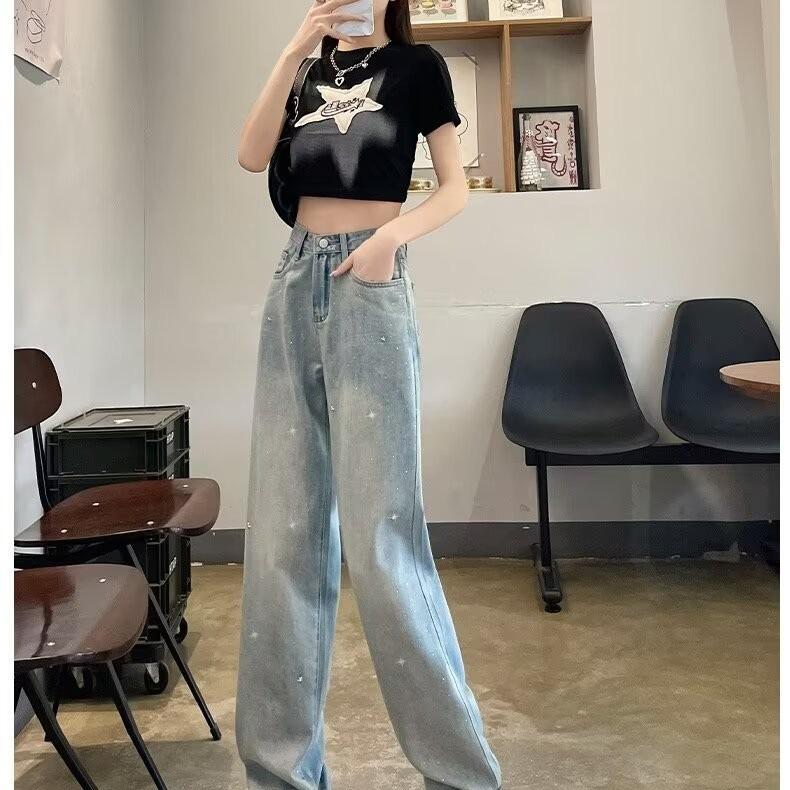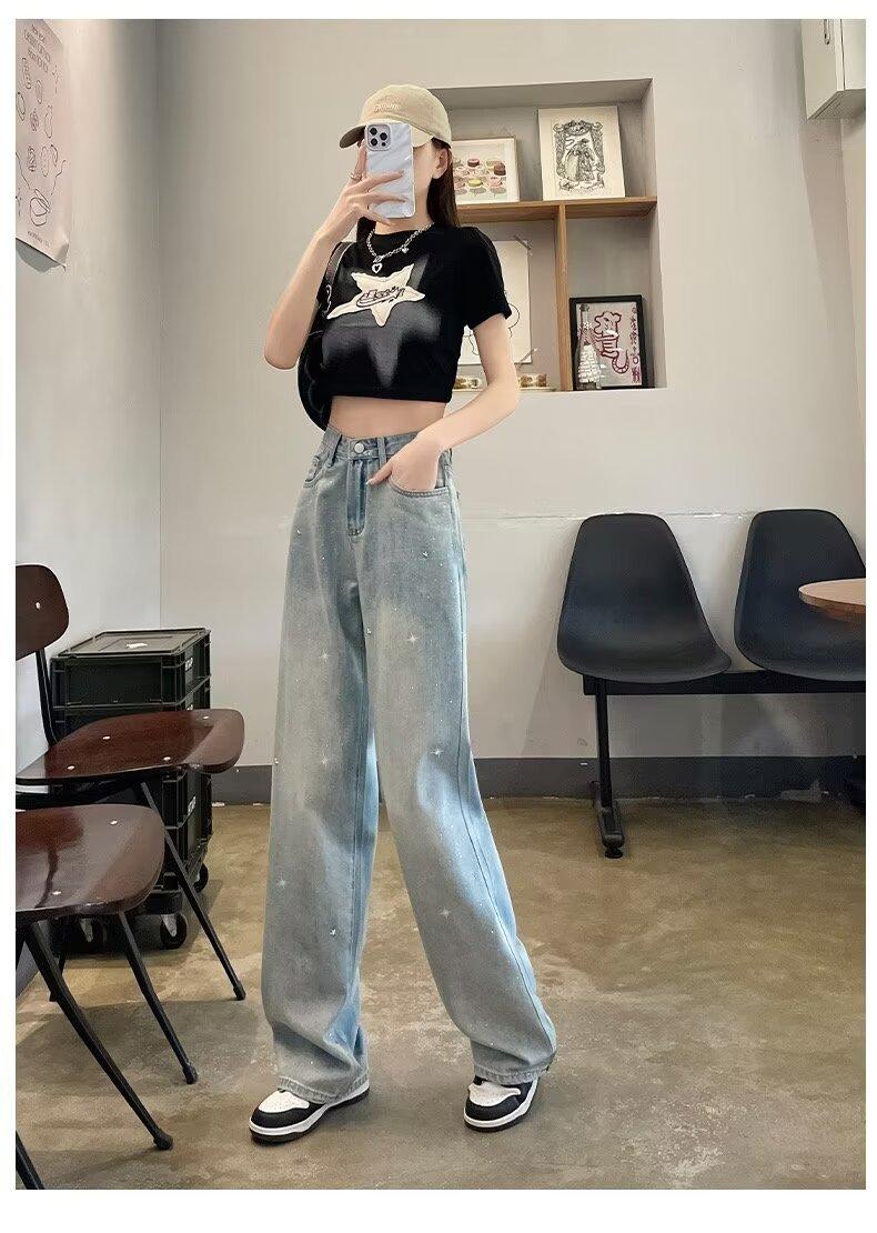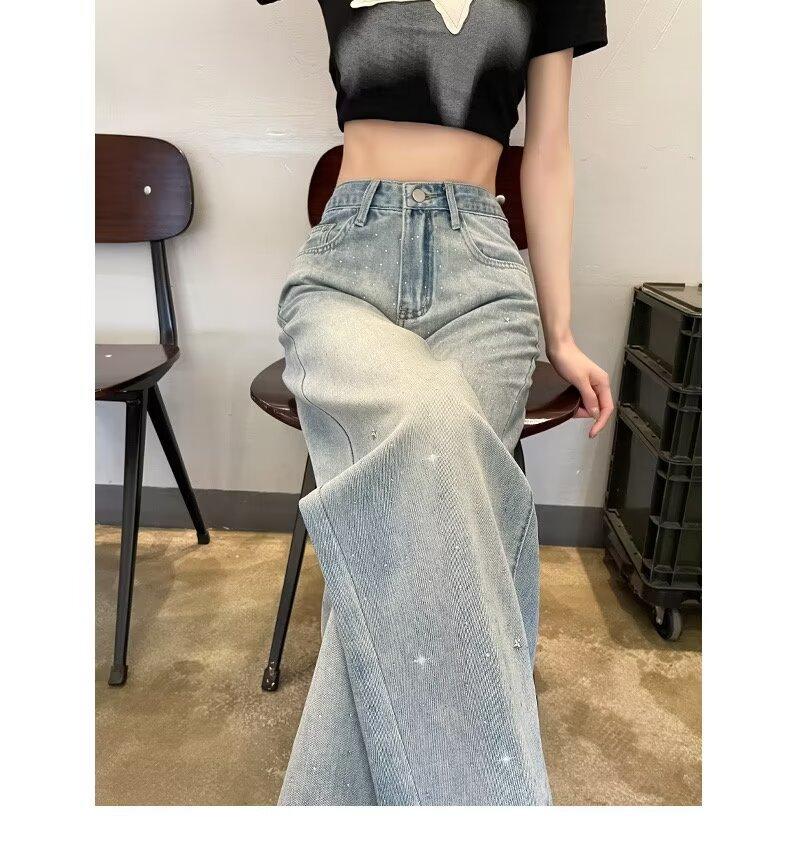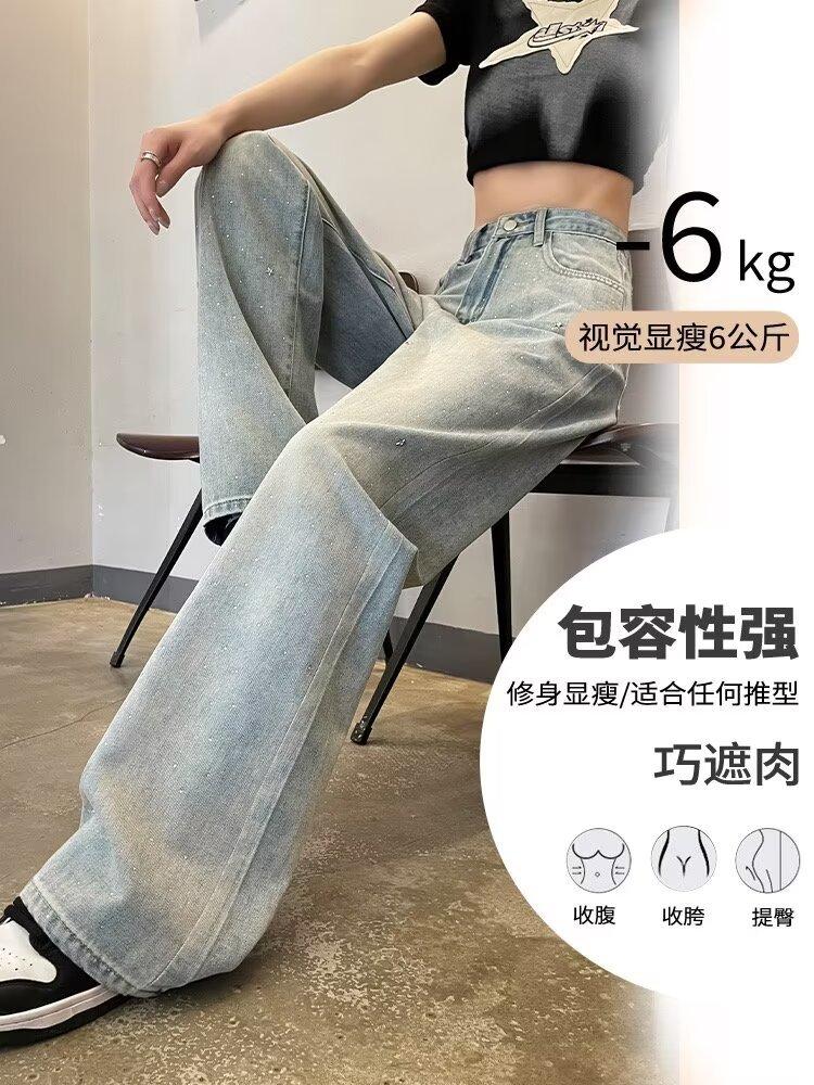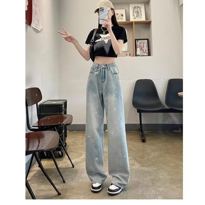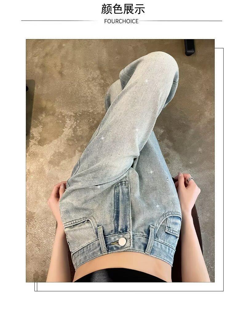 Pantalones vaqueros viejos lavados de verano para niña, estilo americano, retro, holgados, de pierna ancha y rectos