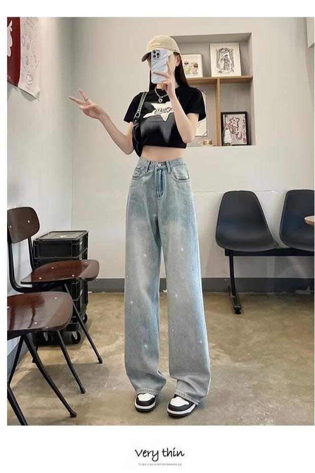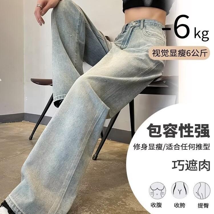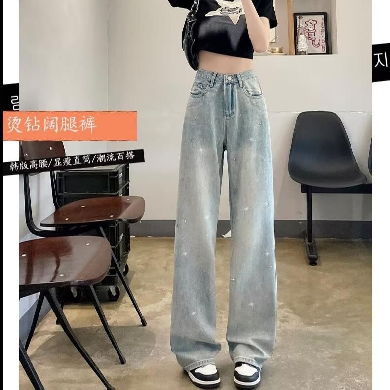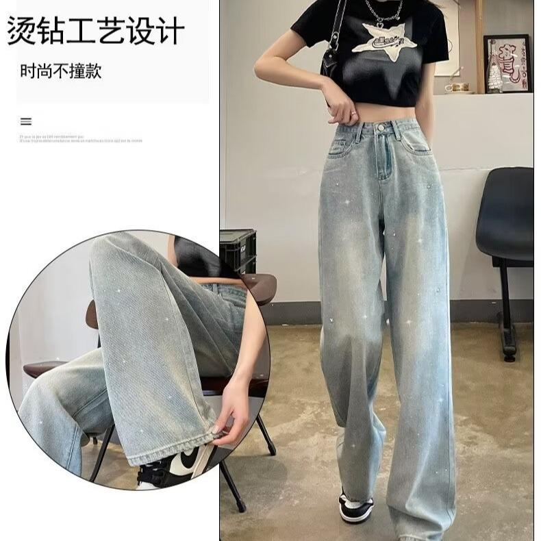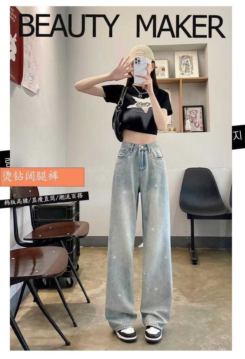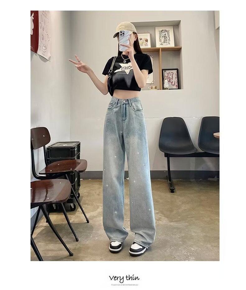 Pantalones vaqueros viejos lavados de verano para niña, estilo americano, retro, holgados, de pierna ancha y rectos