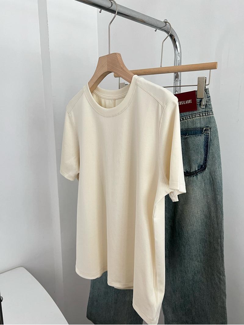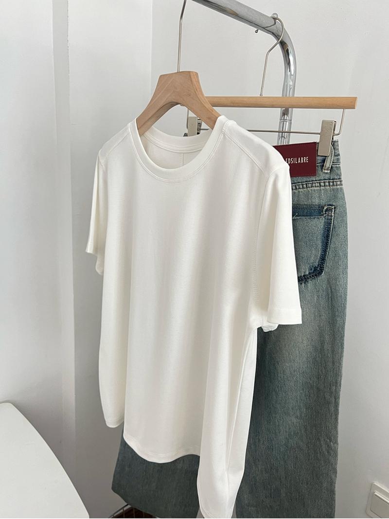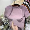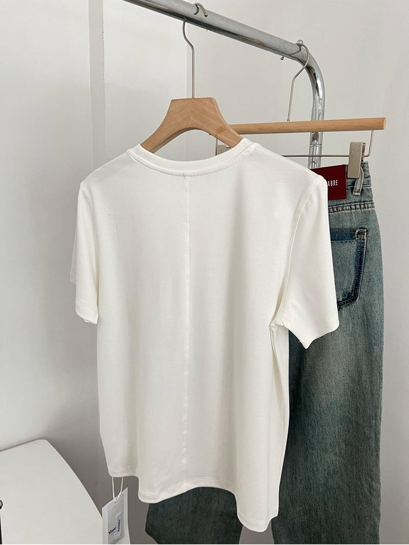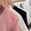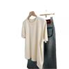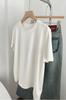 Playera Interior Blanca de Manga Corta Americana para Mujer en Verano, Holgada, Transpirable, Sobrehilada, Versátil, Top de Hombro Derecho con Diseño de Nicho