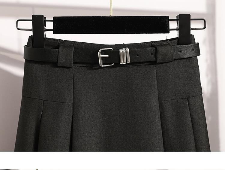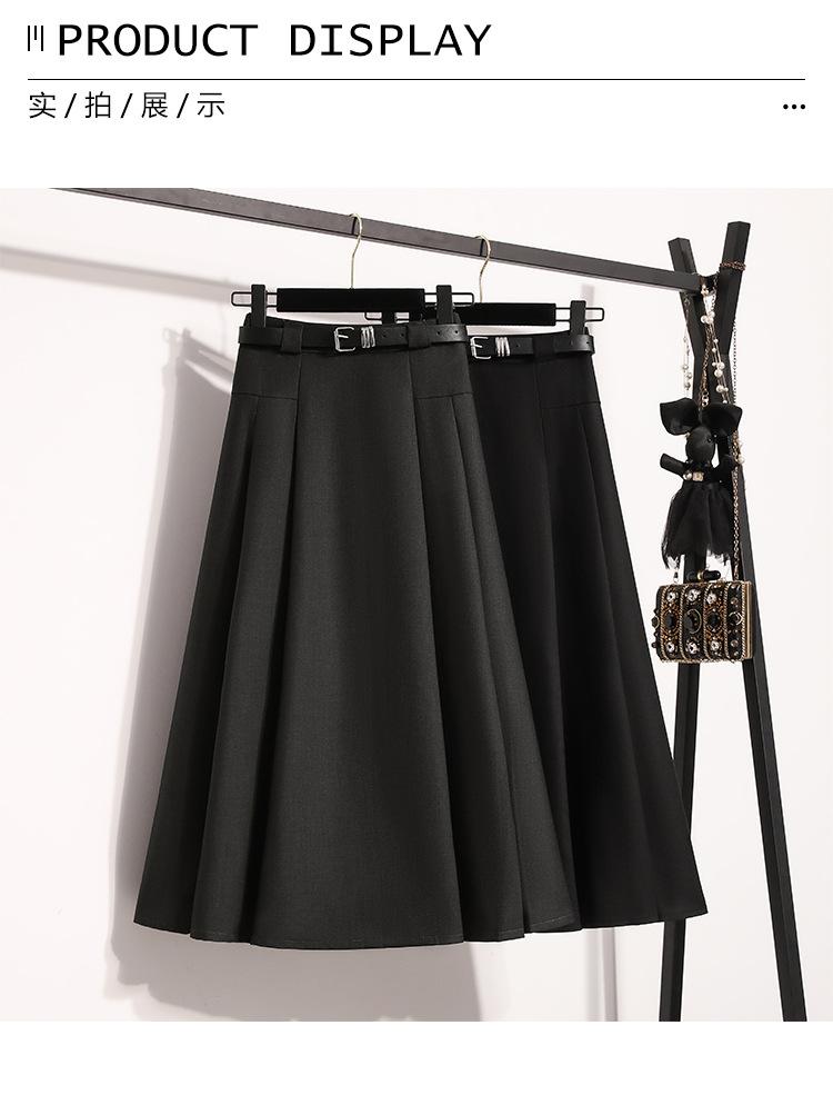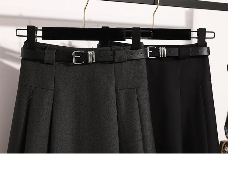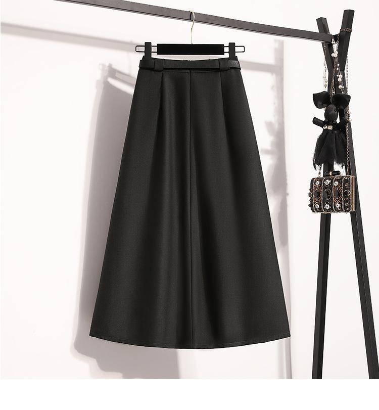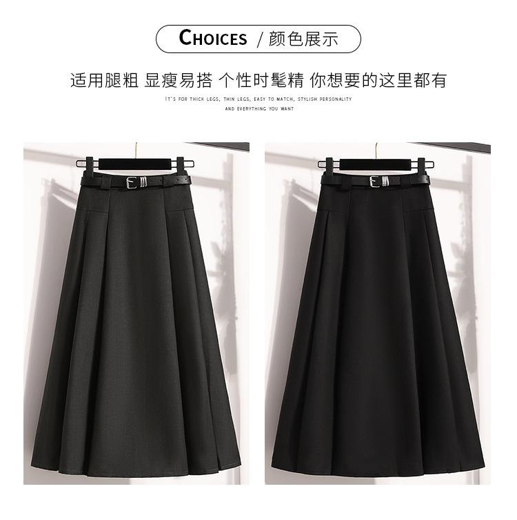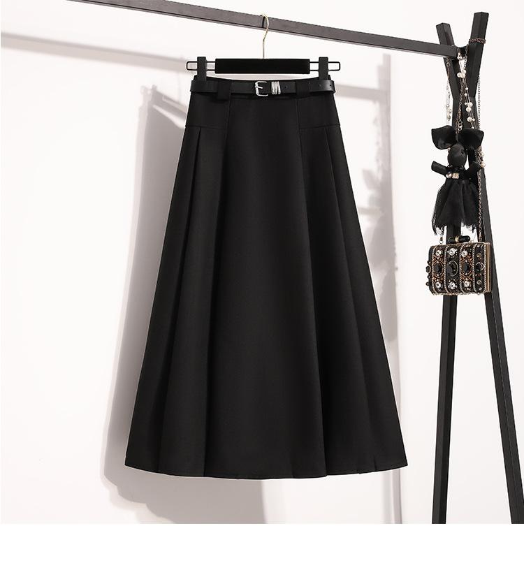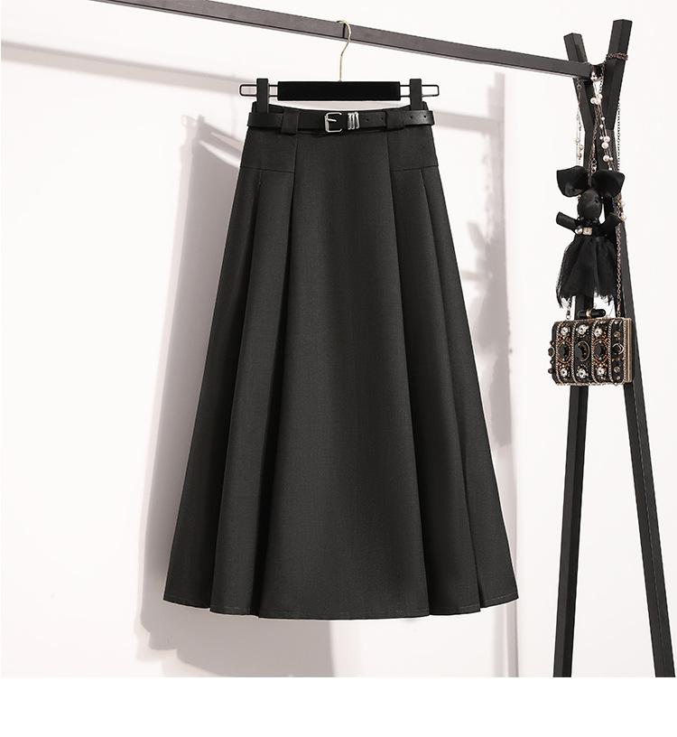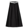 2024 Nuevo Estilo Otoño e Invierno Retro Cintura Alta Slim A-Line Falda Plisada Color Puro Largo Medio Falda Cubre Entrepierna