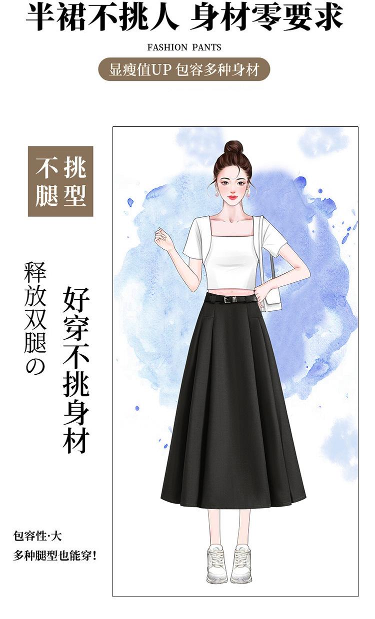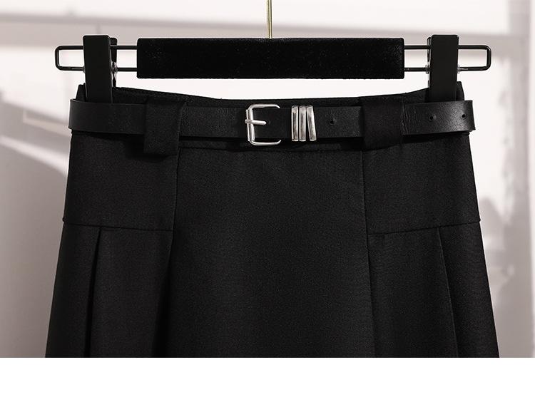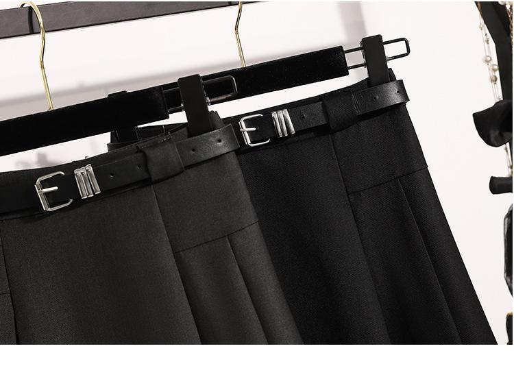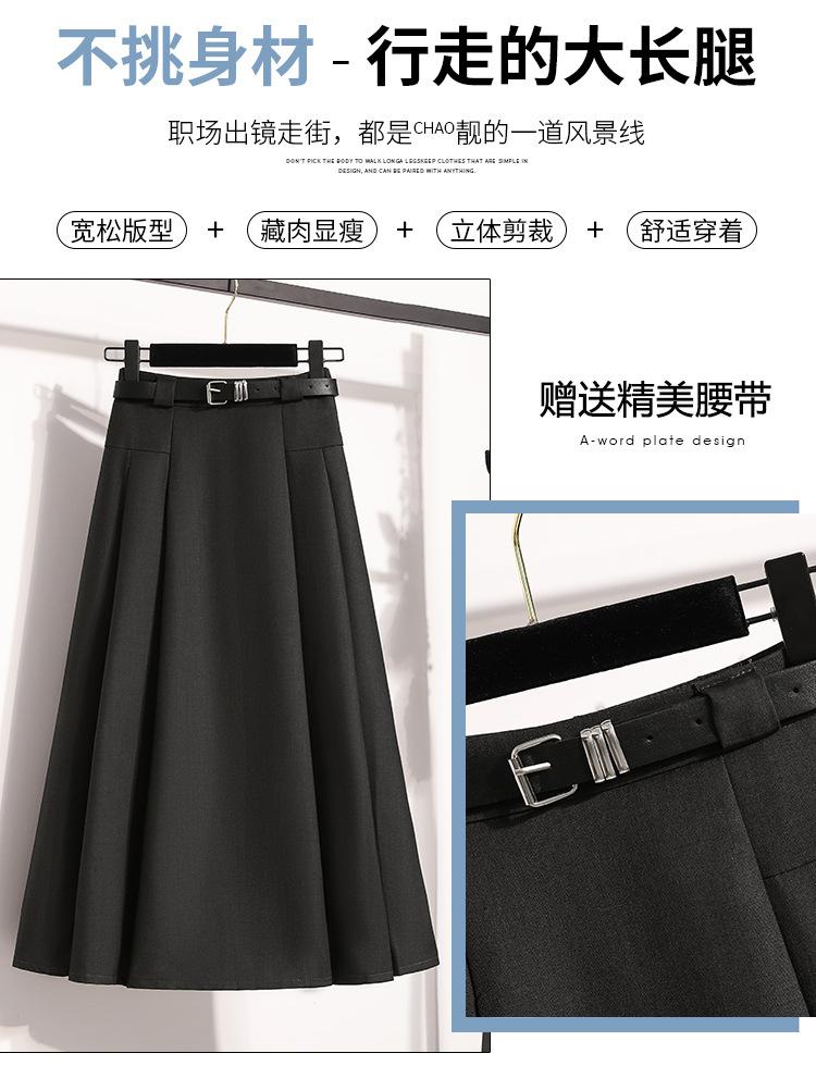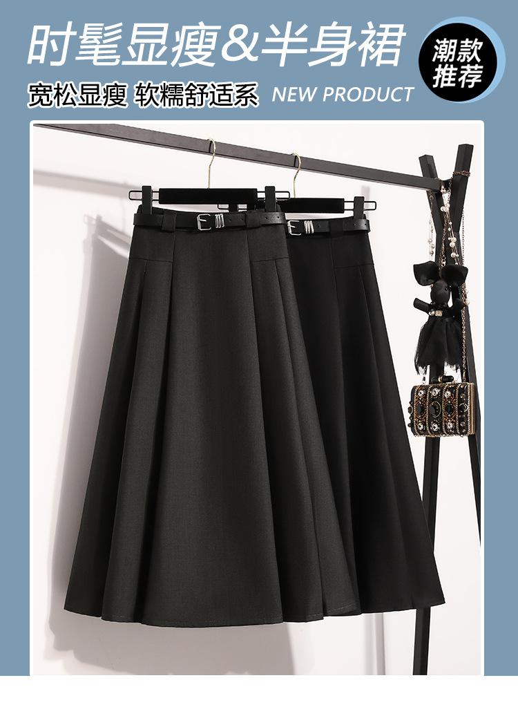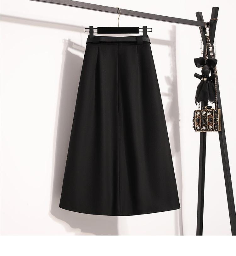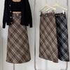 2024 Nuevo Estilo Otoño e Invierno Retro Cintura Alta Slim A-Line Falda Plisada Color Puro Largo Medio Falda Cubre Entrepierna