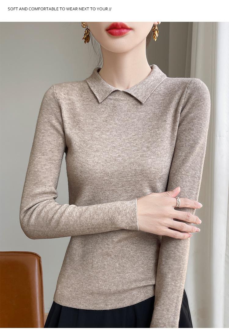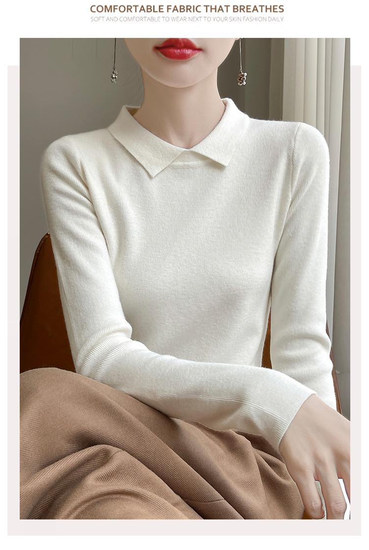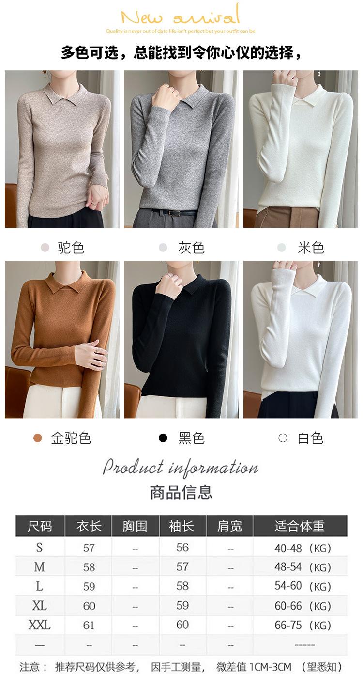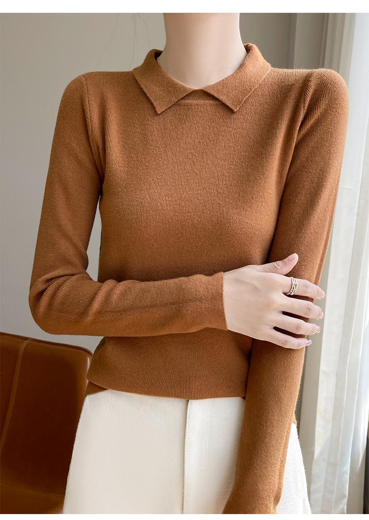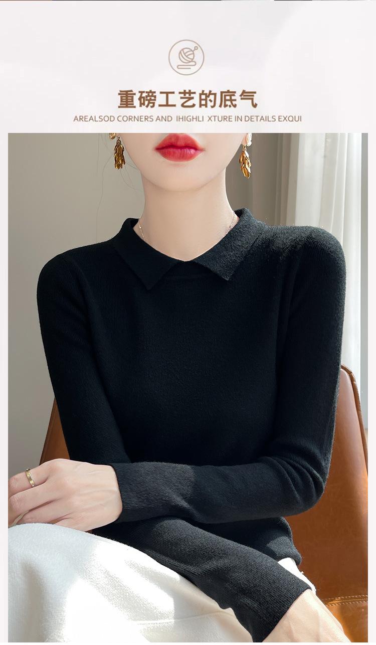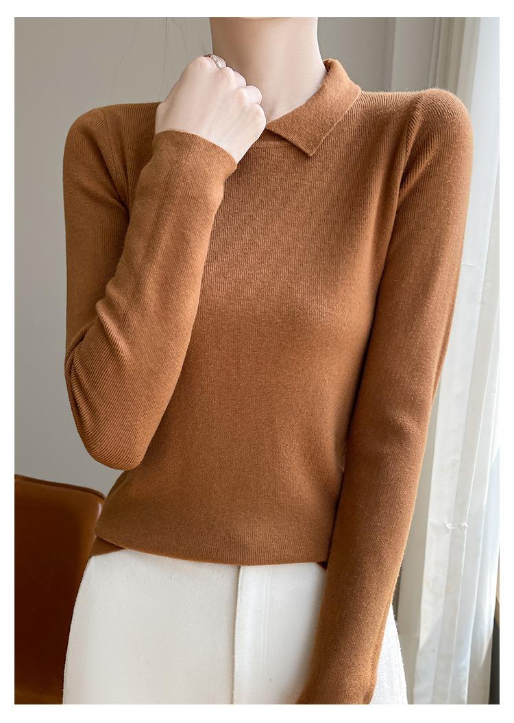 Suéter de manga larga de otoño e invierno para mujer, jersey con cuello de muñeca, camisa base, nuevo suéter interior ajustado con solapa, venta al por mayor para mujer
