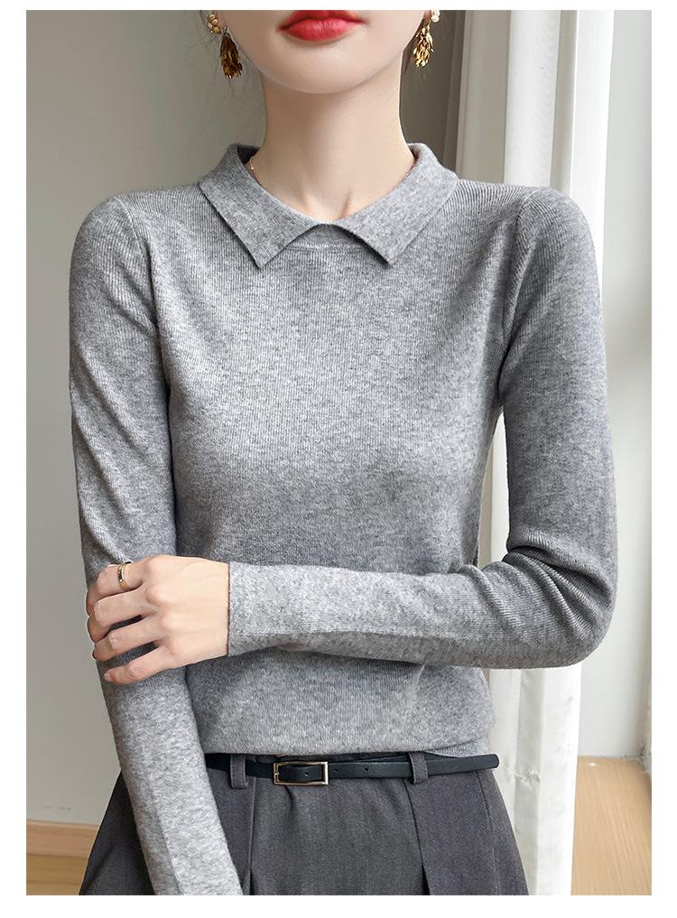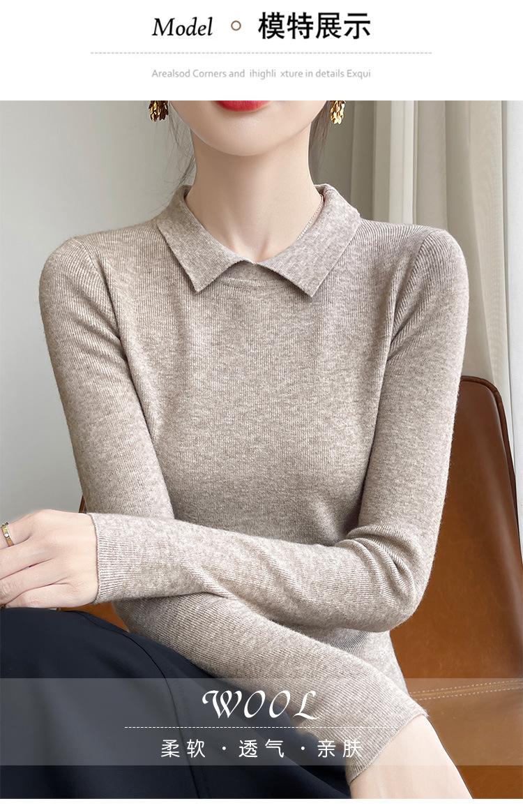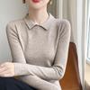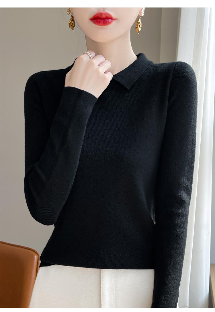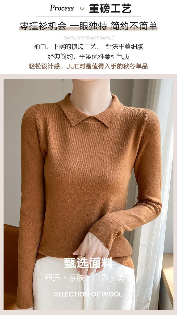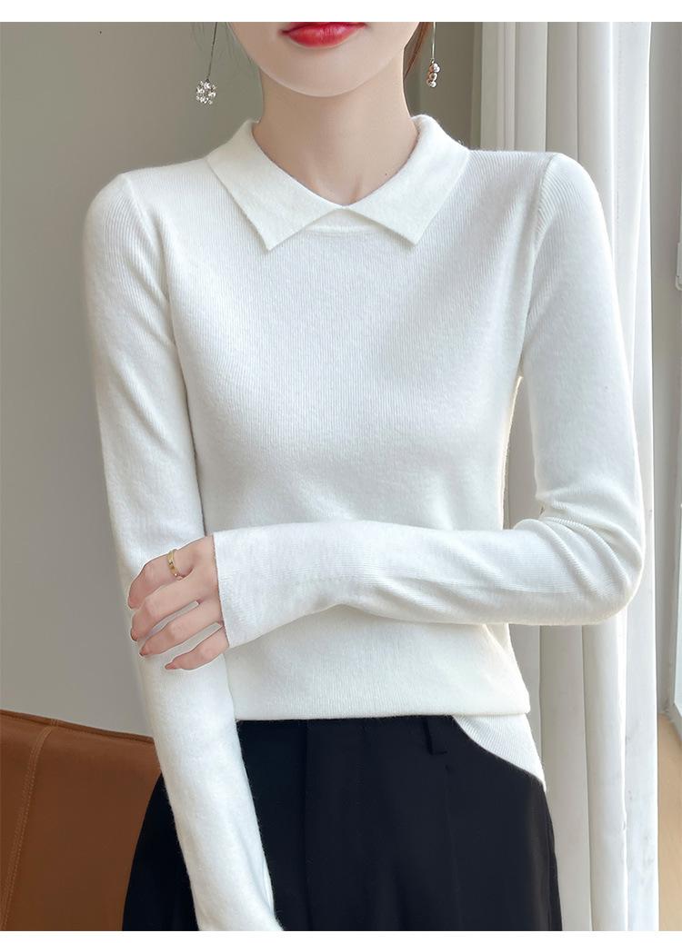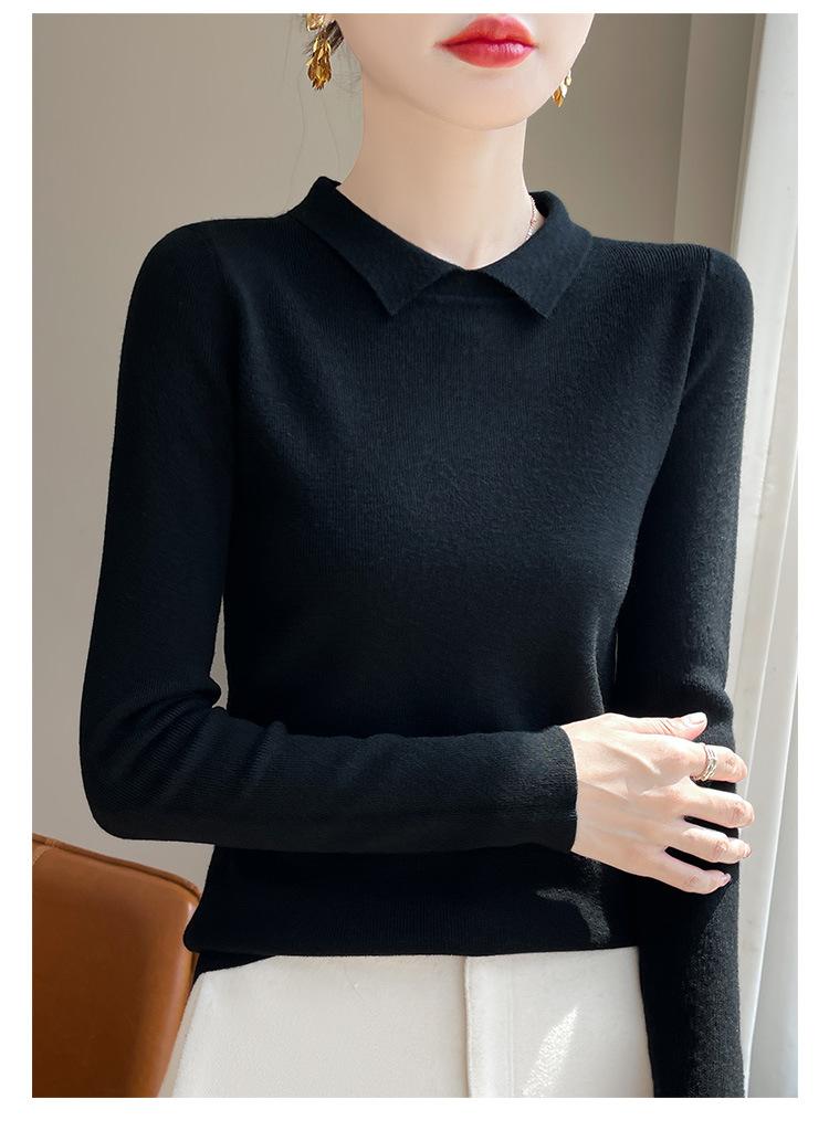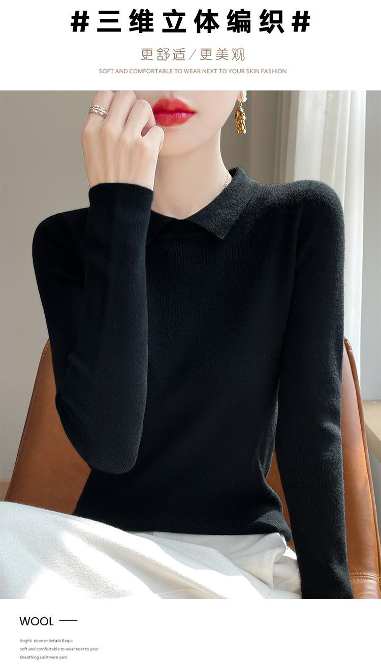 Suéter de manga larga de otoño e invierno para mujer, jersey con cuello de muñeca, camisa base, nuevo suéter interior ajustado con solapa, venta al por mayor para mujer