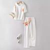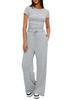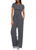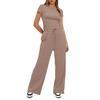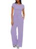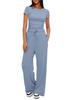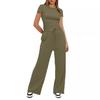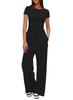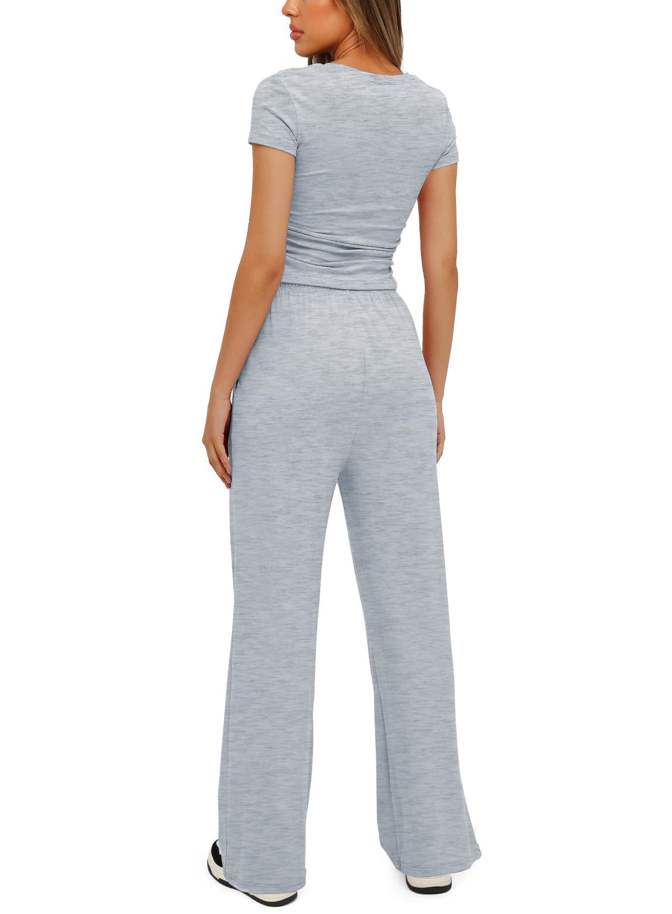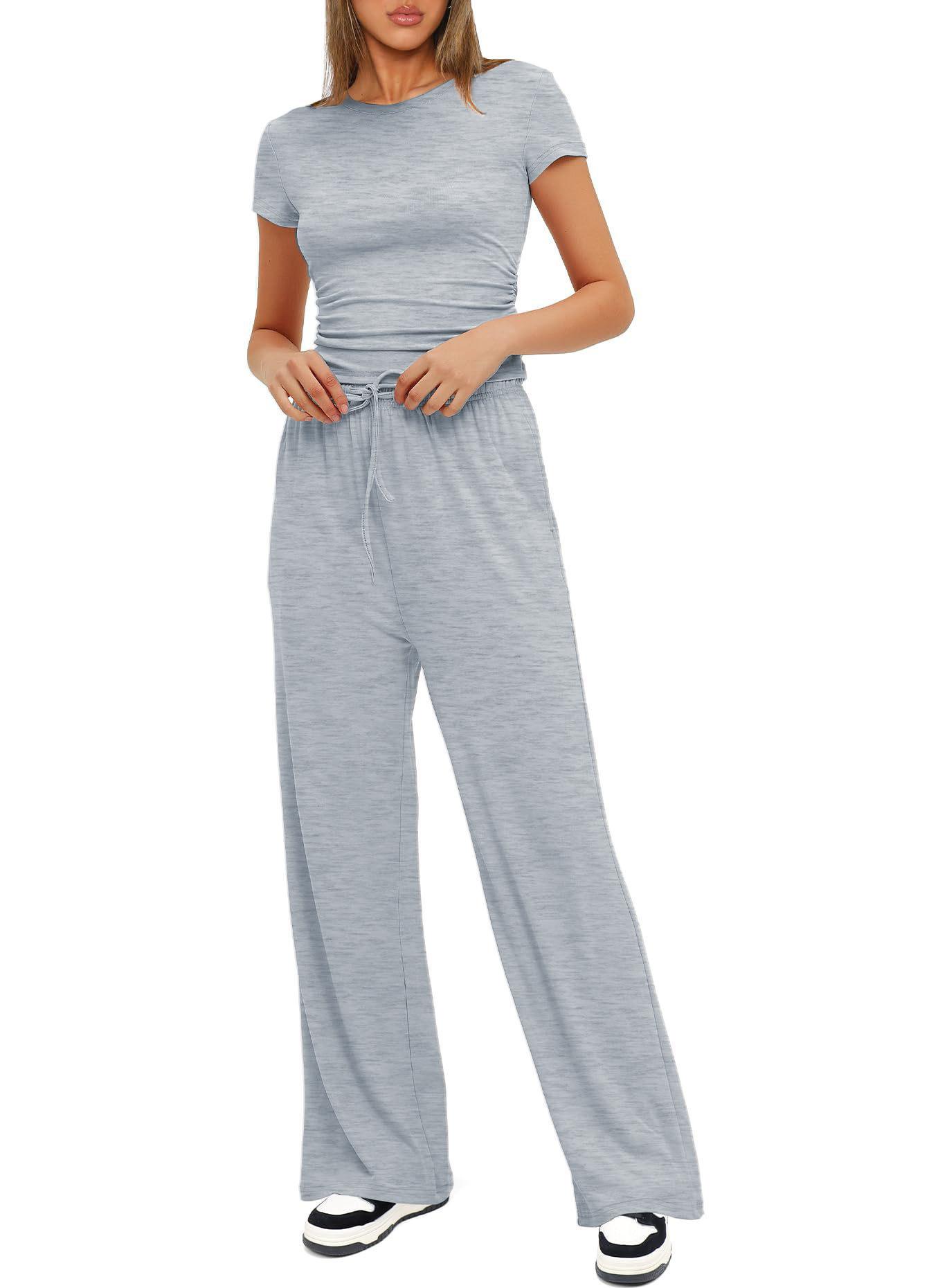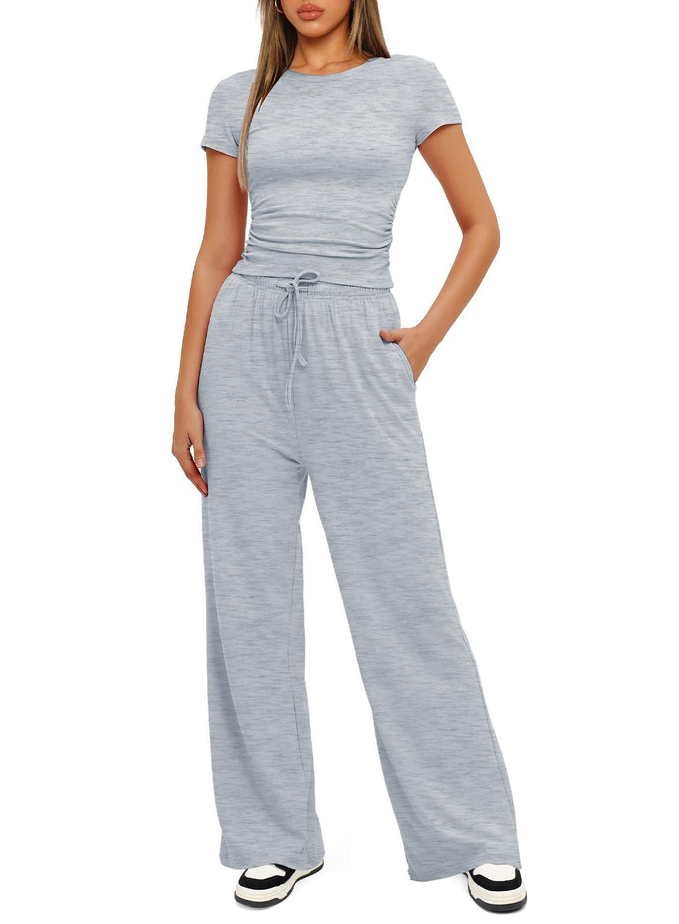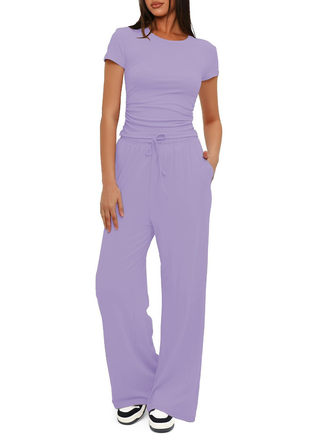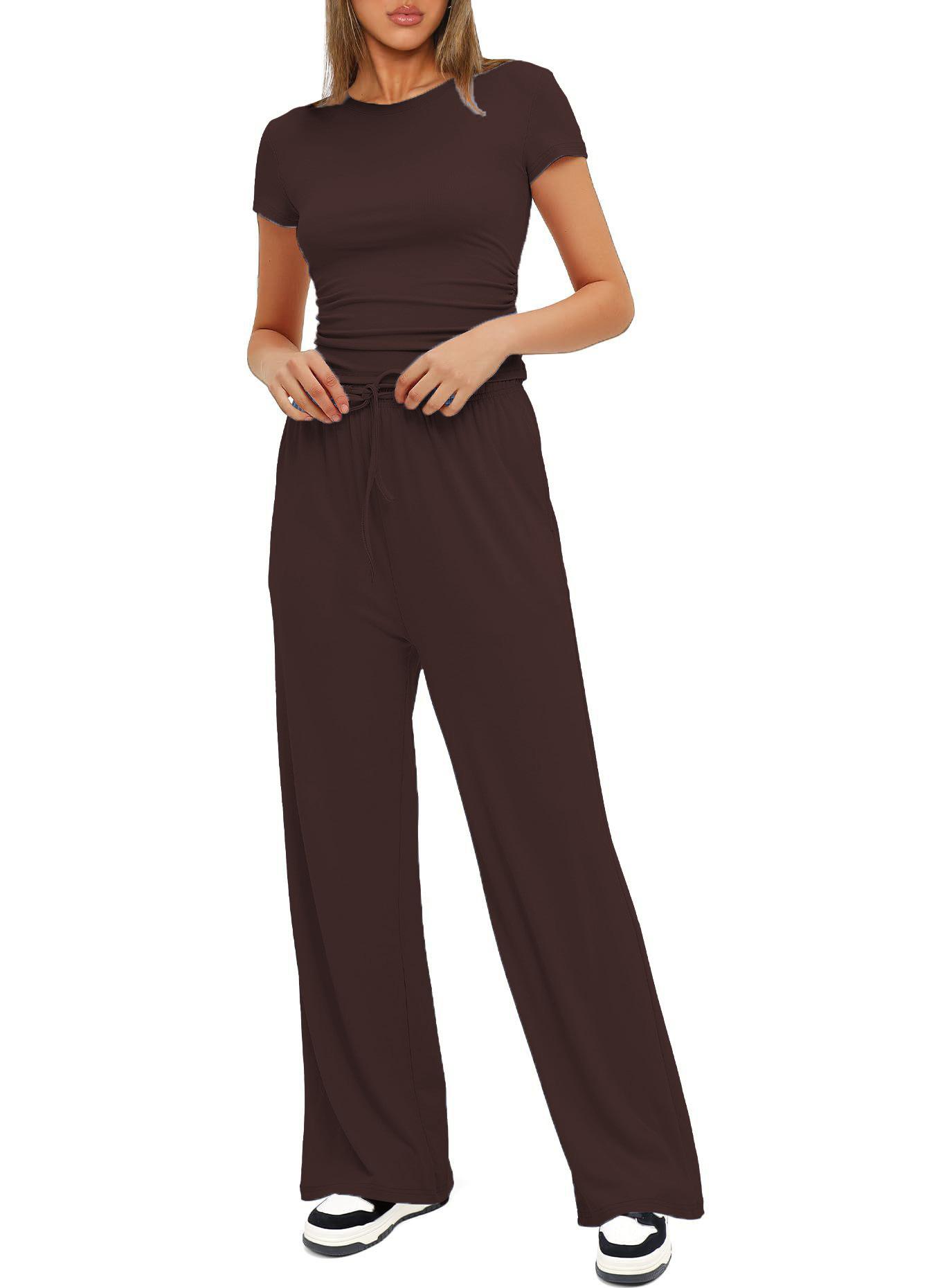 Traje casual plisado 2024 europeo y americano Amazon nuevo color sólido manga corta top cintura alta pantalones anchos ropa deportiva