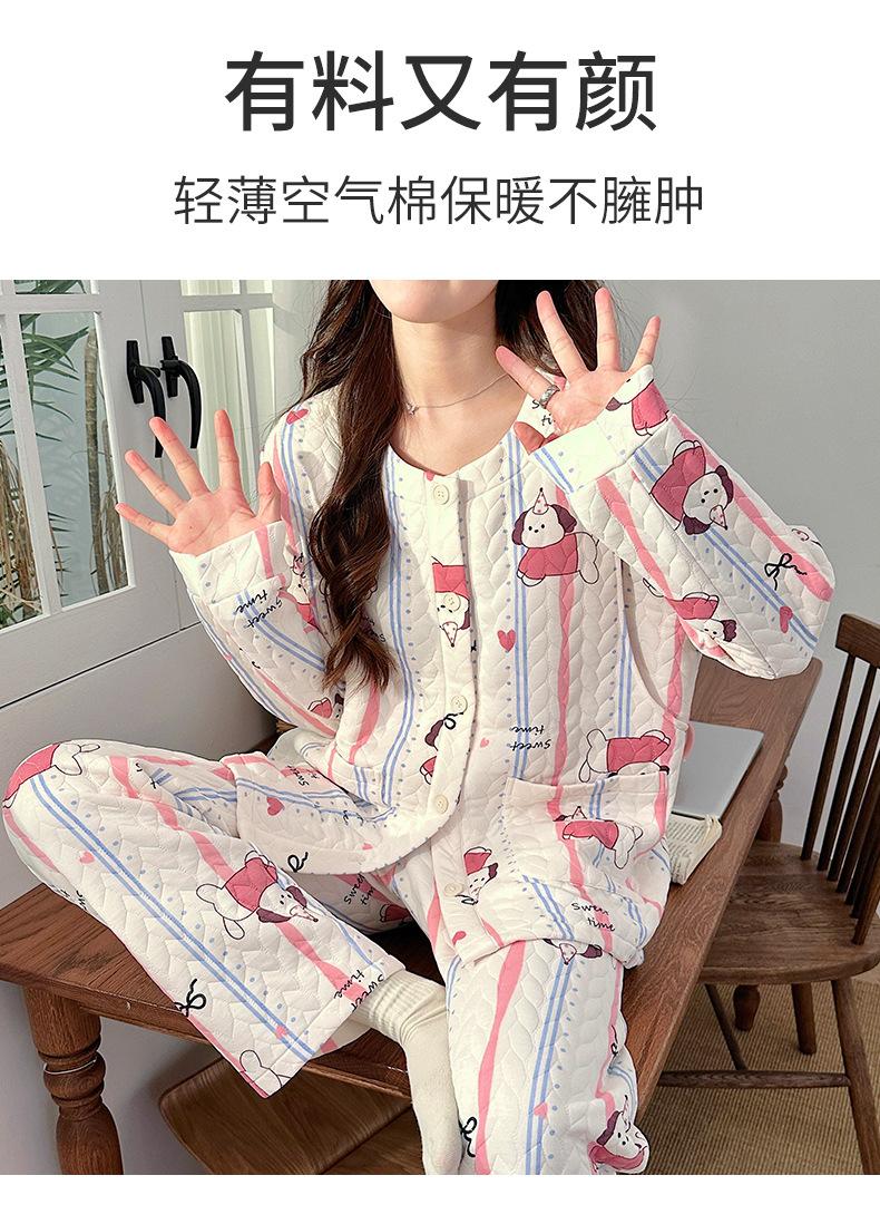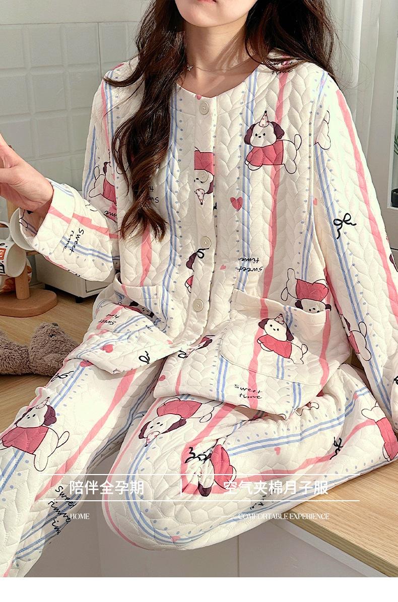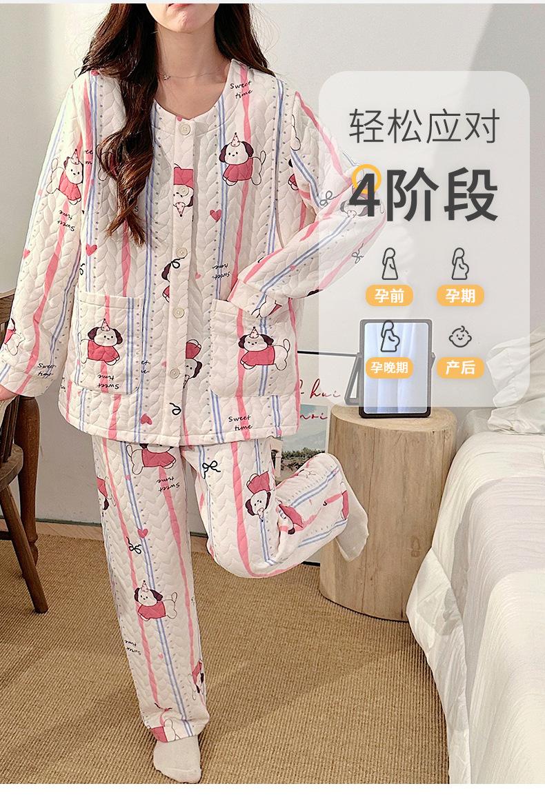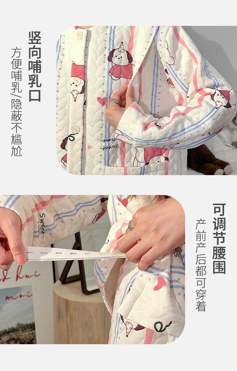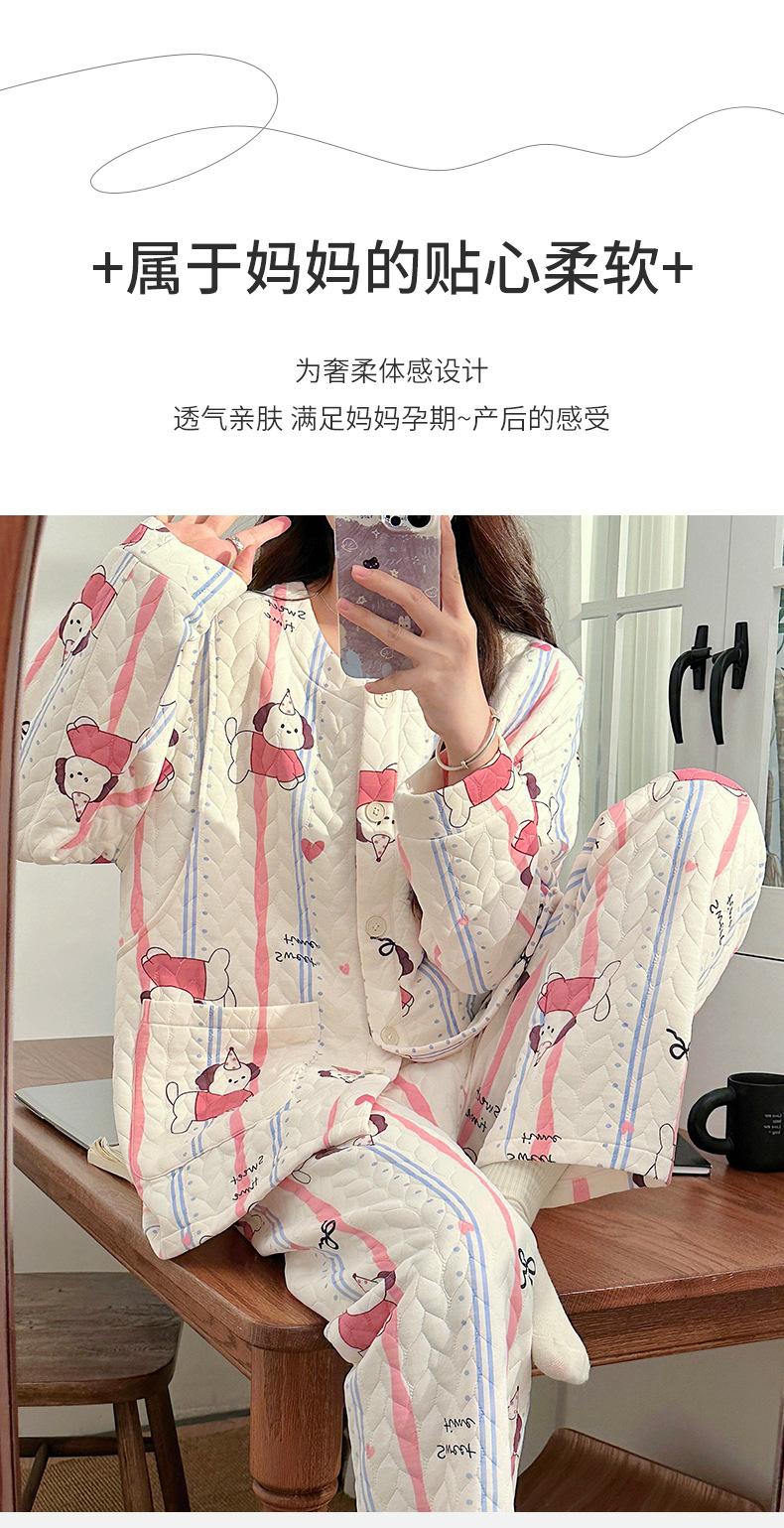 Ropa Yuezi para el Hogar Enmei Otoño Nuevo Sándwich de Algodón Aire Mujeres Embarazadas Lactancia Dos Piezas Ropa para el Hogar Talla L-3XL