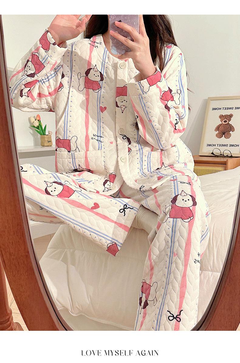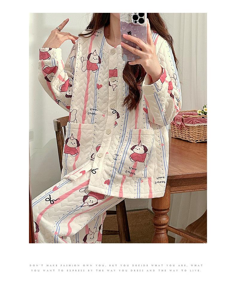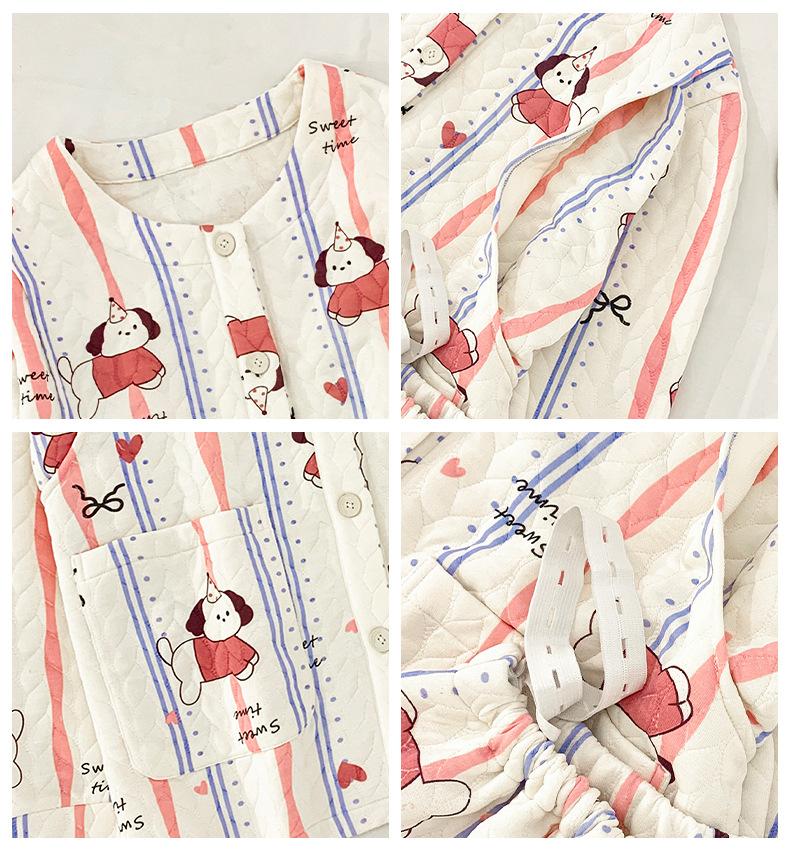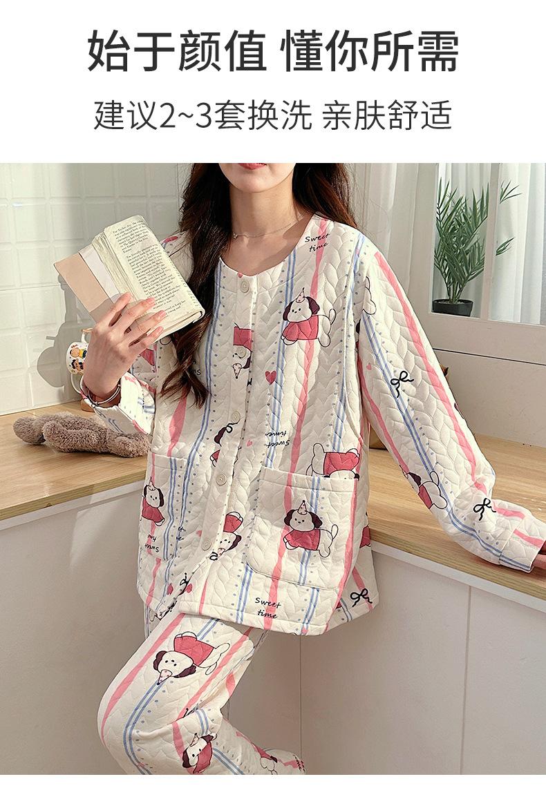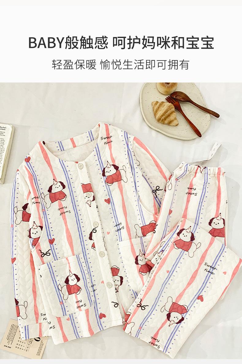 Ropa Yuezi para el Hogar Enmei Otoño Nuevo Sándwich de Algodón Aire Mujeres Embarazadas Lactancia Dos Piezas Ropa para el Hogar Talla L-3XL