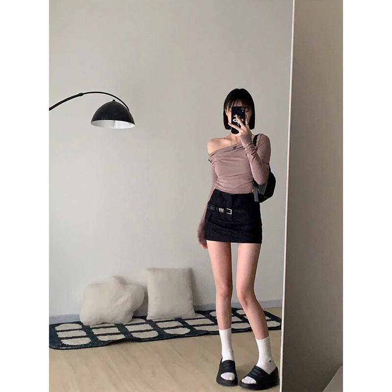 Falda Versátil Negra Picante Estilo Americano Talla Grande para Mujer, Falda Corta Bodycon de Otoño para Ropa de Trabajo con Diseño Único
