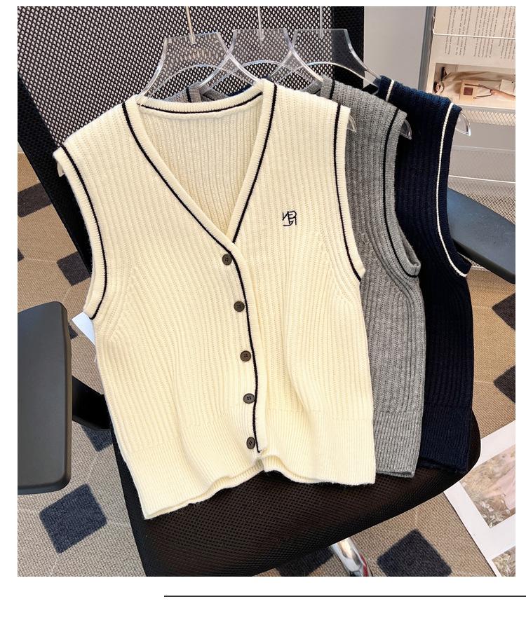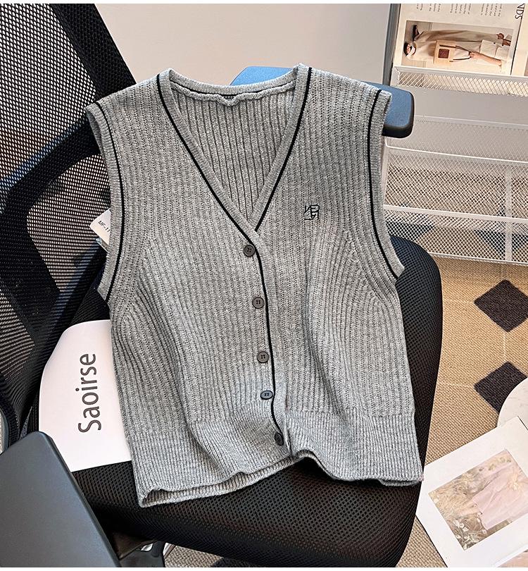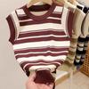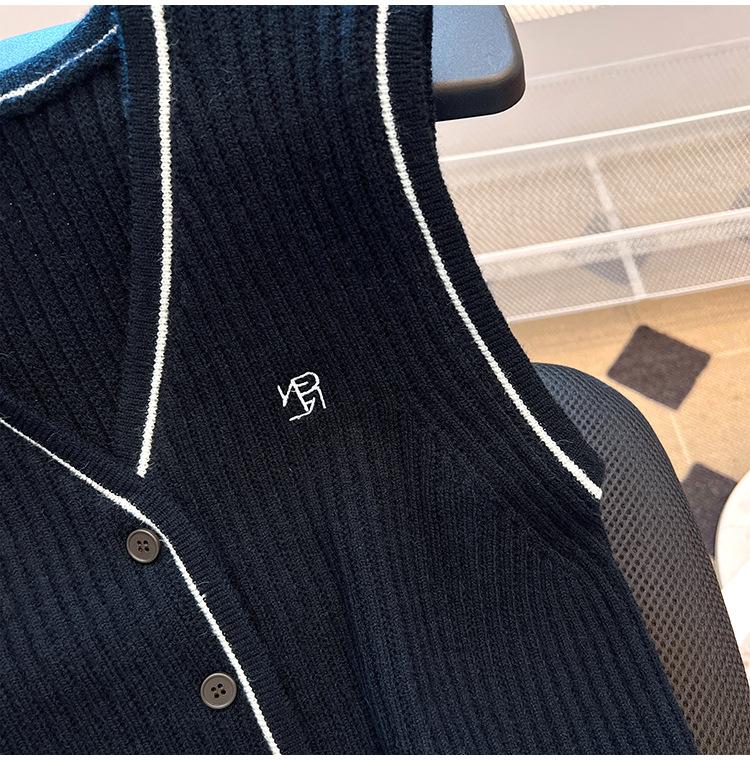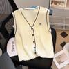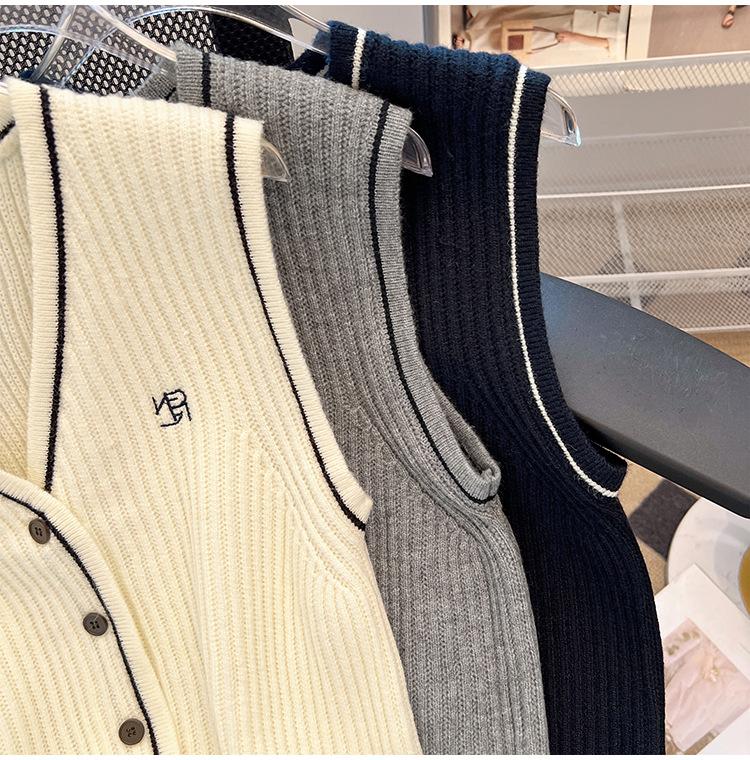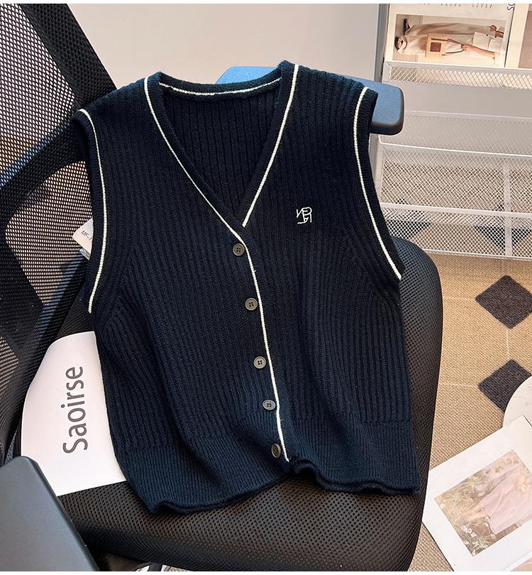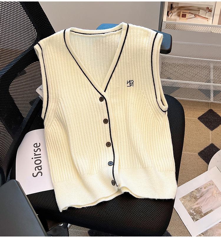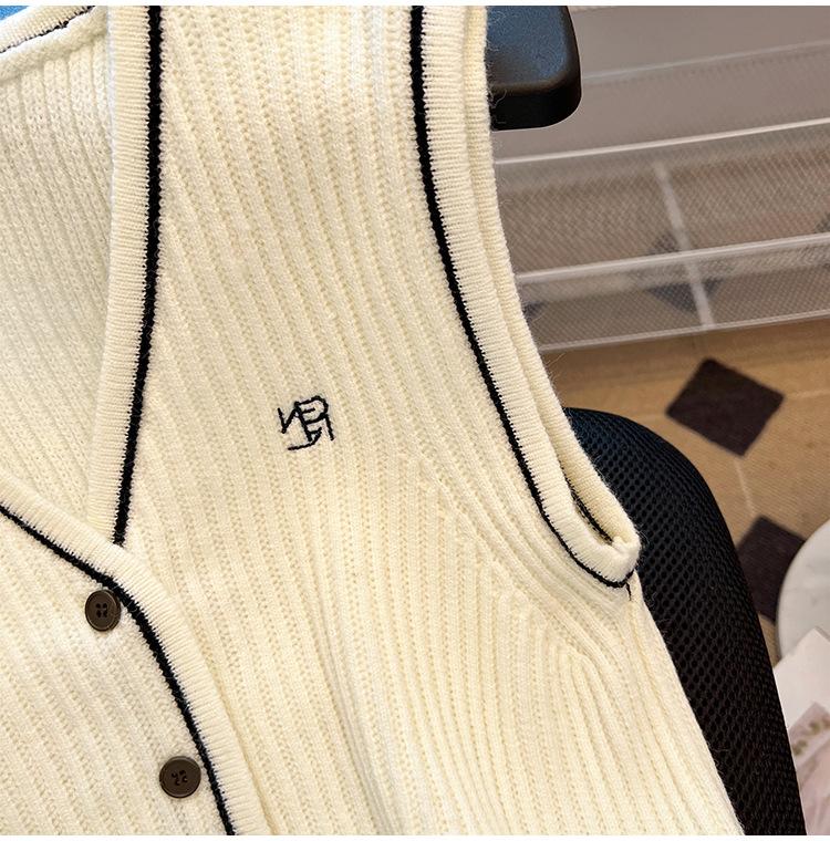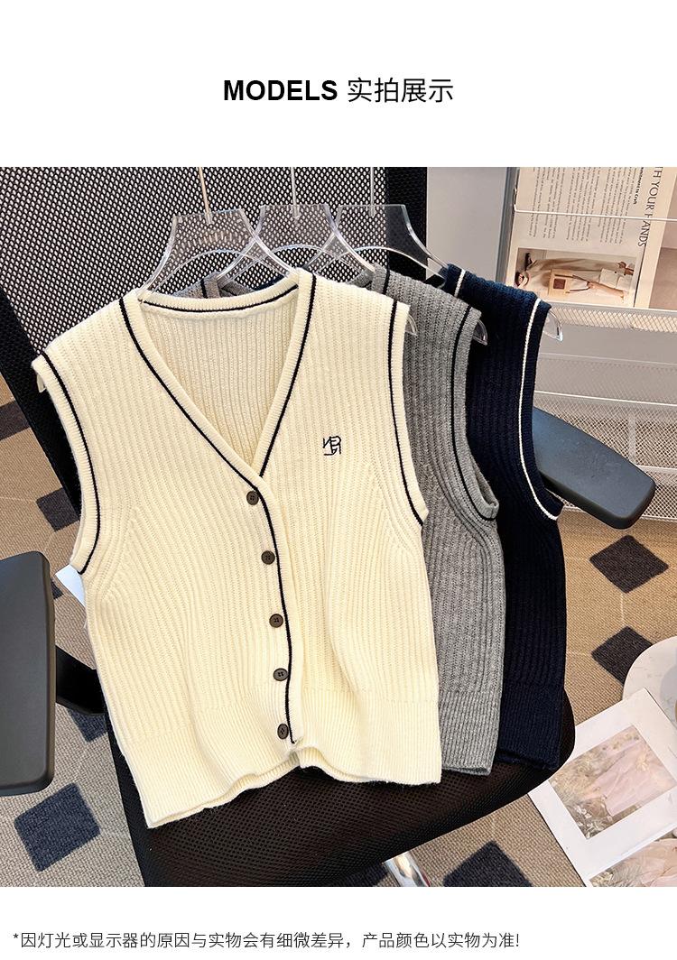 Chaleco de Punto de Color en Contraste Estilo Universitario para Mujer Otoño 2024 Estilo Cuello en V Apilado Combinable Sin Mangas Ropa Exterior Top Corto