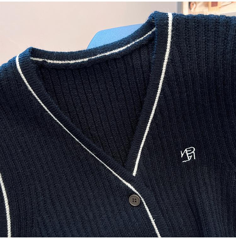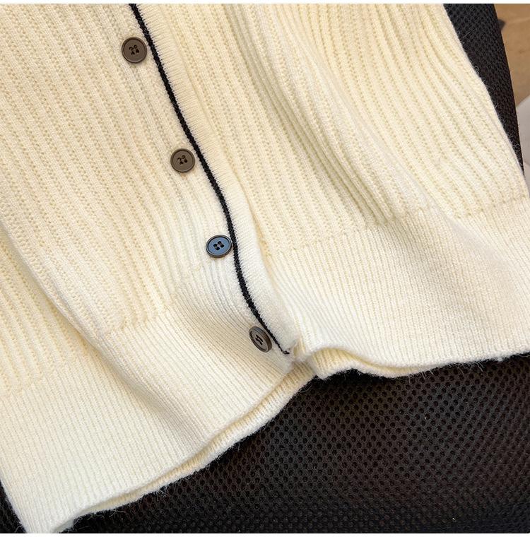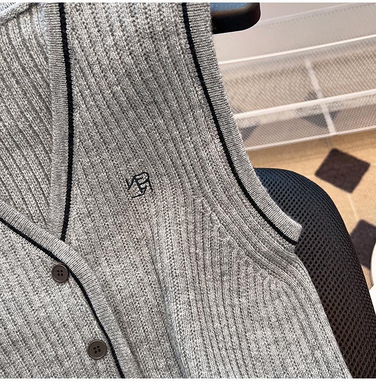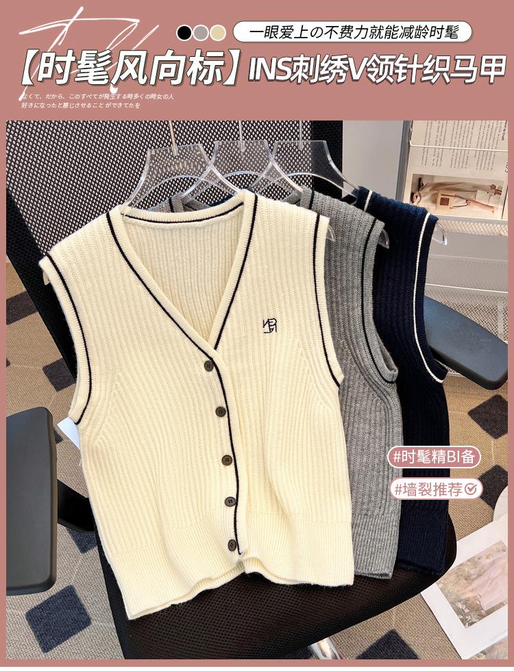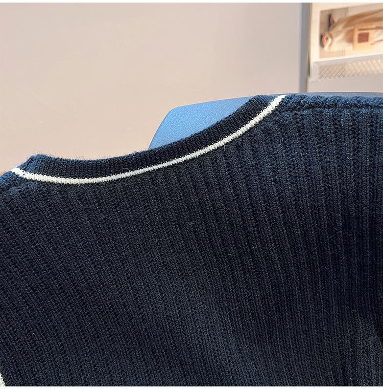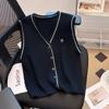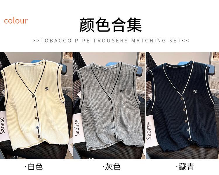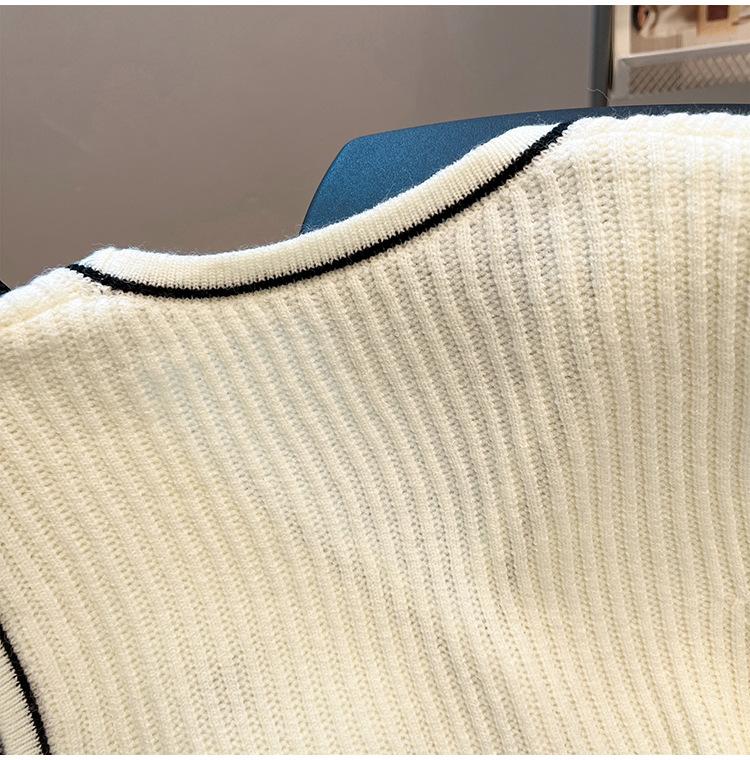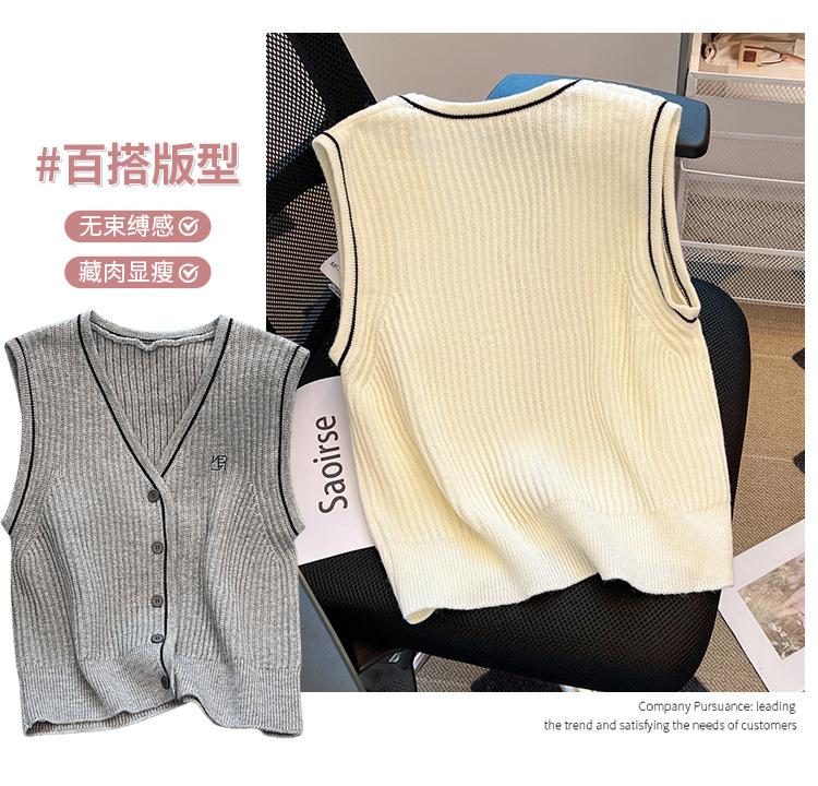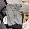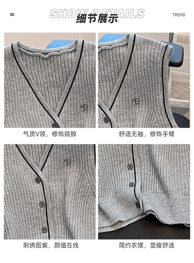 Chaleco de Punto de Color en Contraste Estilo Universitario para Mujer Otoño 2024 Estilo Cuello en V Apilado Combinable Sin Mangas Ropa Exterior Top Corto