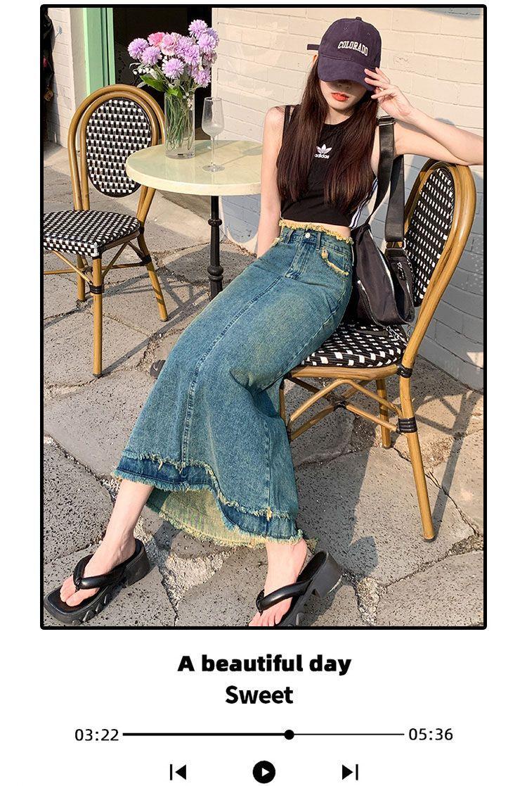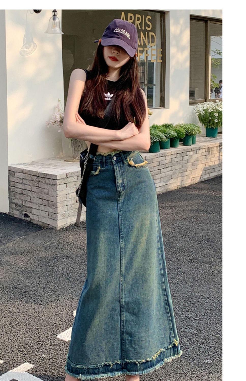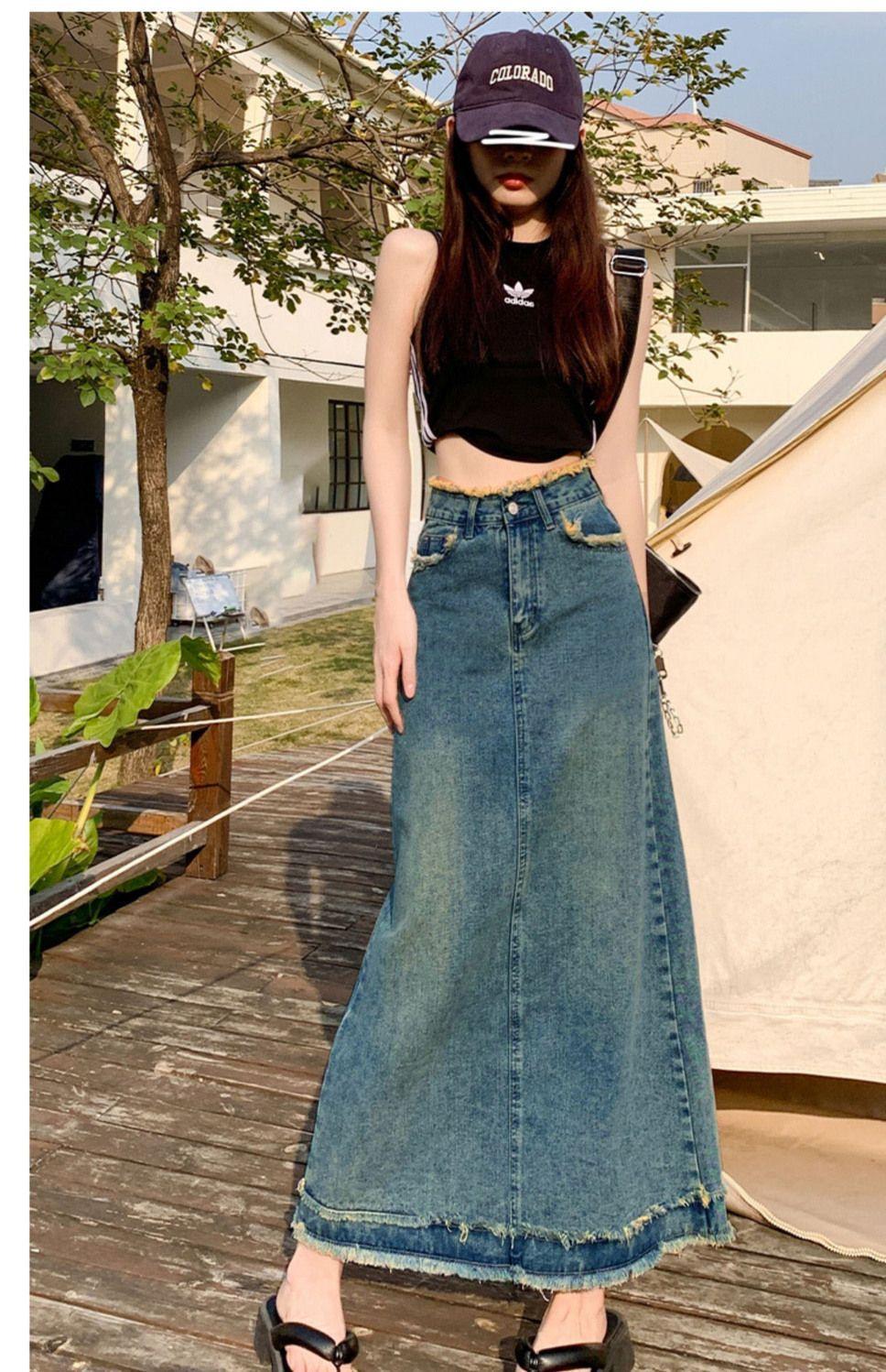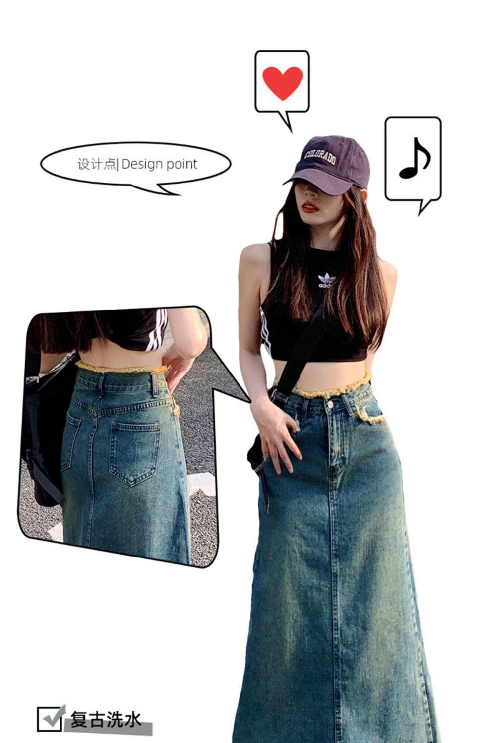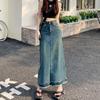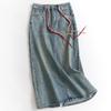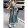 Falda vaquera de alta gama para mujer, primavera 2024, estilo retro azul, cintura alta, recta, corte A, longitud media, estilo occidental.