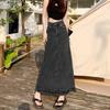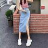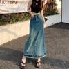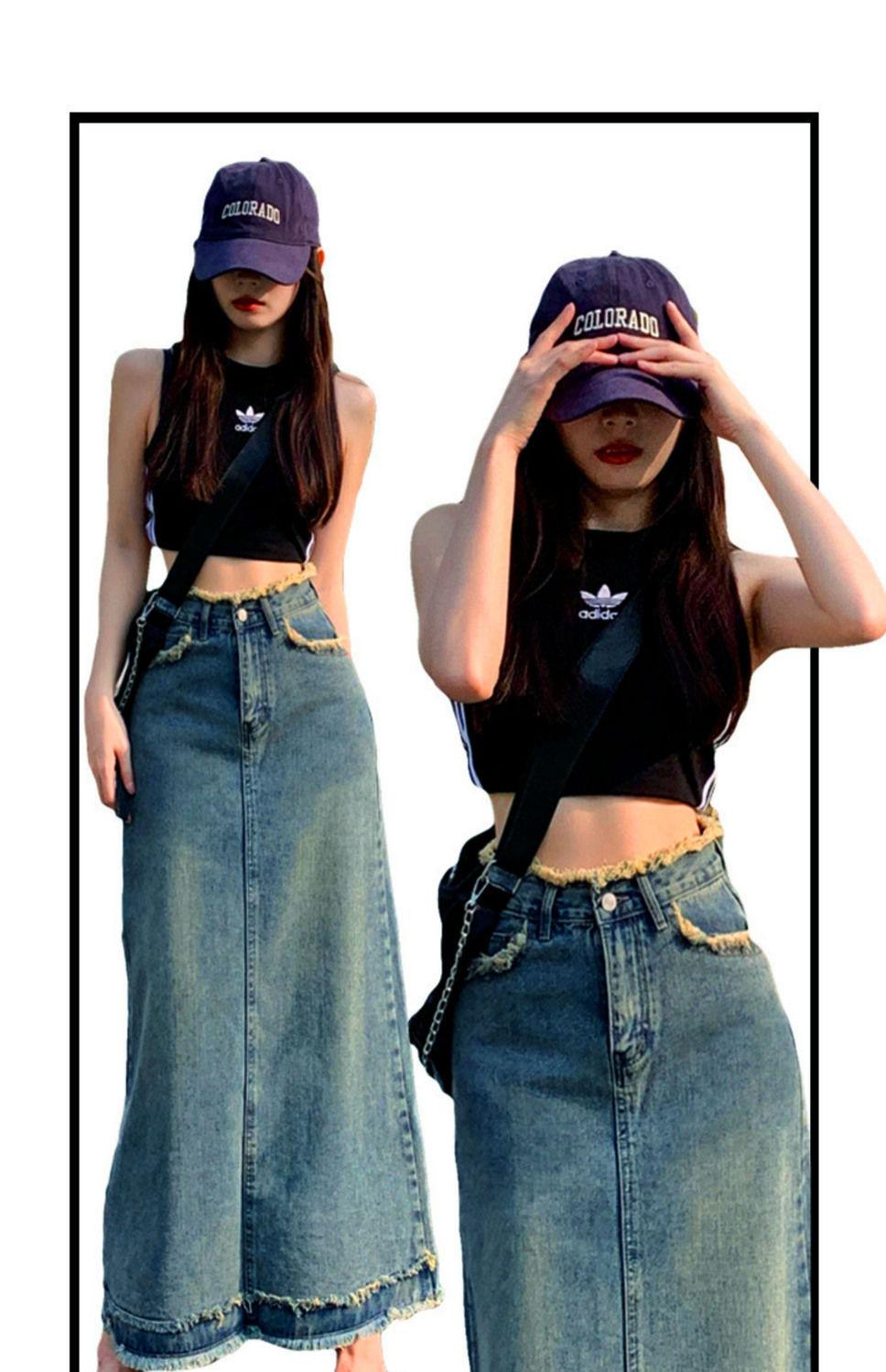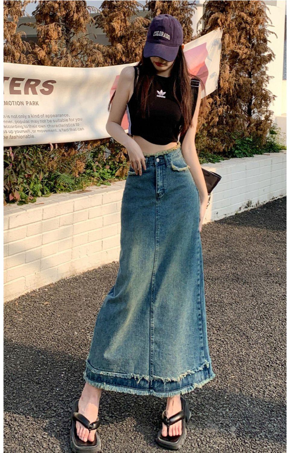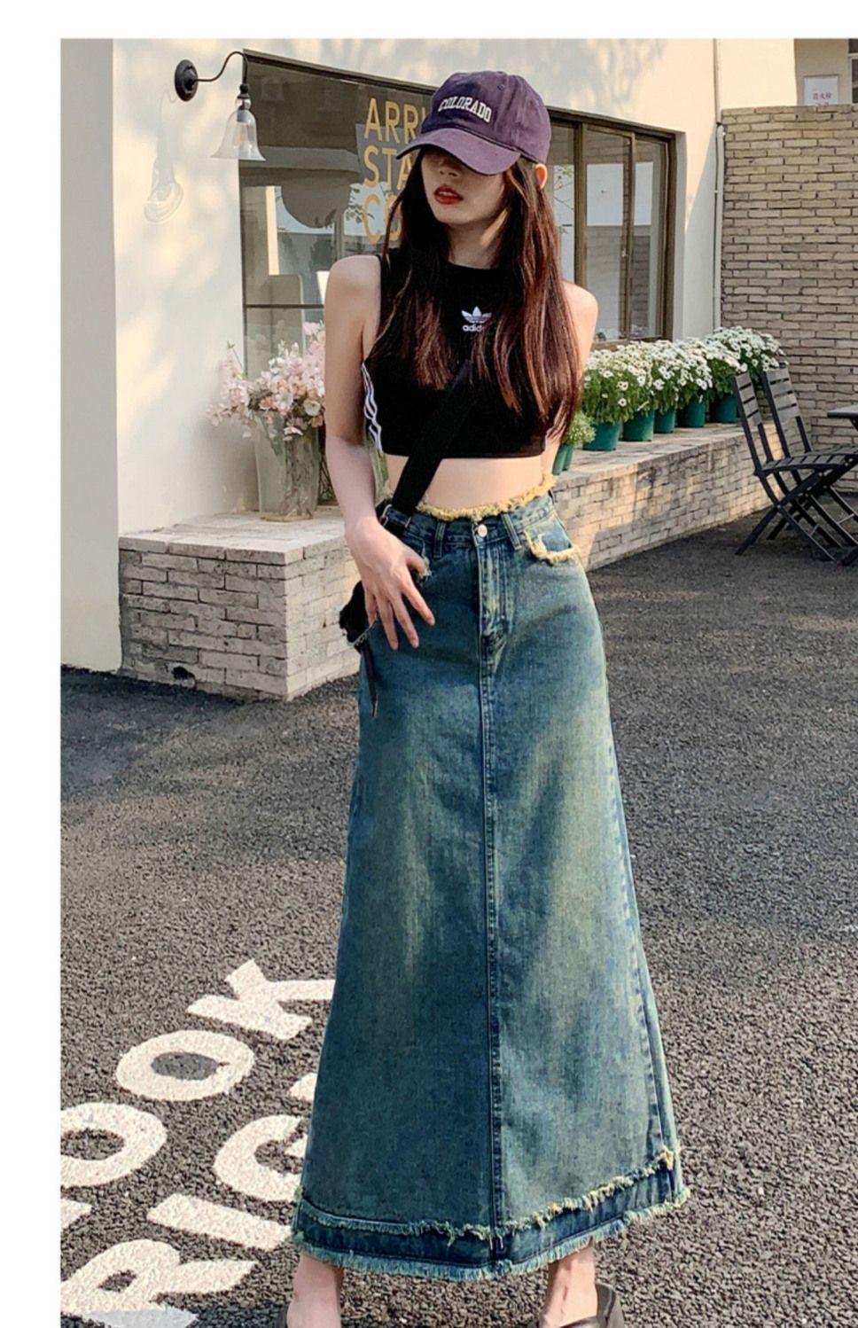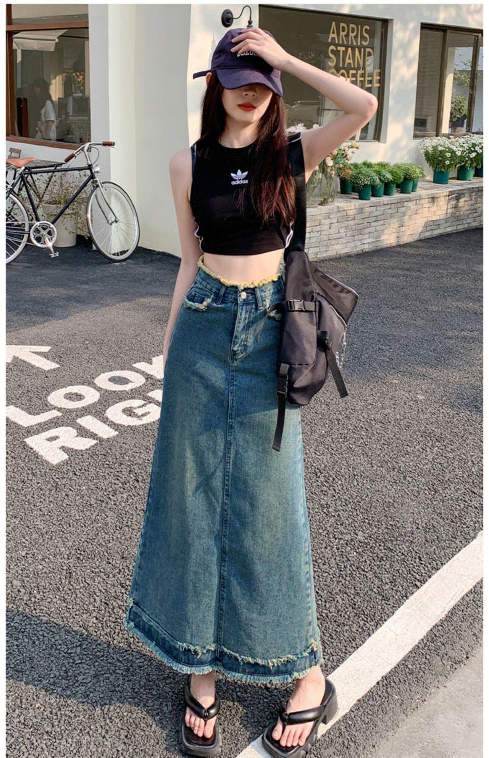 Falda vaquera de alta gama para mujer, primavera 2024, estilo retro azul, cintura alta, recta, corte A, longitud media, estilo occidental.