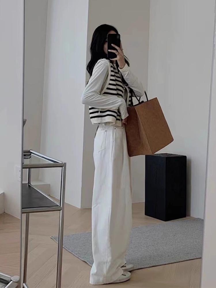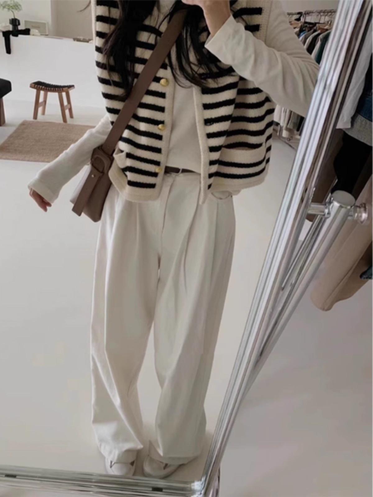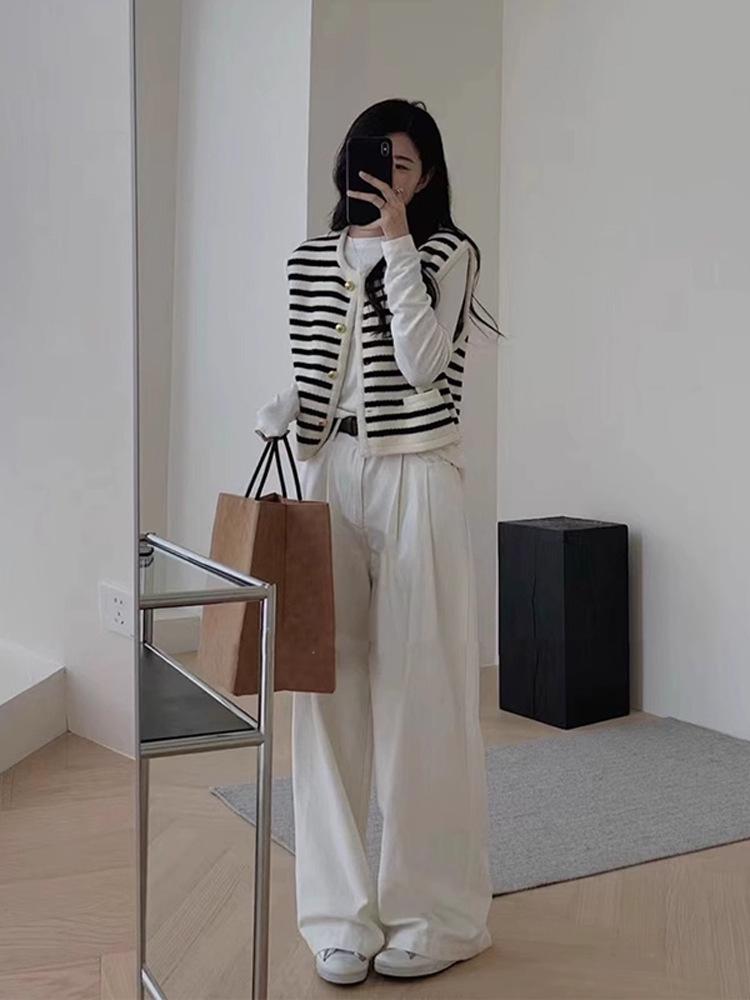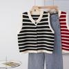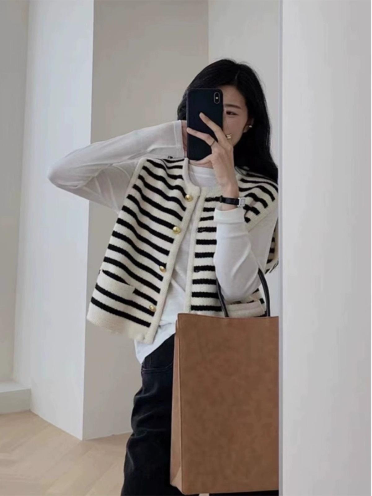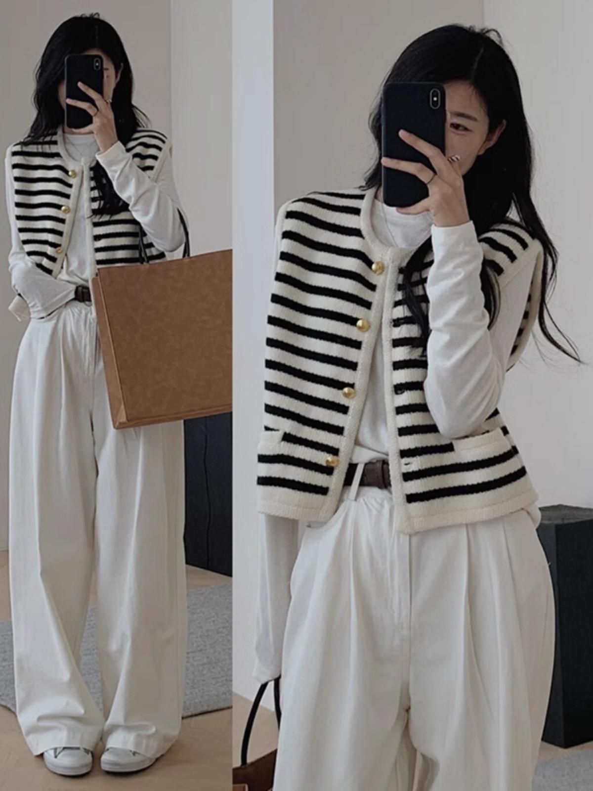 Chaleco de punto sin mangas con rayas blancas y negras estilo Chanel, cárdigan de primavera y otoño para mujer, prenda exterior, chaleco tipo suéter.