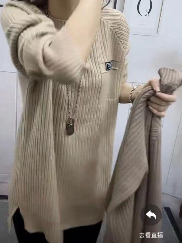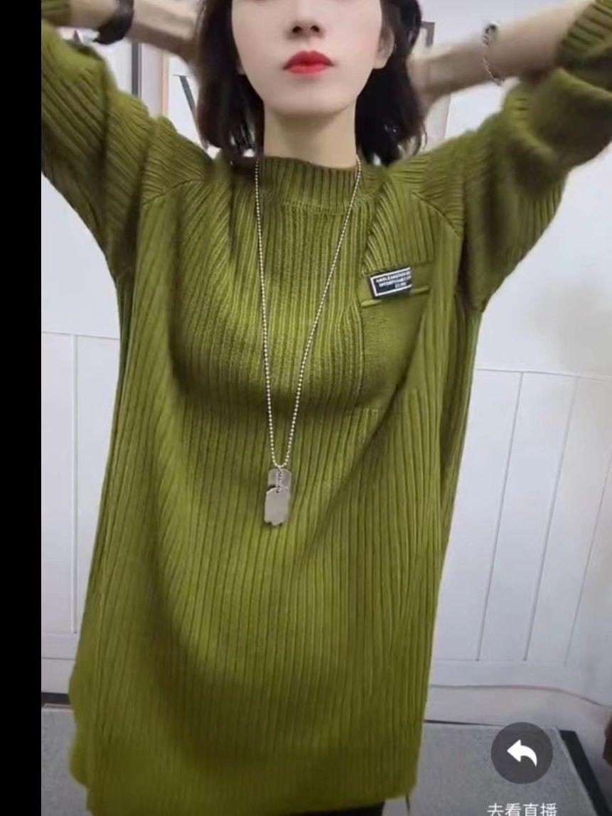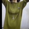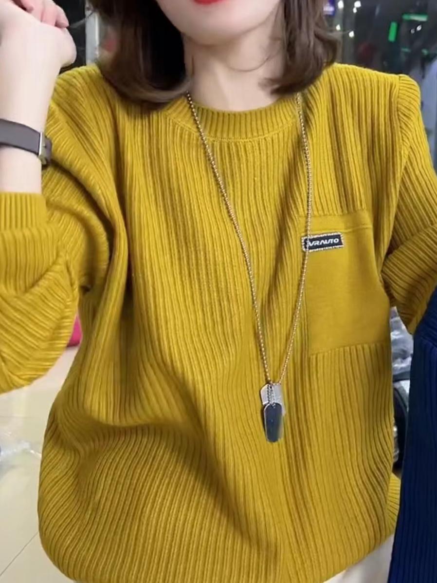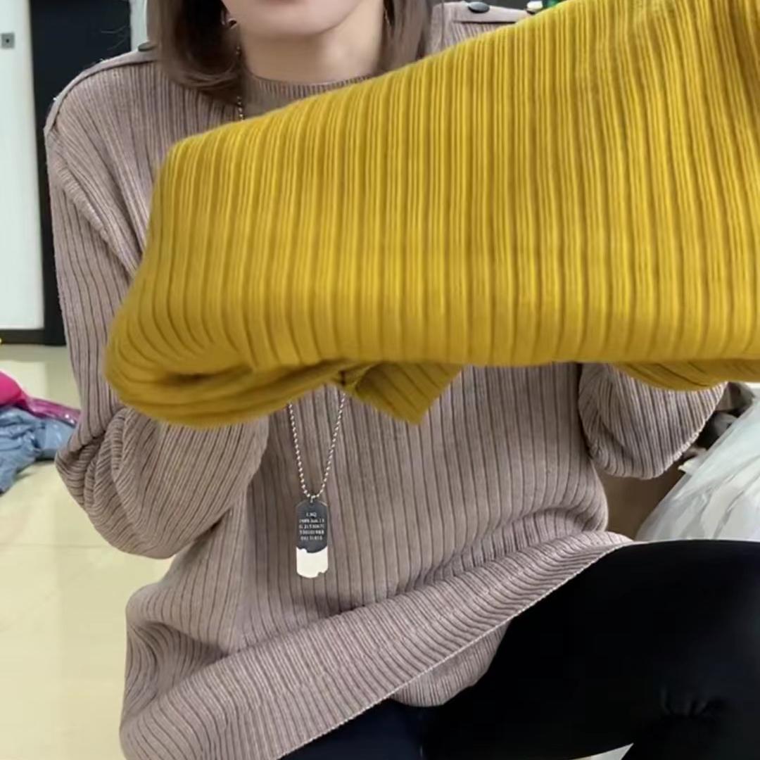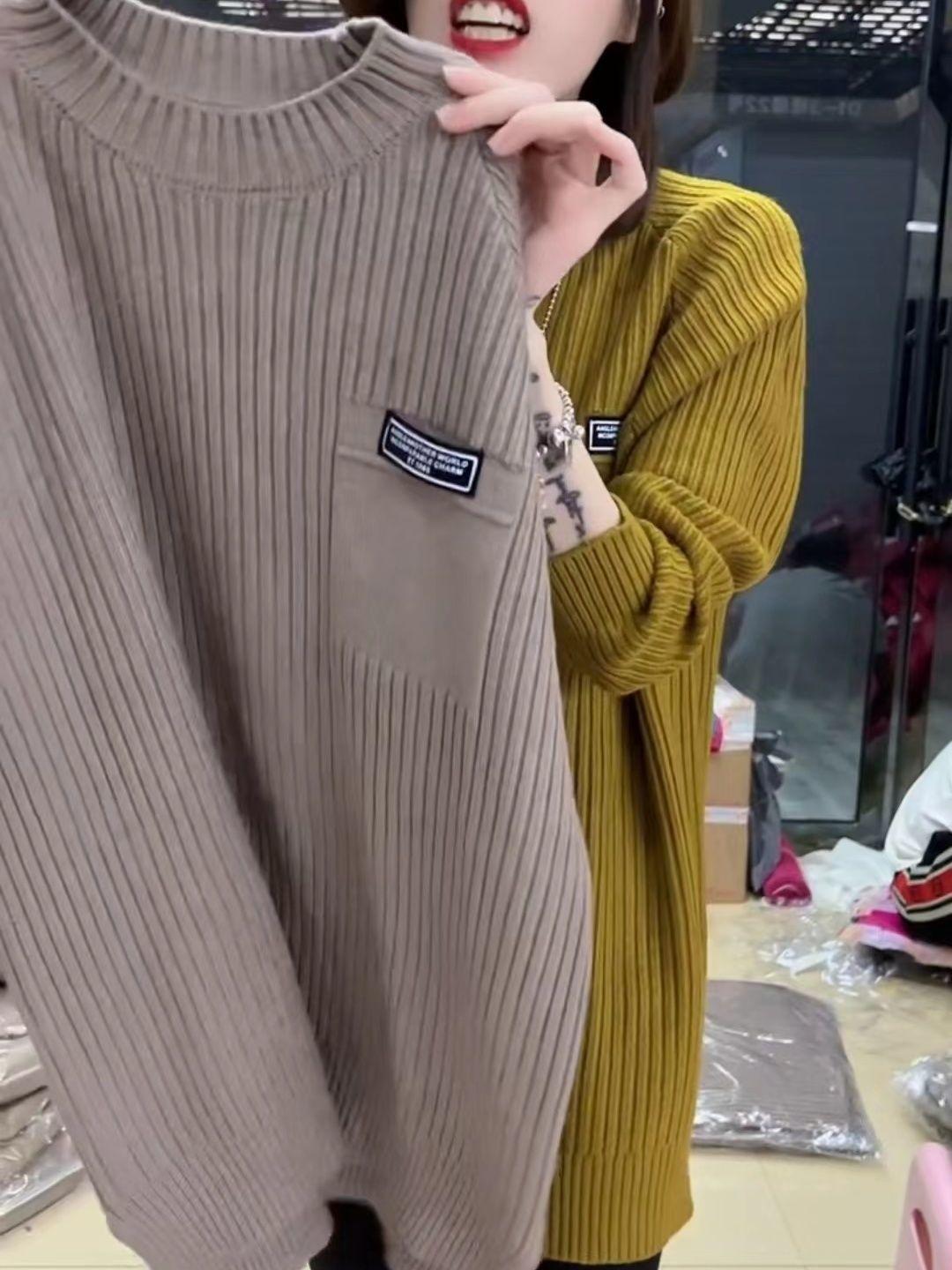 Suéter de cuello redondo de talla grande para mujer, camisa de punto holgada de longitud media para uso exterior, cálida, para otoño e invierno.