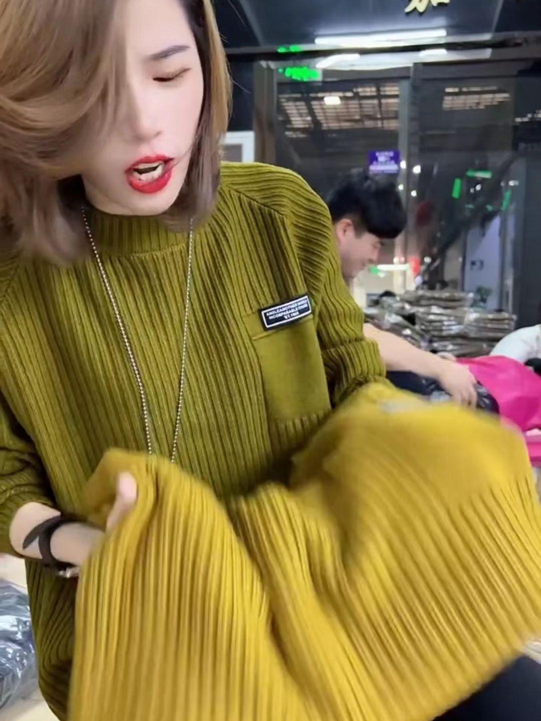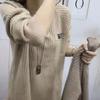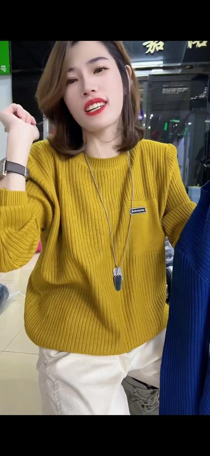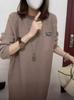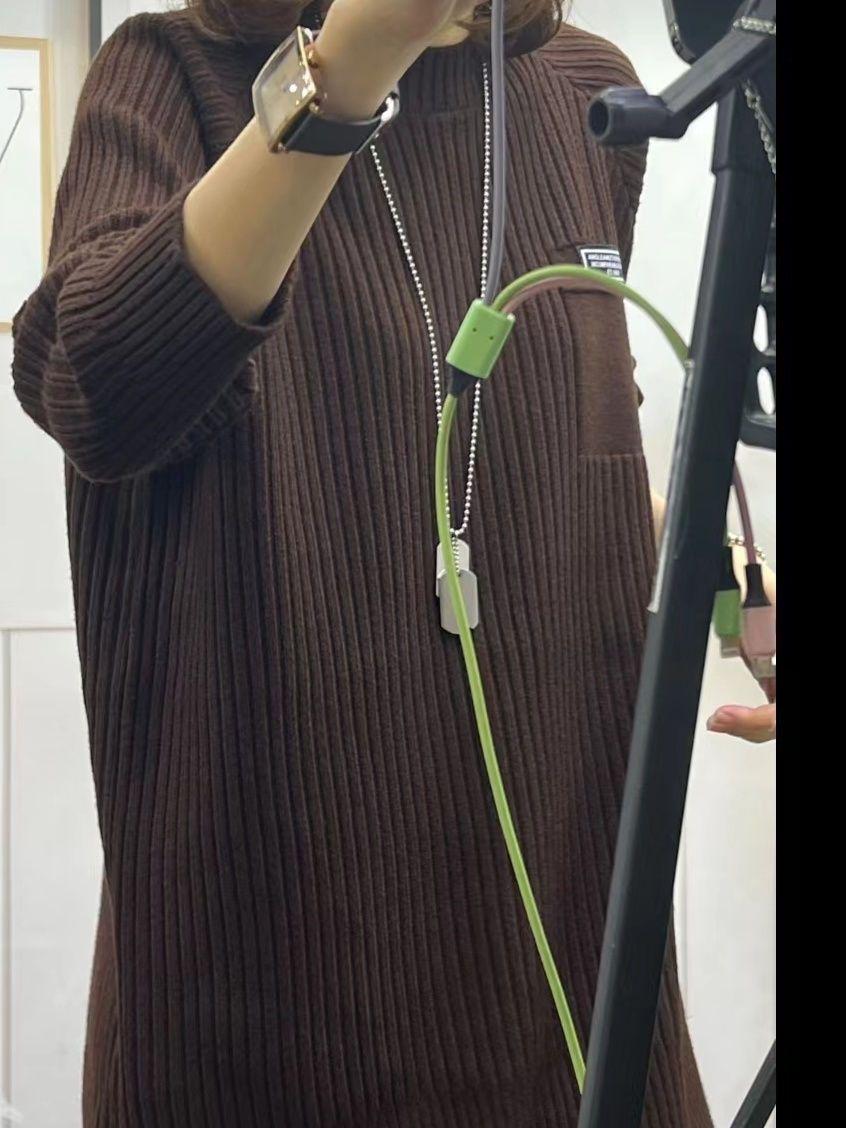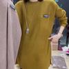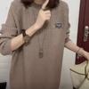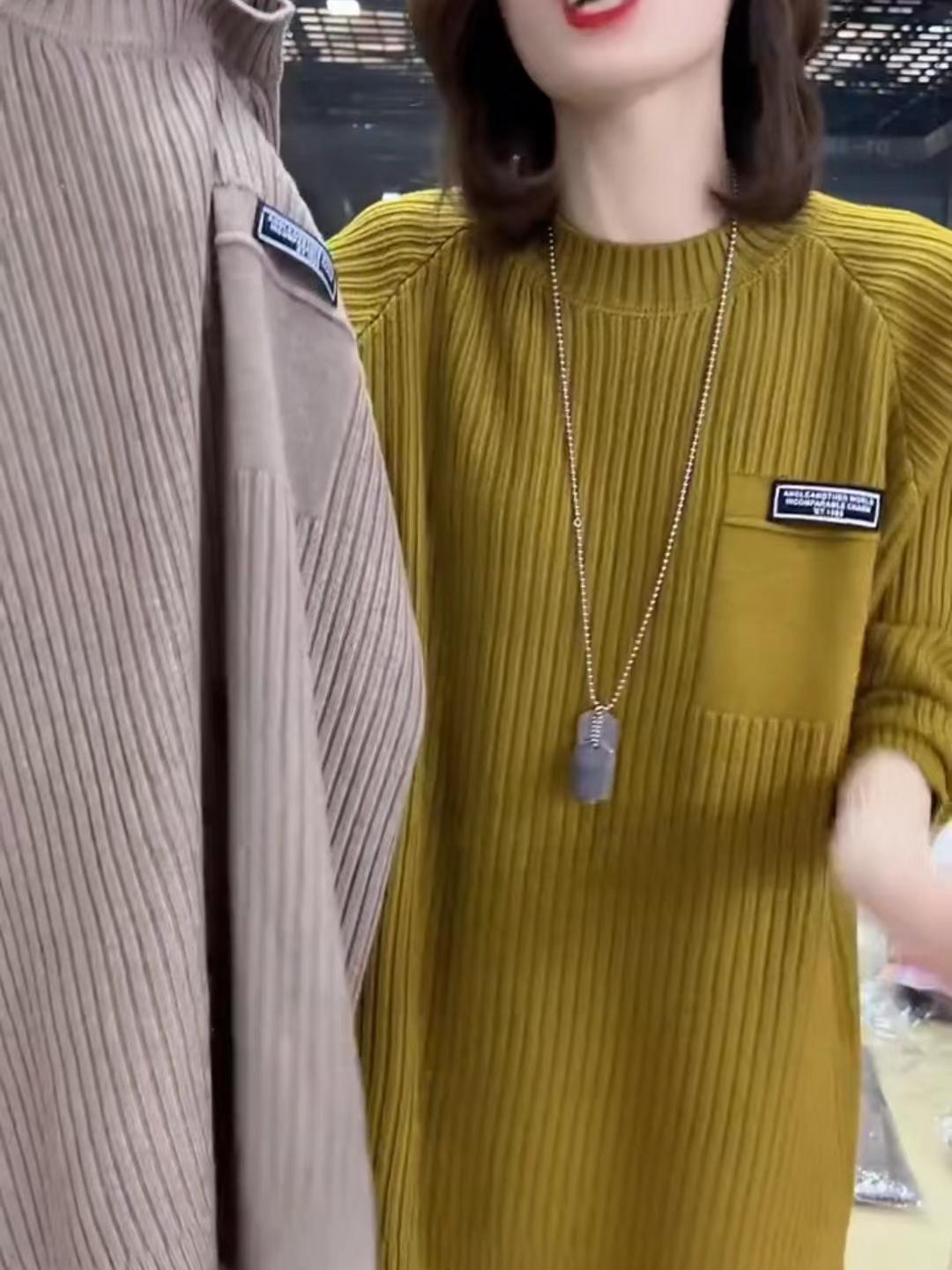 Suéter de cuello redondo de talla grande para mujer, camisa de punto holgada de longitud media para uso exterior, cálida, para otoño e invierno.