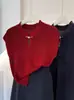 2024 Nuevo Estilo de Verano Top de Seda de Hielo Cuello Alto Botón de Placa Estilo Occidental Chaleco Tejido sin Mangas Estilo Nacional Versátil Camiseta de Mujer
