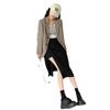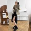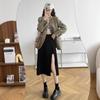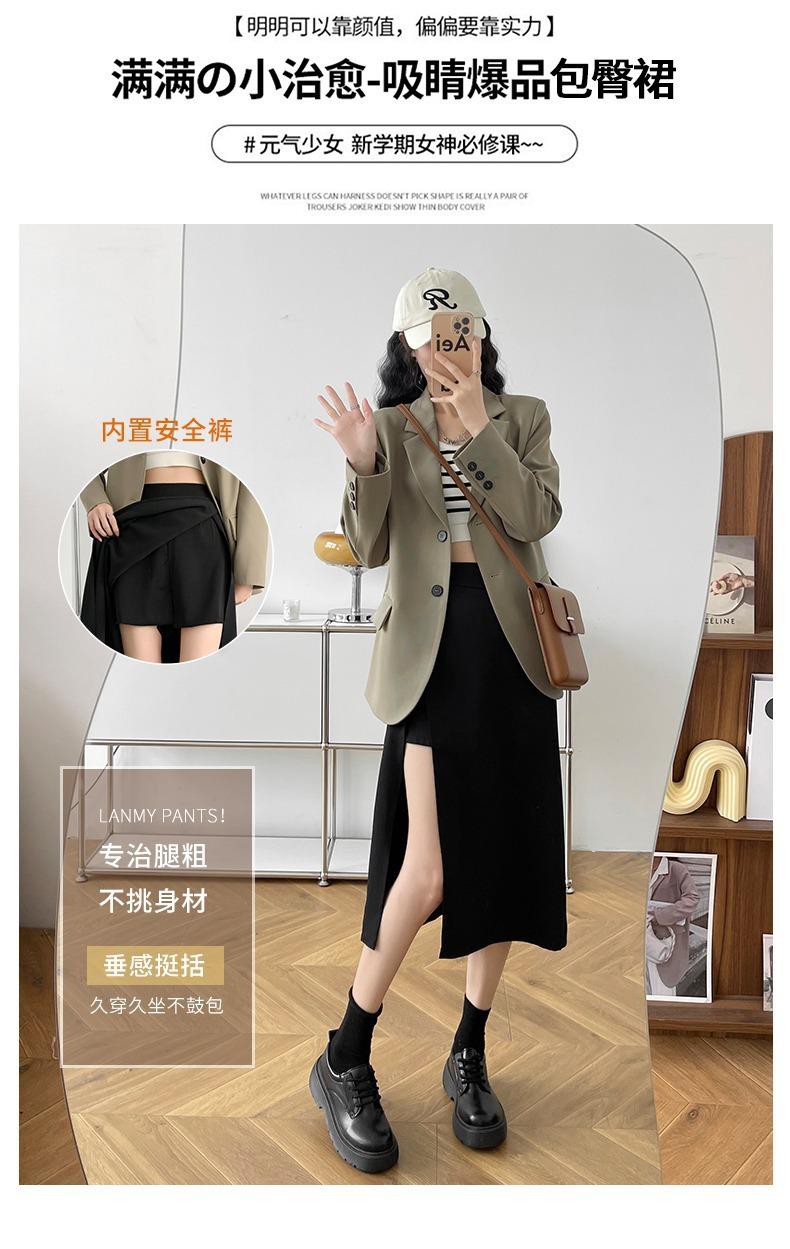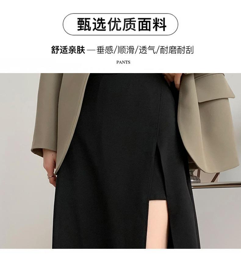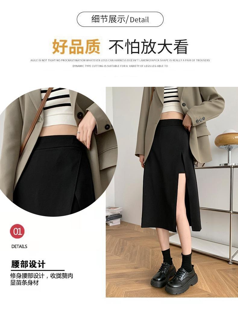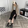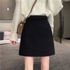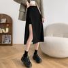 Falda negra para niña, otoño 2024, de longitud media, cintura alta, en forma de A, con abertura en la cadera, nueva falda ajustada de un solo paso