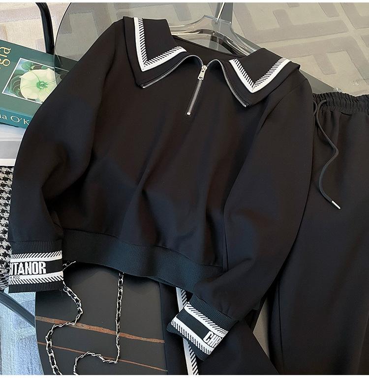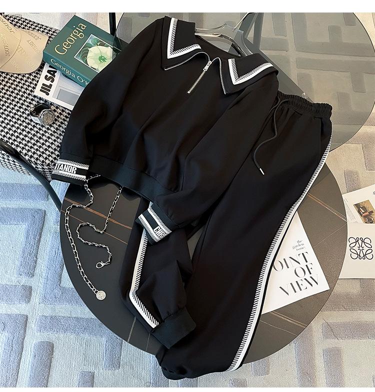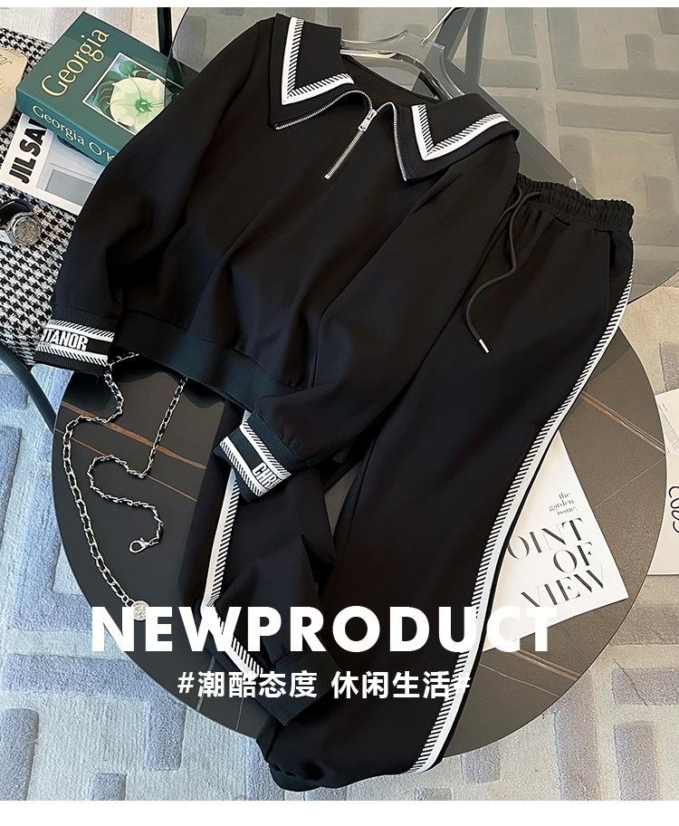 Traje deportivo informal para mujer, otoño e invierno 2024, nueva moda, elegante, antiedad, con cremallera, cuello de muñeca, conjunto de dos piezas, tendencia ins
