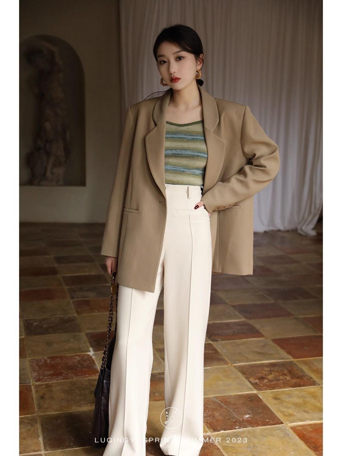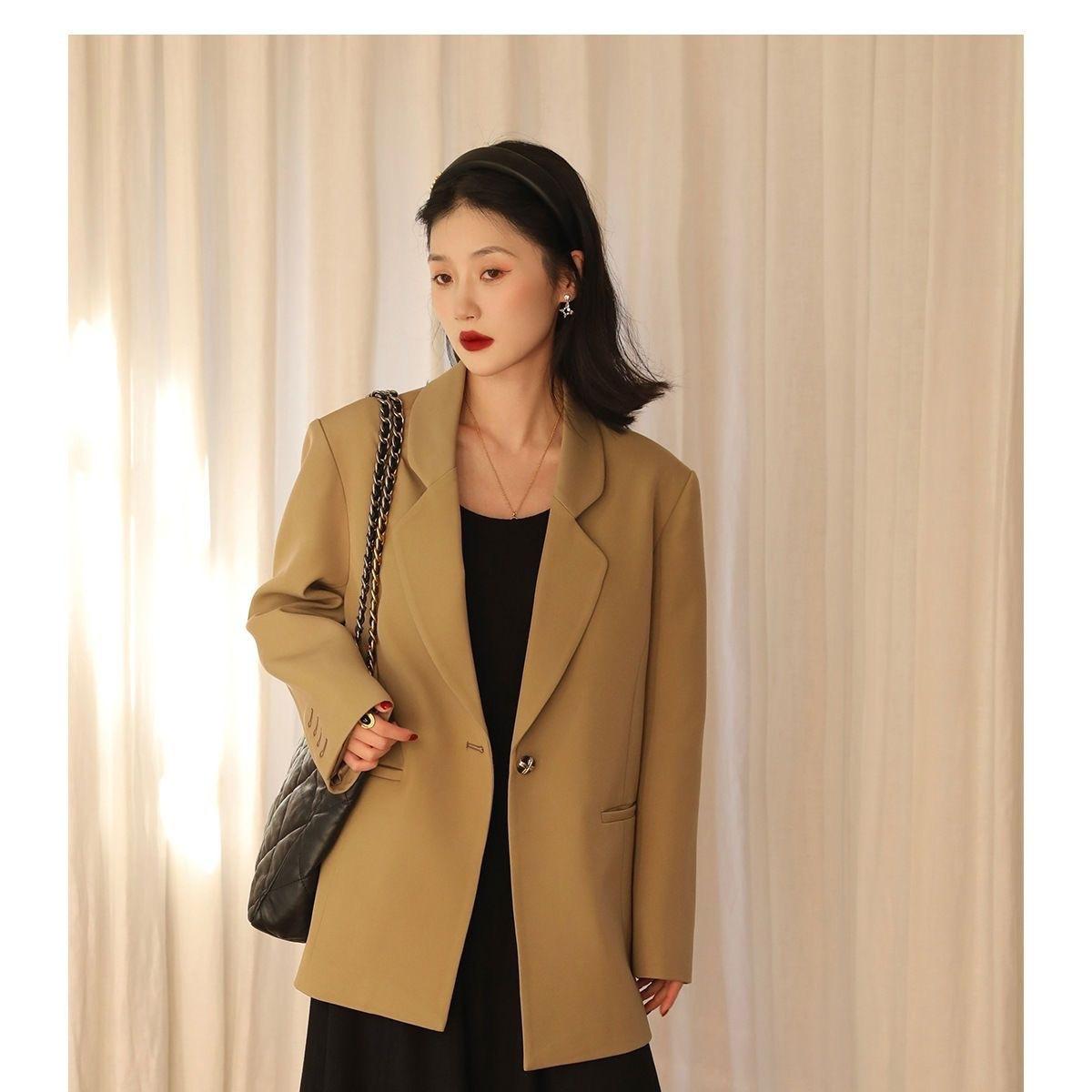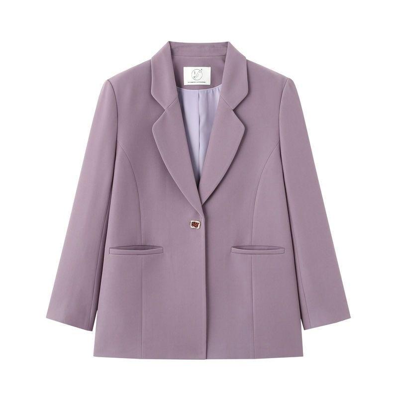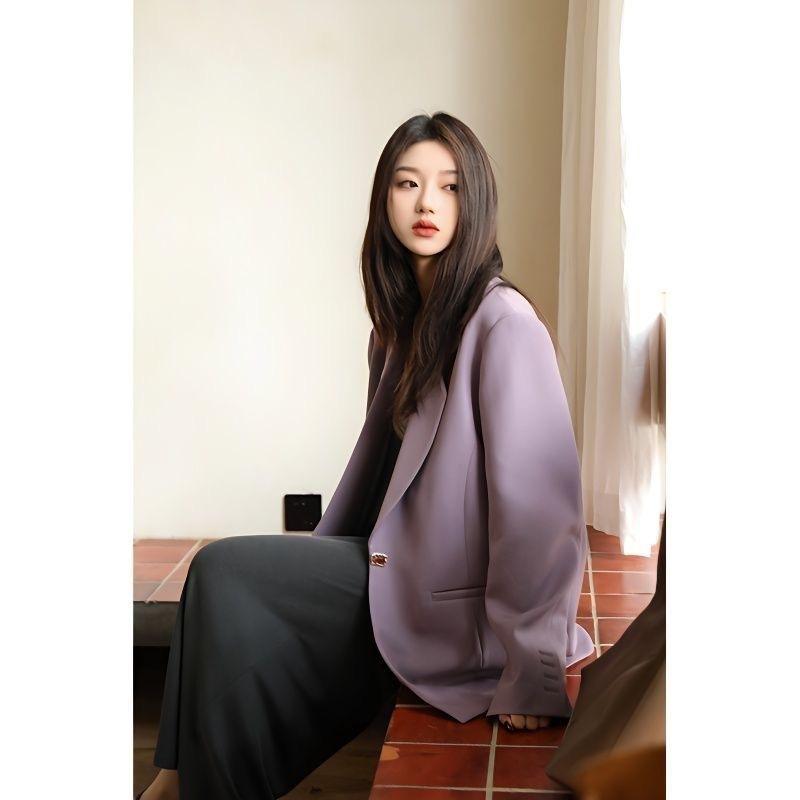 Chaqueta de Traje Morada para Comercio Exterior para Mujer 2024 Diseño de Primavera y Otoño Sarga Retro Casual Adelgazante Traje Pequeño