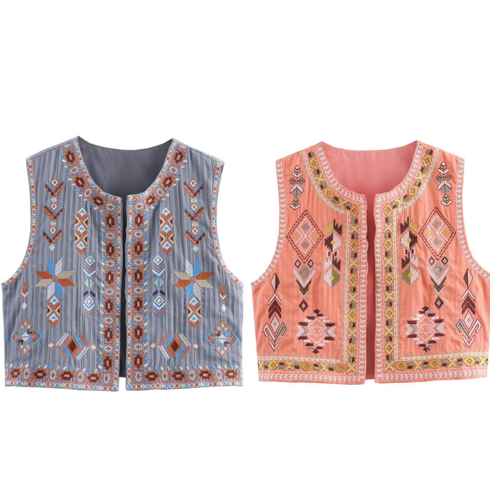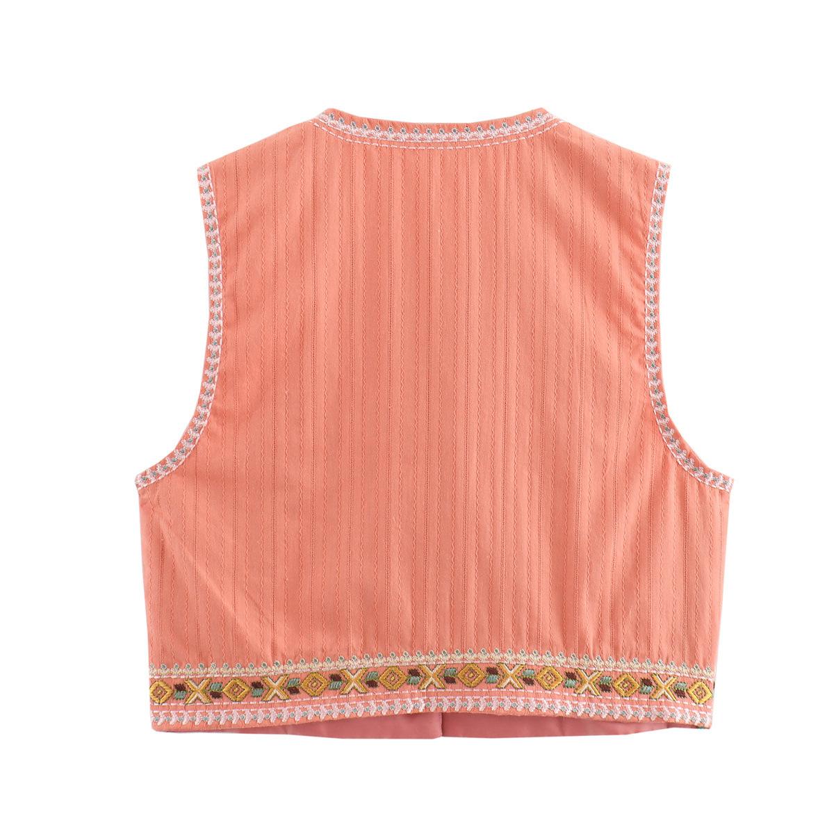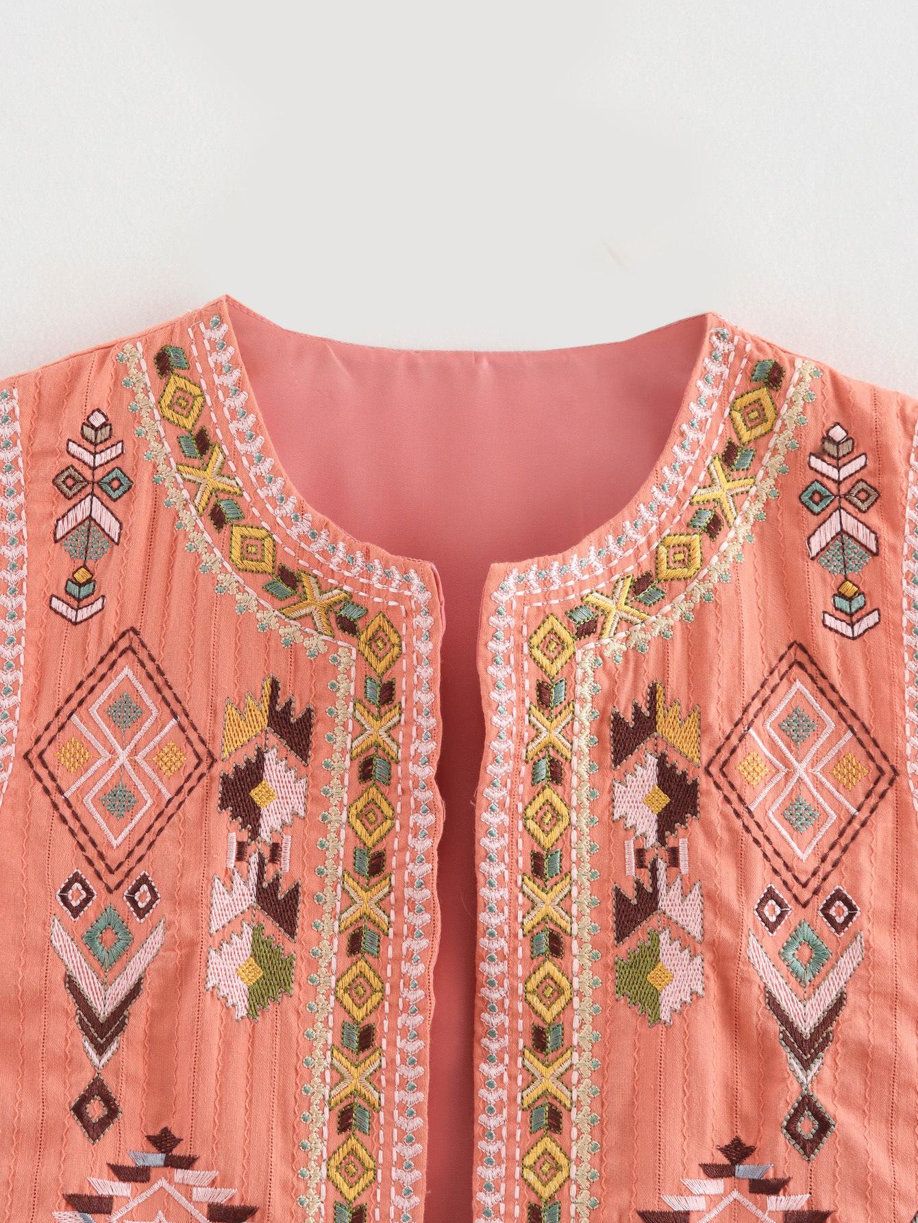 Ropa de verano 2024 para mujer, estilo europeo y americano, con cuello en V, cárdigan bordado, chaqueta corta ajustada, B69098