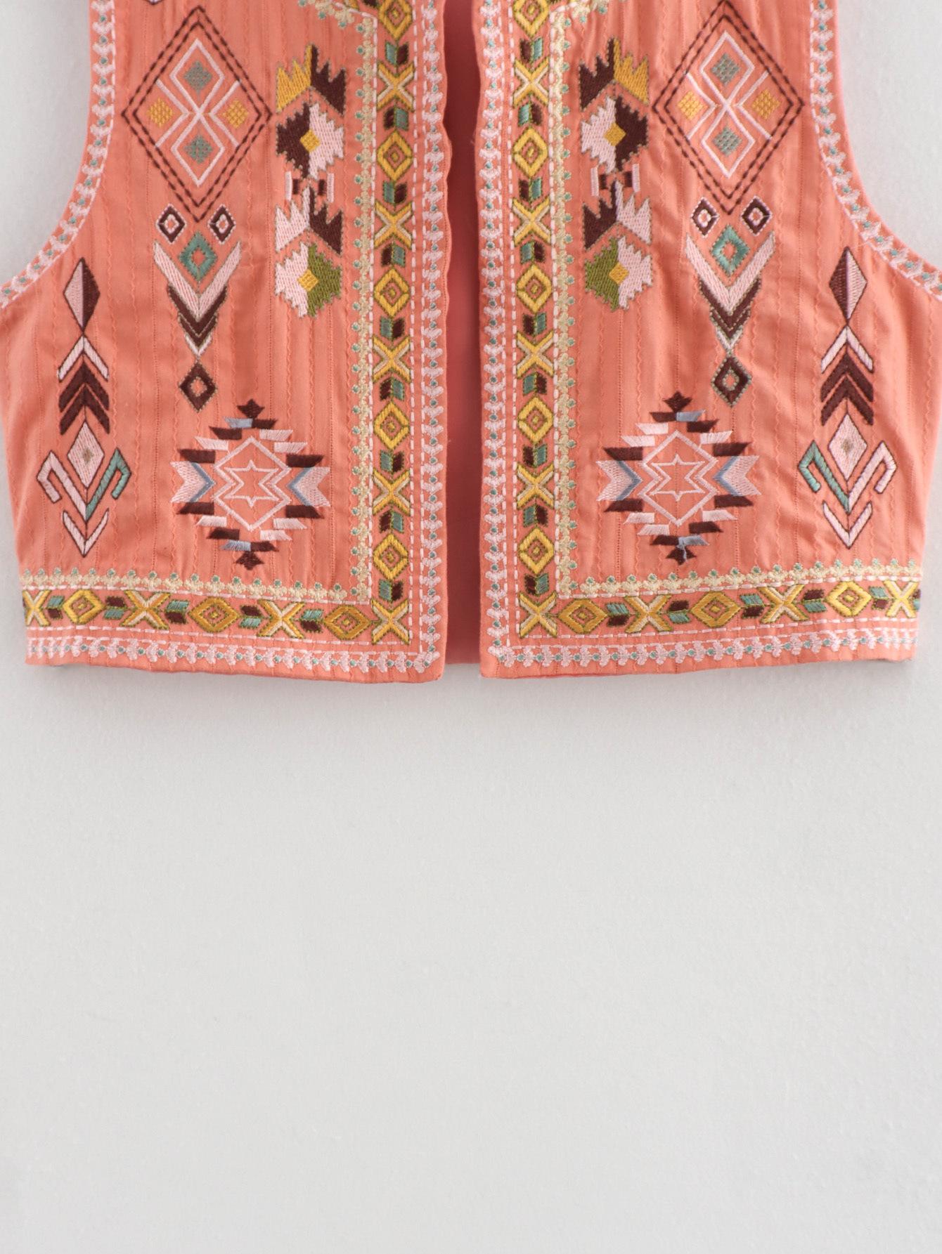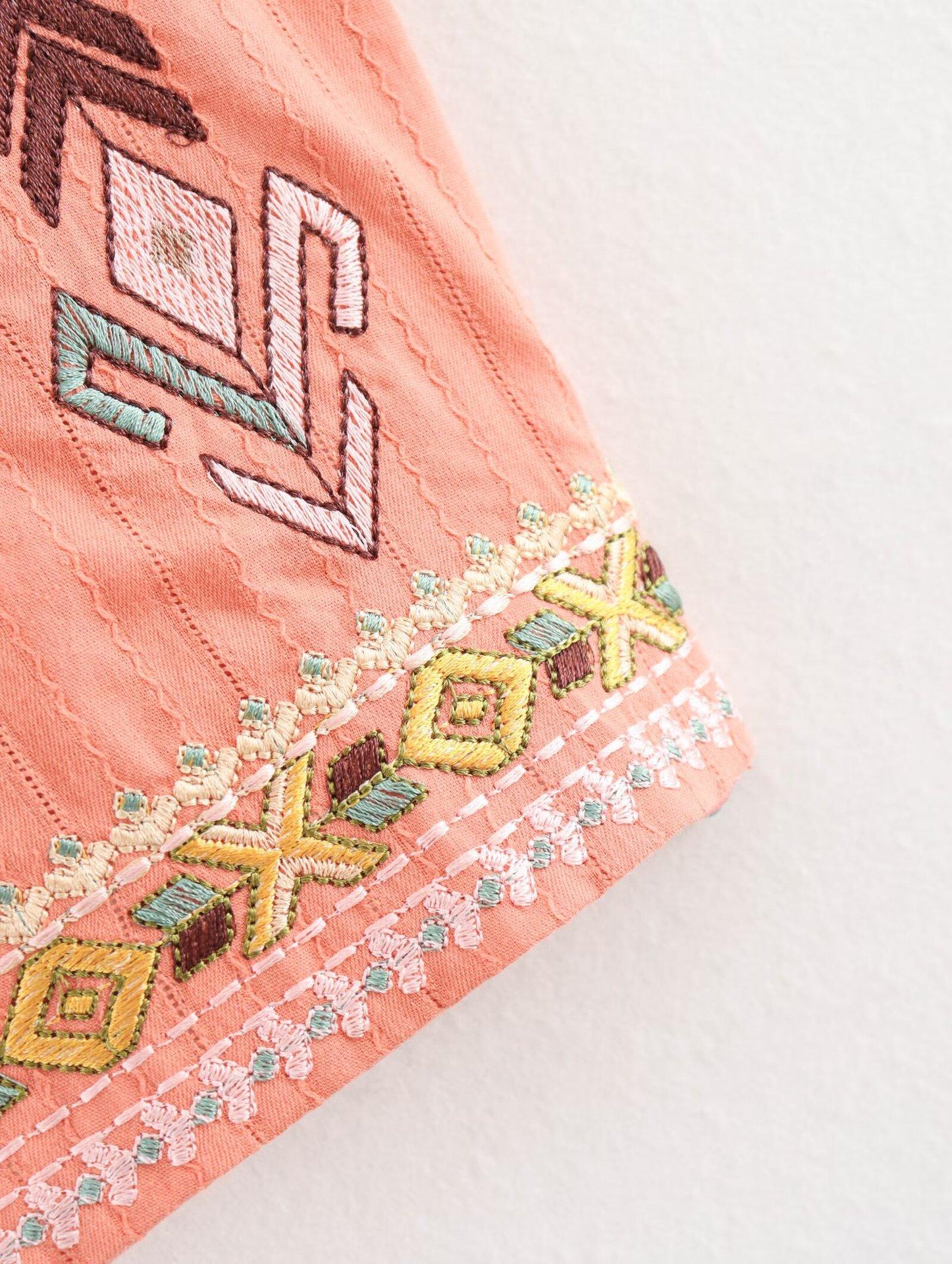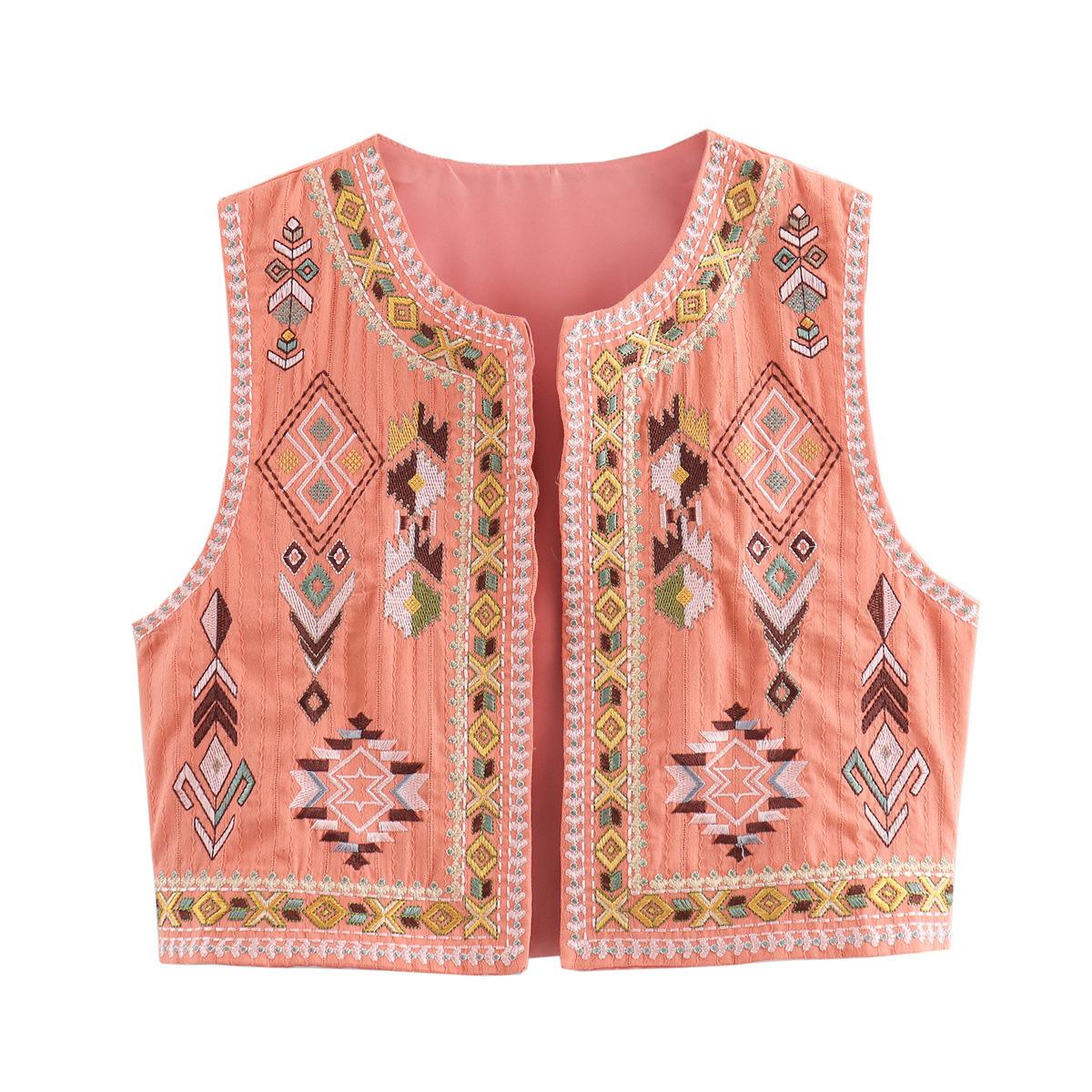 Ropa de verano 2024 para mujer, estilo europeo y americano, con cuello en V, cárdigan bordado, chaqueta corta ajustada, B69098