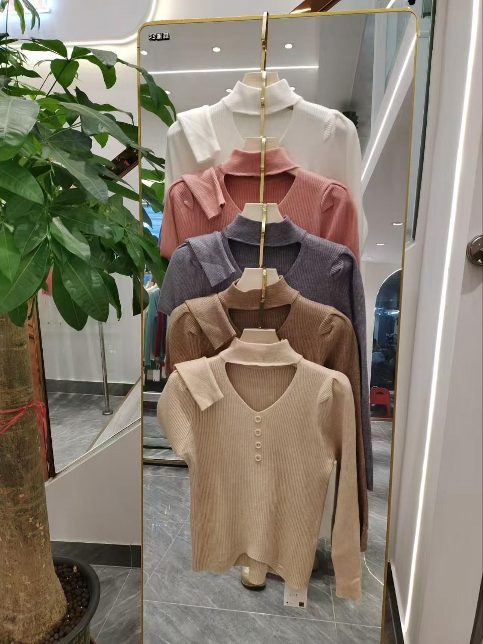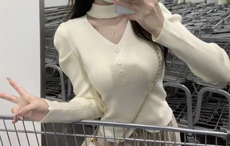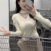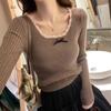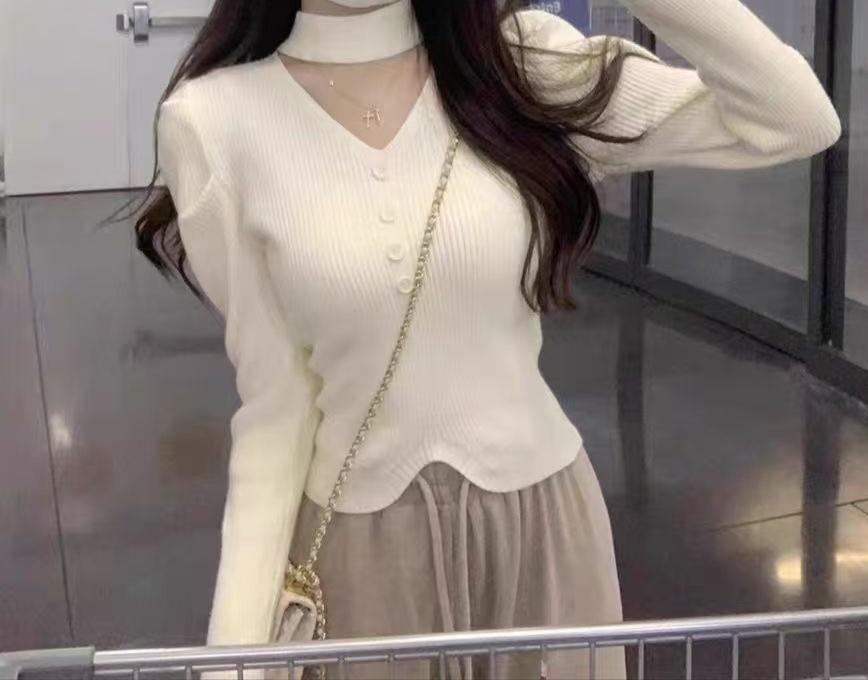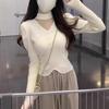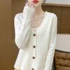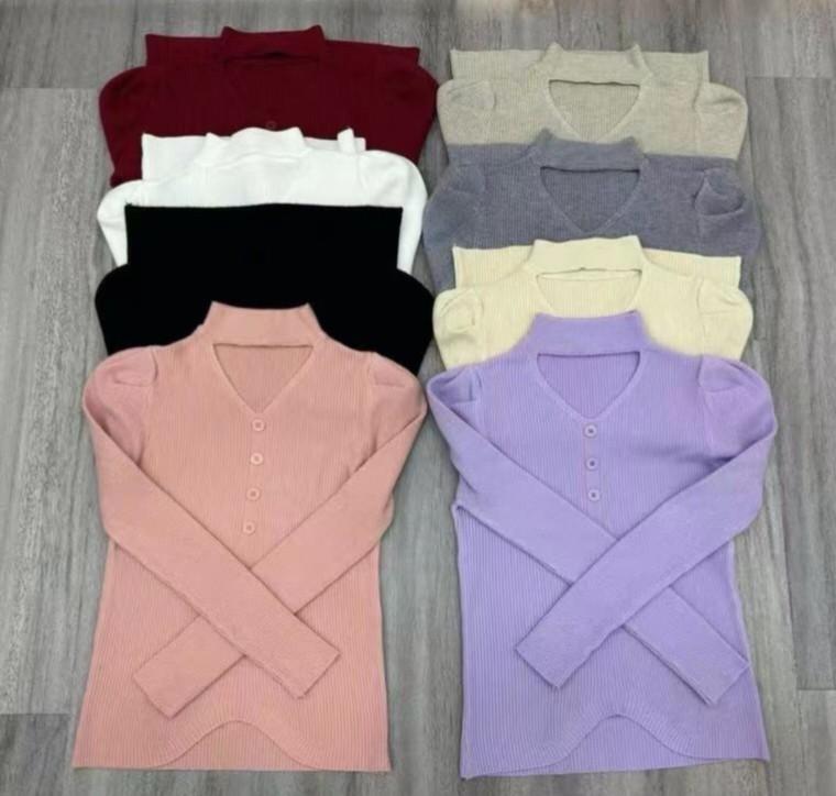 Suéter tejido interior de punto con cuello redondo y mangas abullonadas huecas de estilo coreano para otoño e invierno.