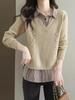 Camisa de dos piezas falsa para mujer, otoño 2024, nuevo diseño, estilo occidental, con cuello de muñeca y parte superior holgada.