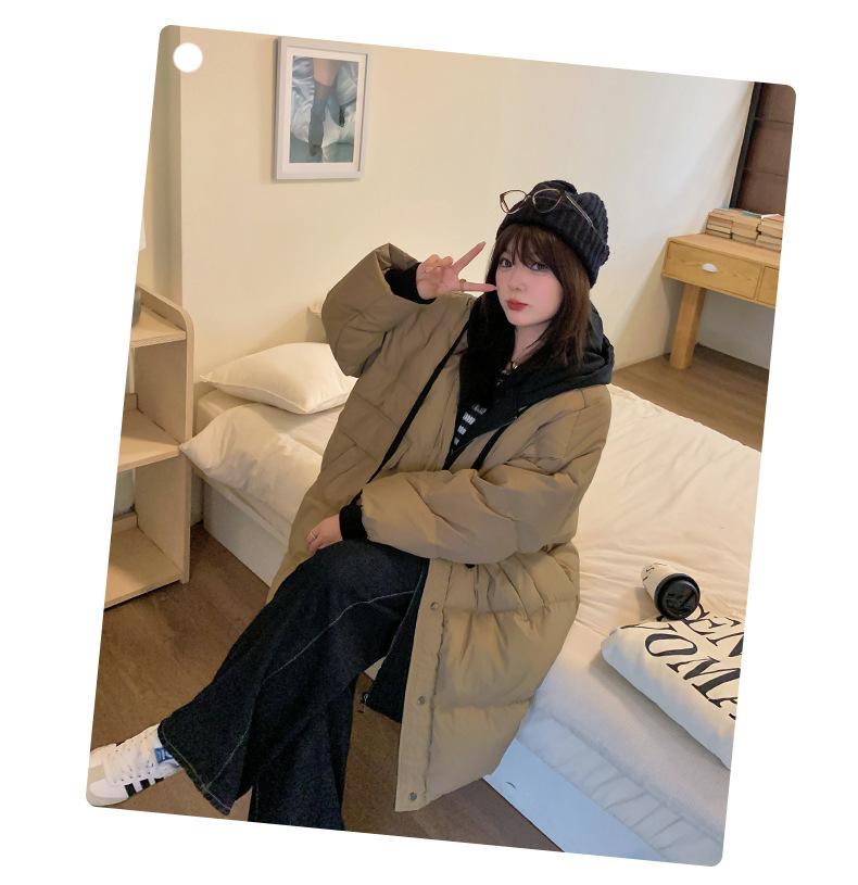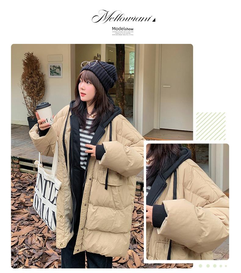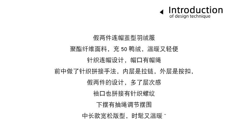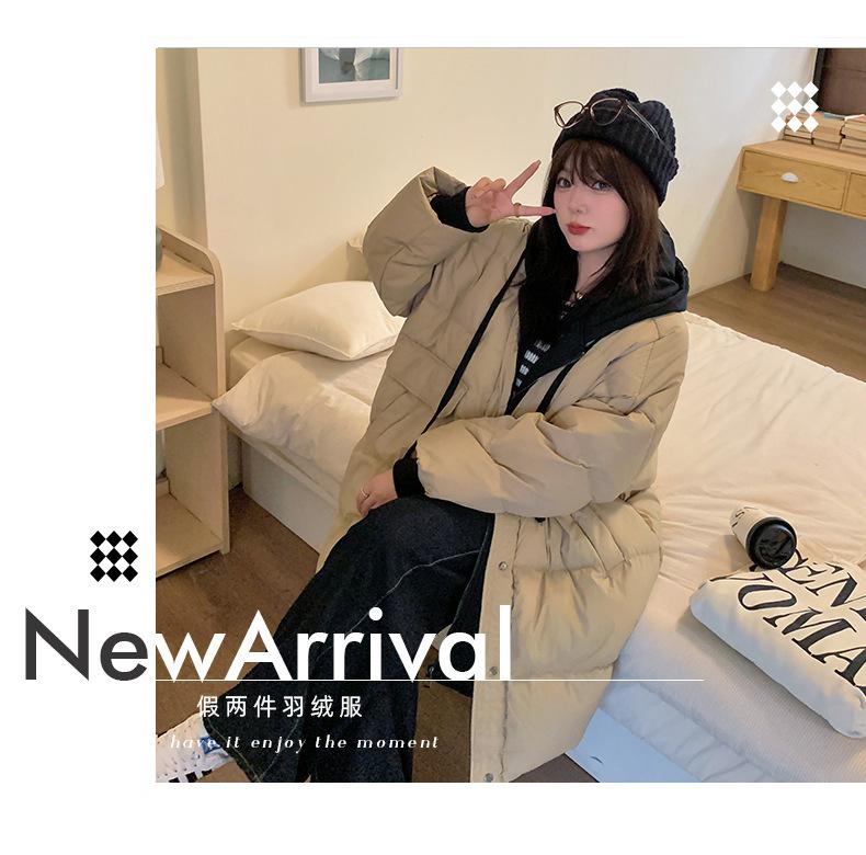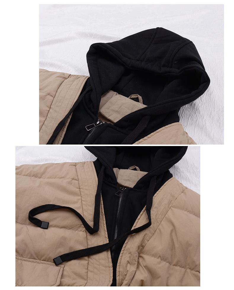 Chaqueta de plumón tipo capullo con capucha de dos piezas falsa