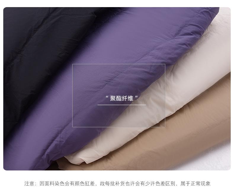 Tejido de poliéster, relleno con un 50% de plumón de pato, cálido y ligero.
