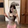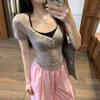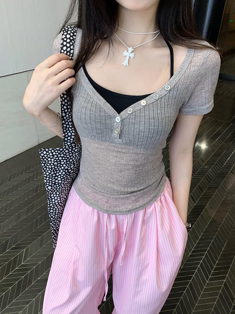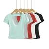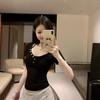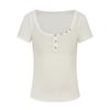 Blusa sexy con escote en V y botones en los hombros, camiseta de manga corta para mujer, top corto ajustado de verano