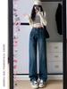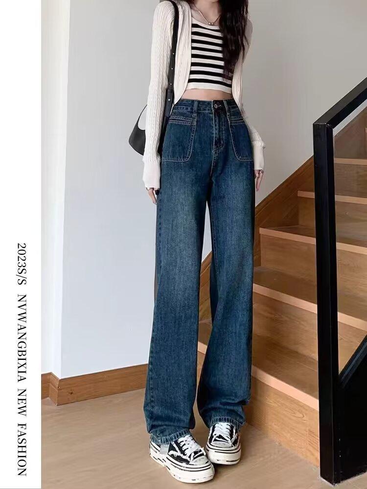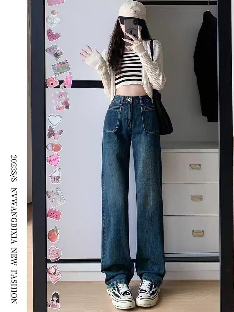Pantalones vaqueros rectos holgados para mujer, primavera otoño 2024, nuevos, de cintura alta, adelgazantes, de pierna ancha y pequeña.