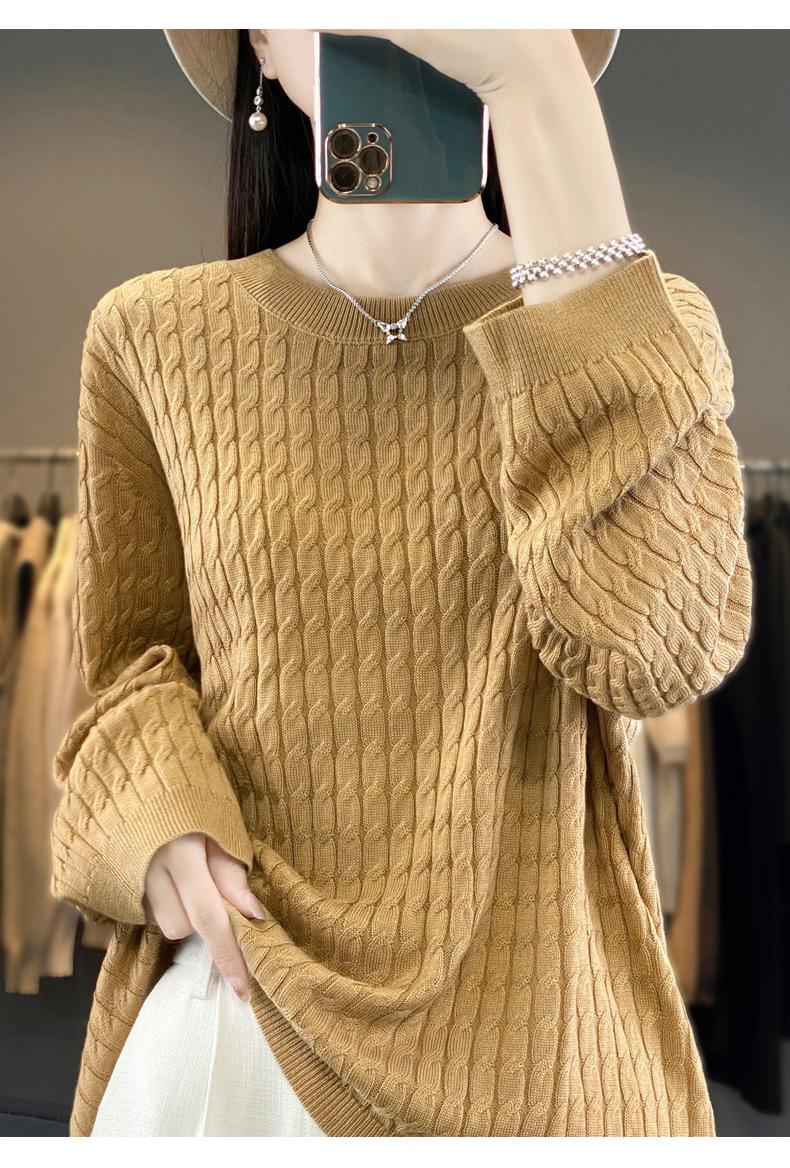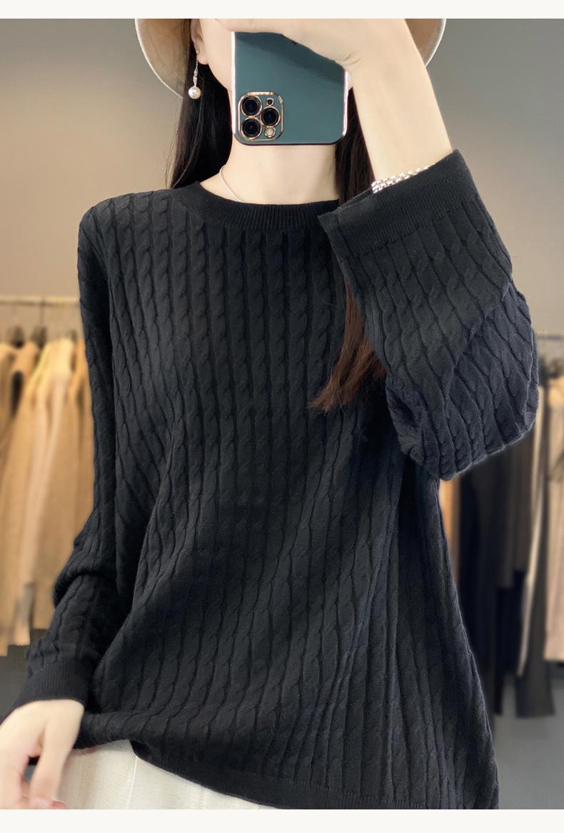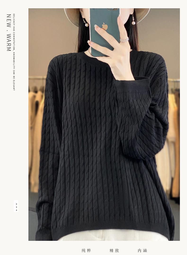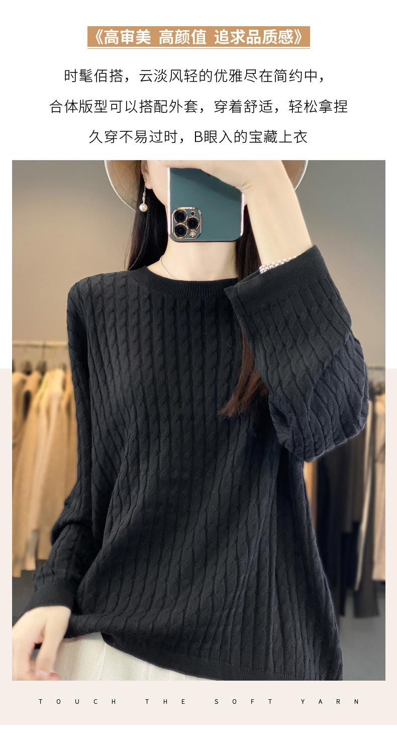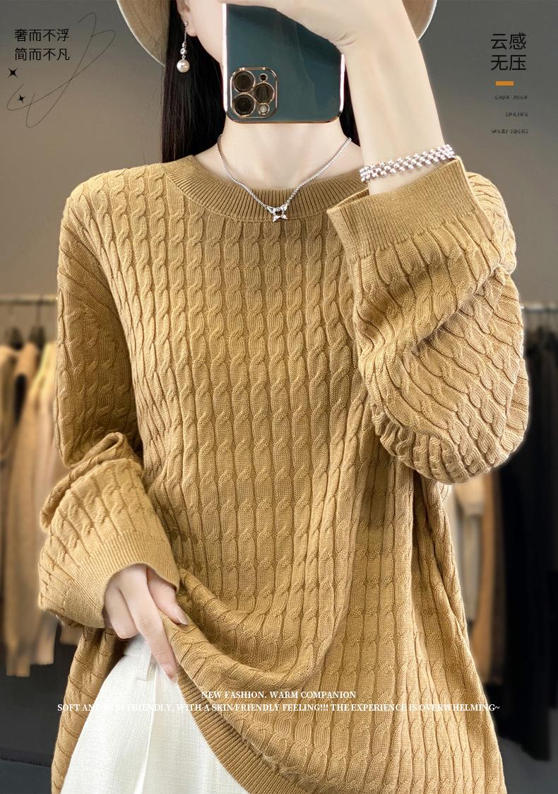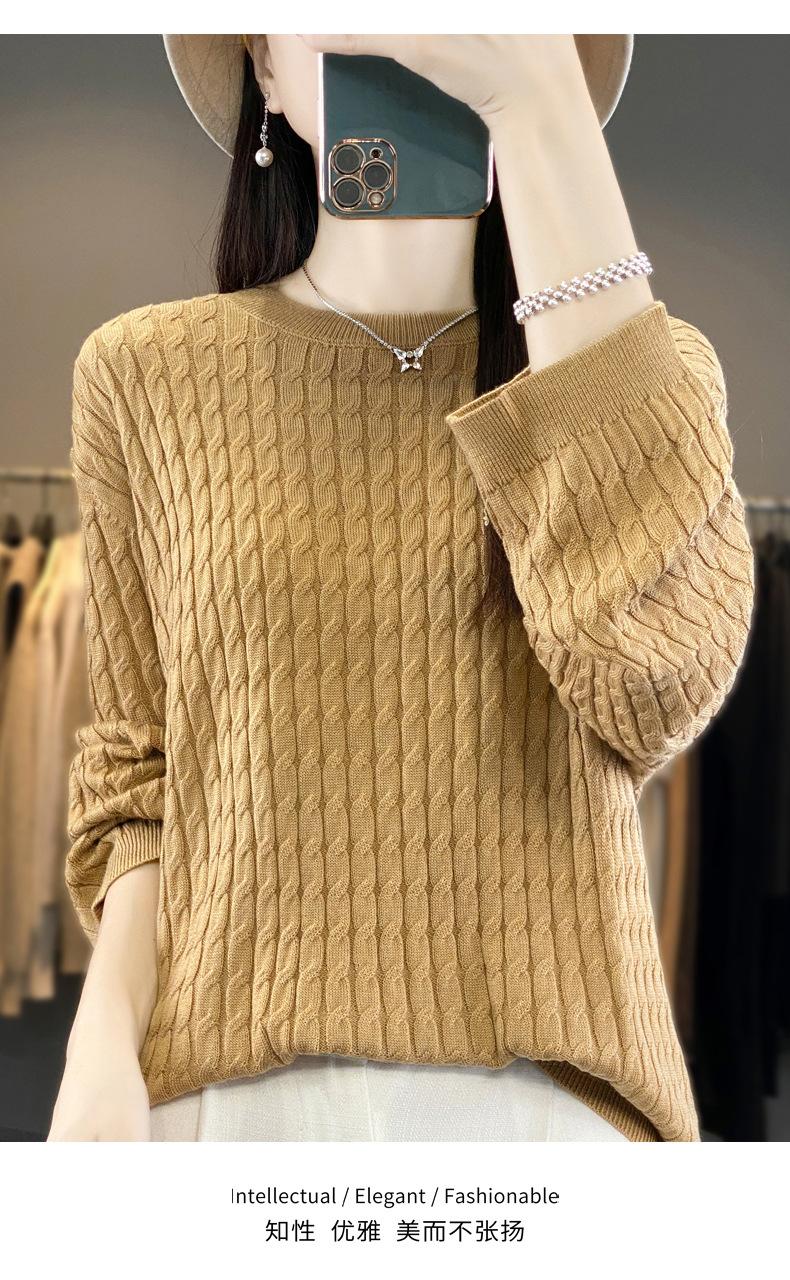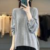 Suéter de punto de lana nueva para otoño e invierno, jersey de cuello redondo para mujer, suéter a cuadros, suéter de punto con base suelta, top de color sólido de moda
