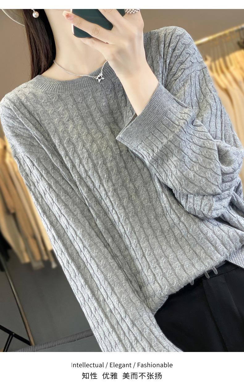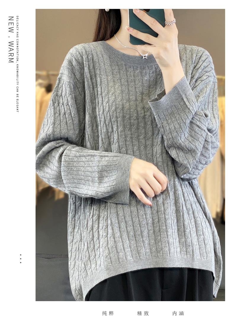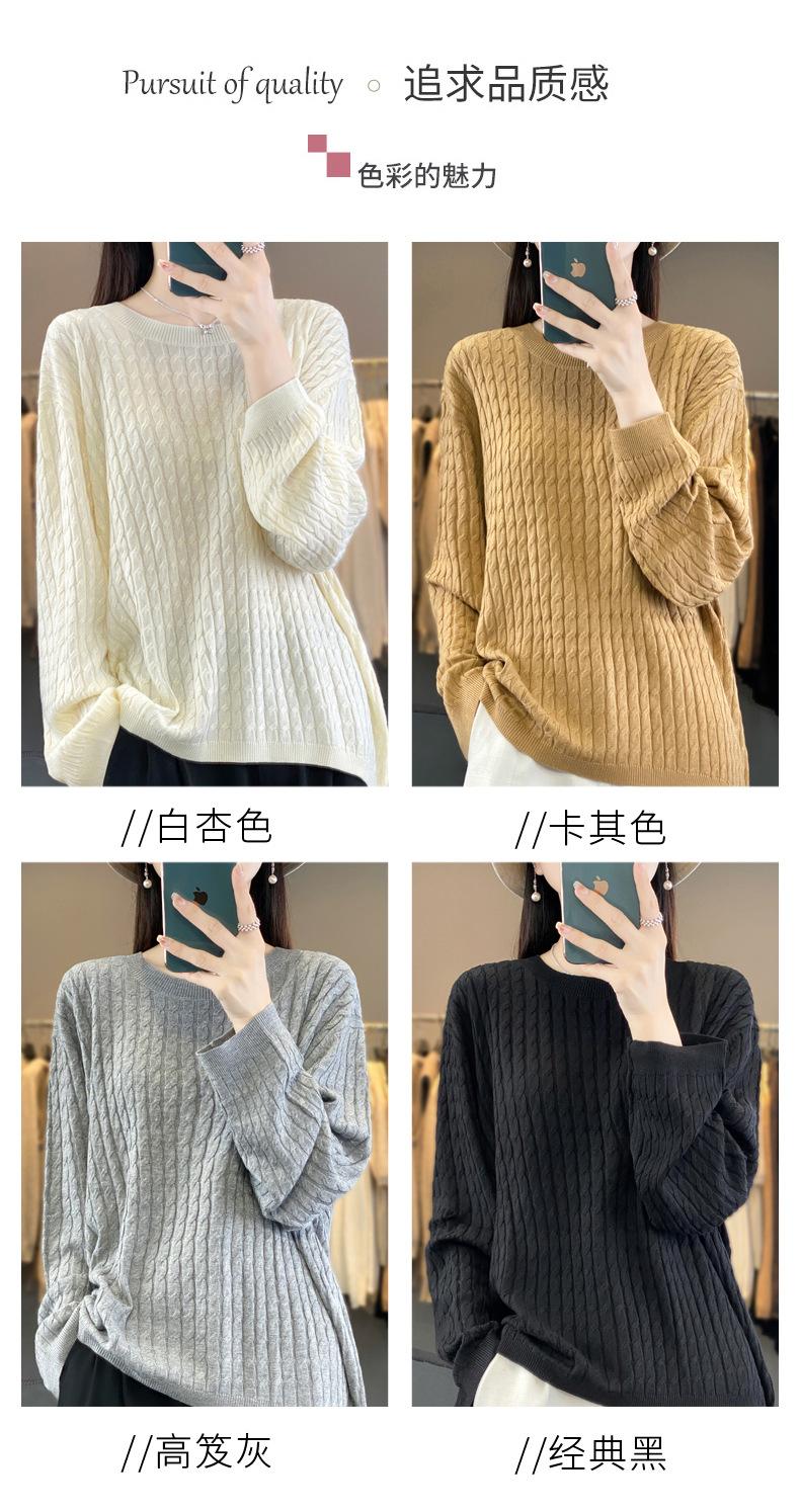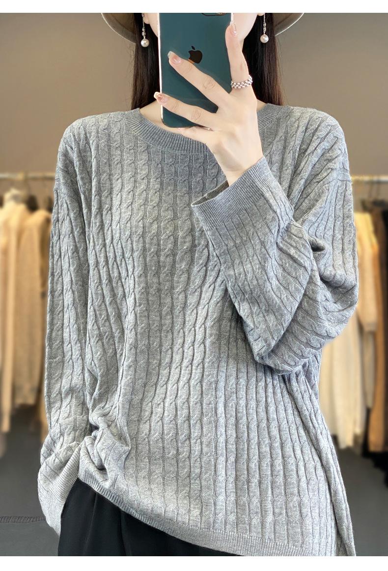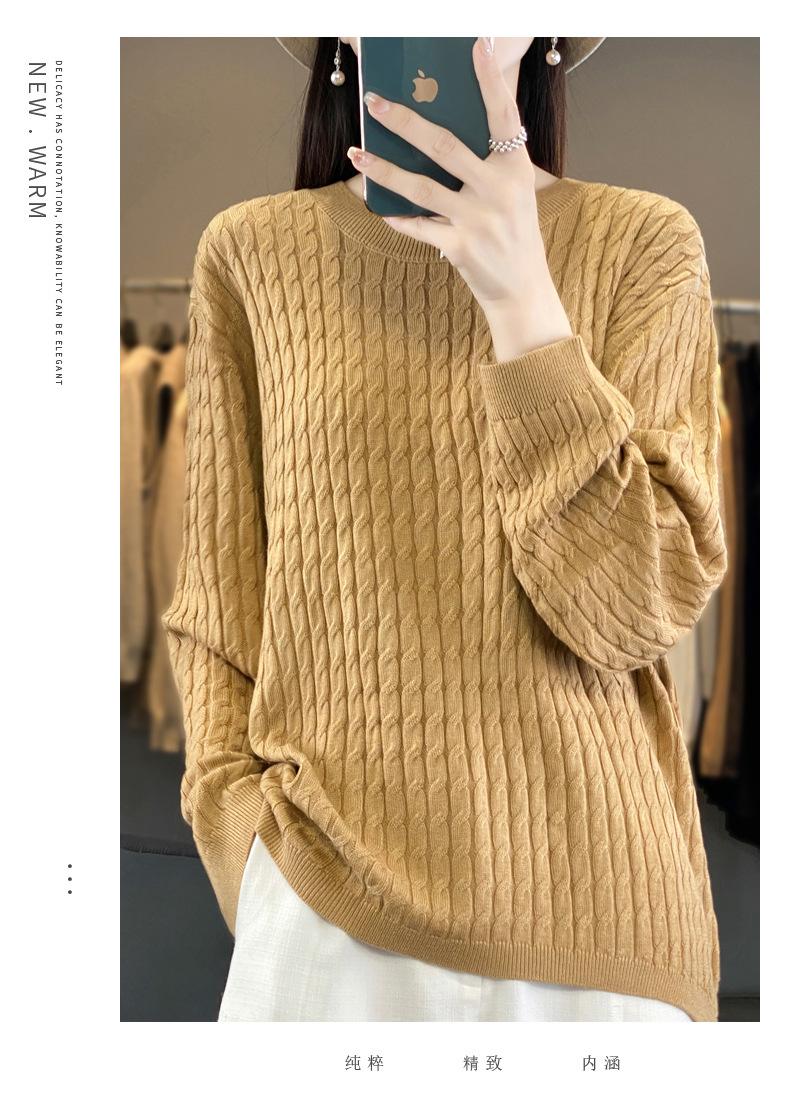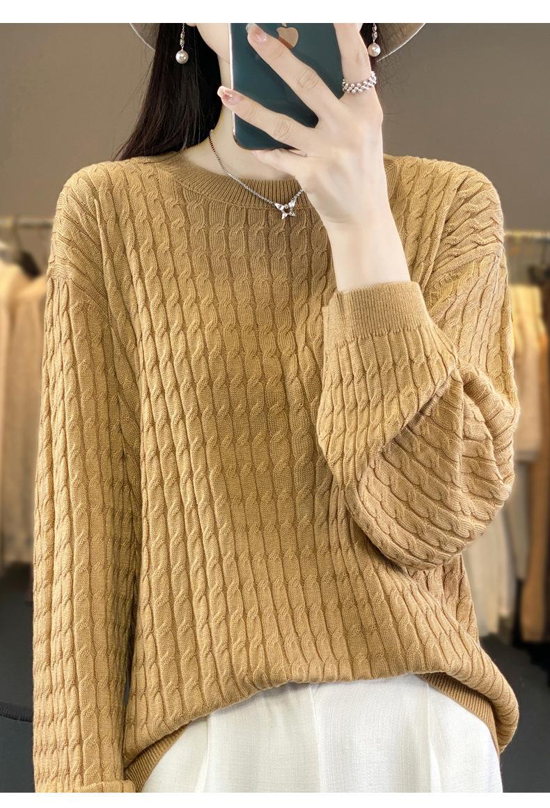 Suéter de punto de lana nueva para otoño e invierno, jersey de cuello redondo para mujer, suéter a cuadros, suéter de punto con base suelta, top de color sólido de moda