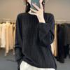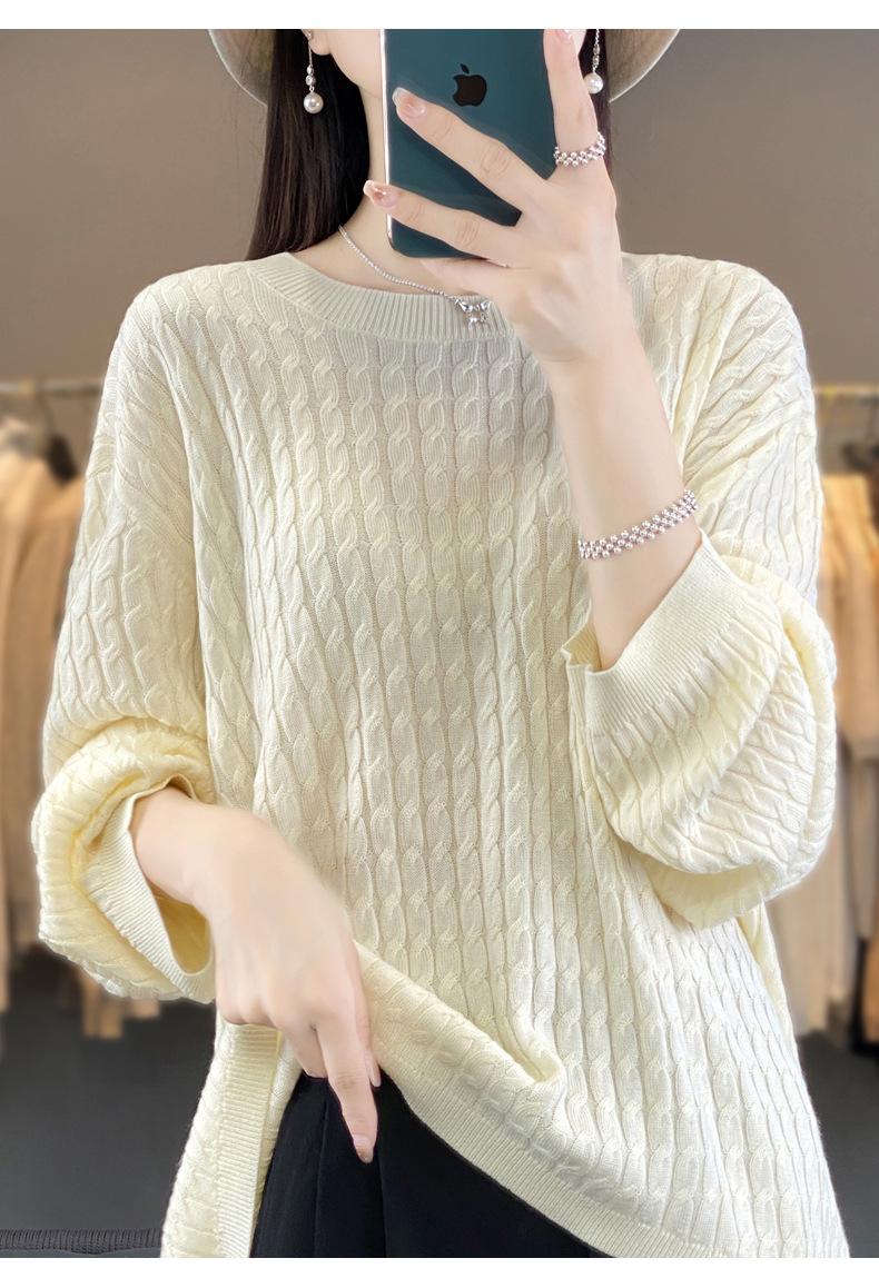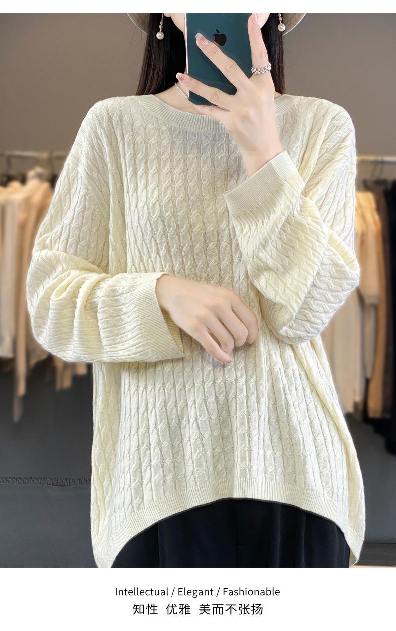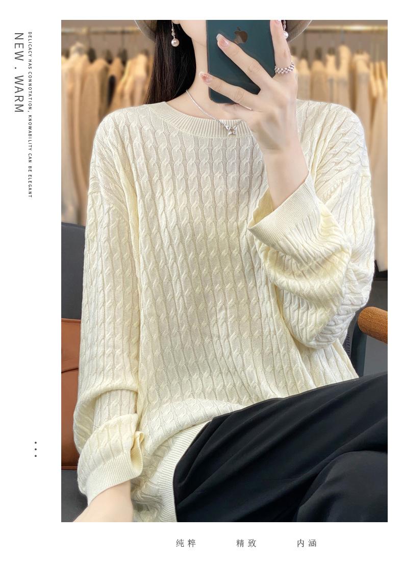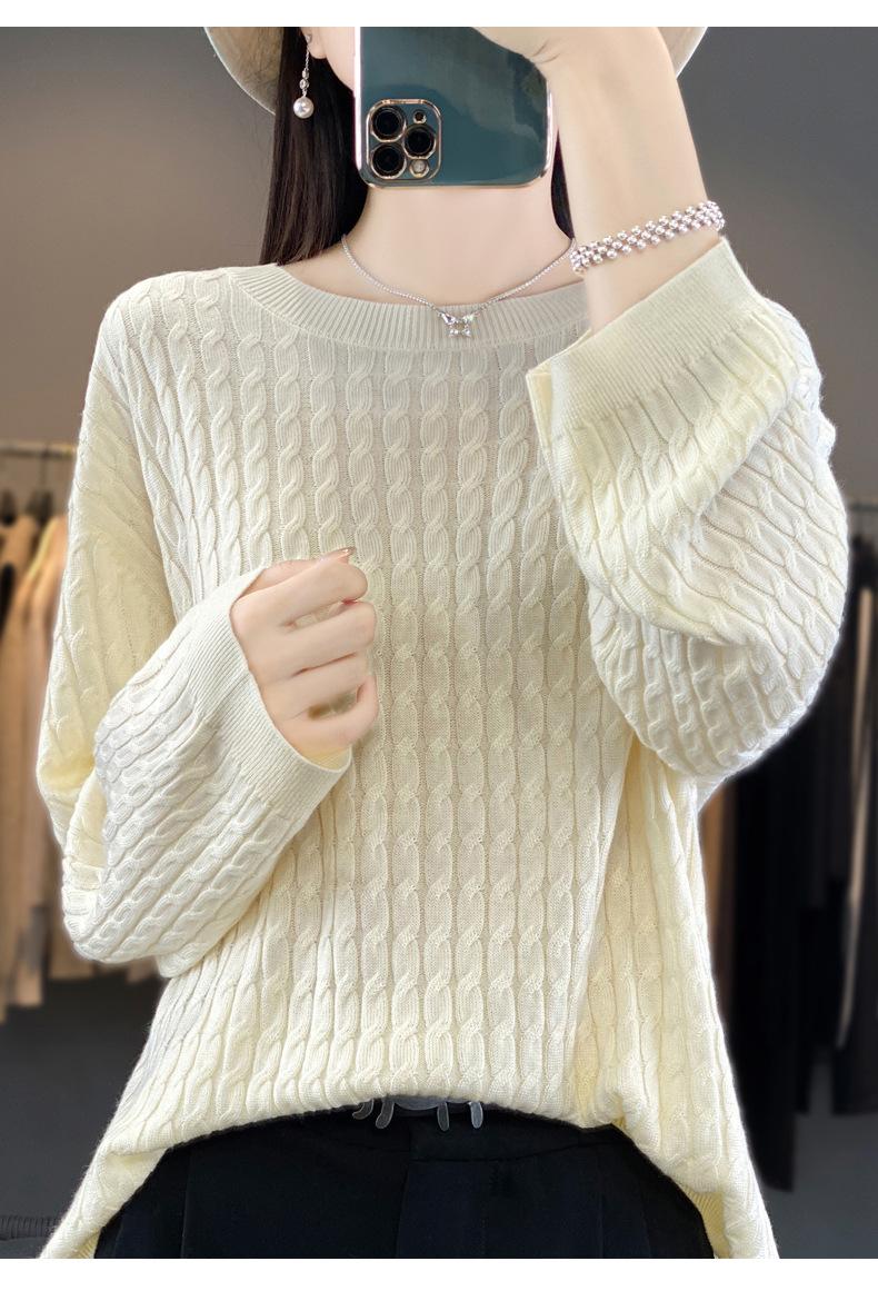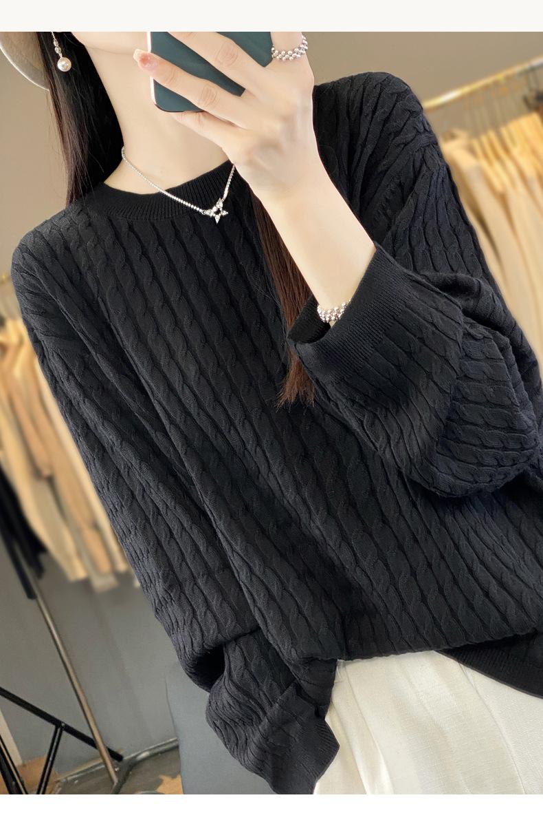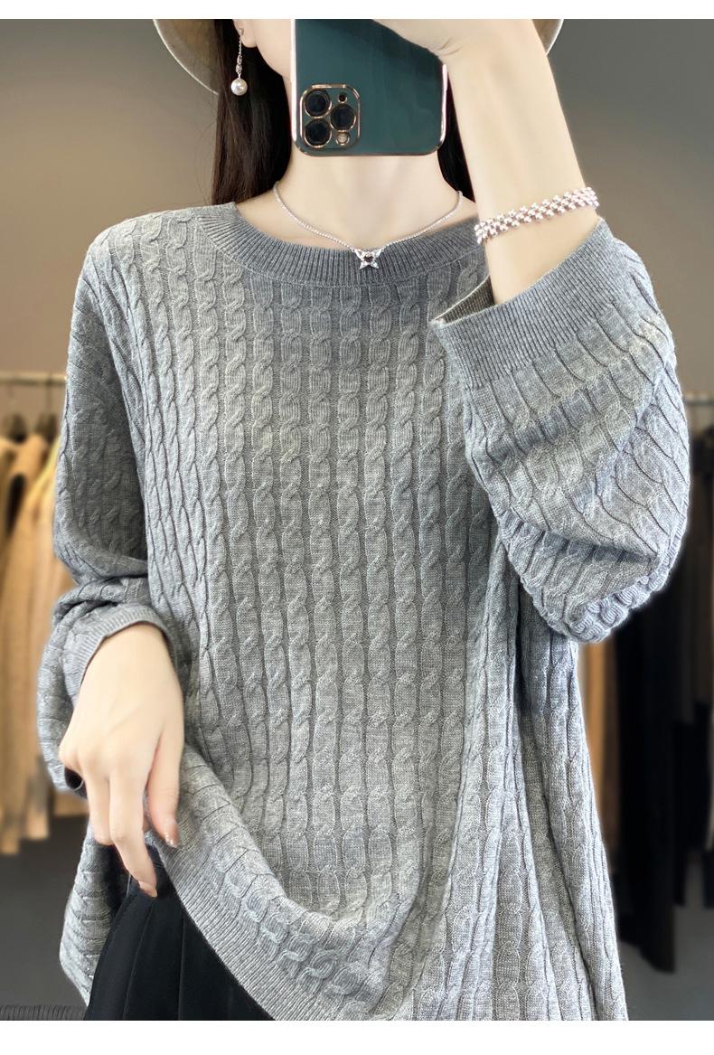 Suéter de punto de lana nueva para otoño e invierno, jersey de cuello redondo para mujer, suéter a cuadros, suéter de punto con base suelta, top de color sólido de moda