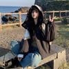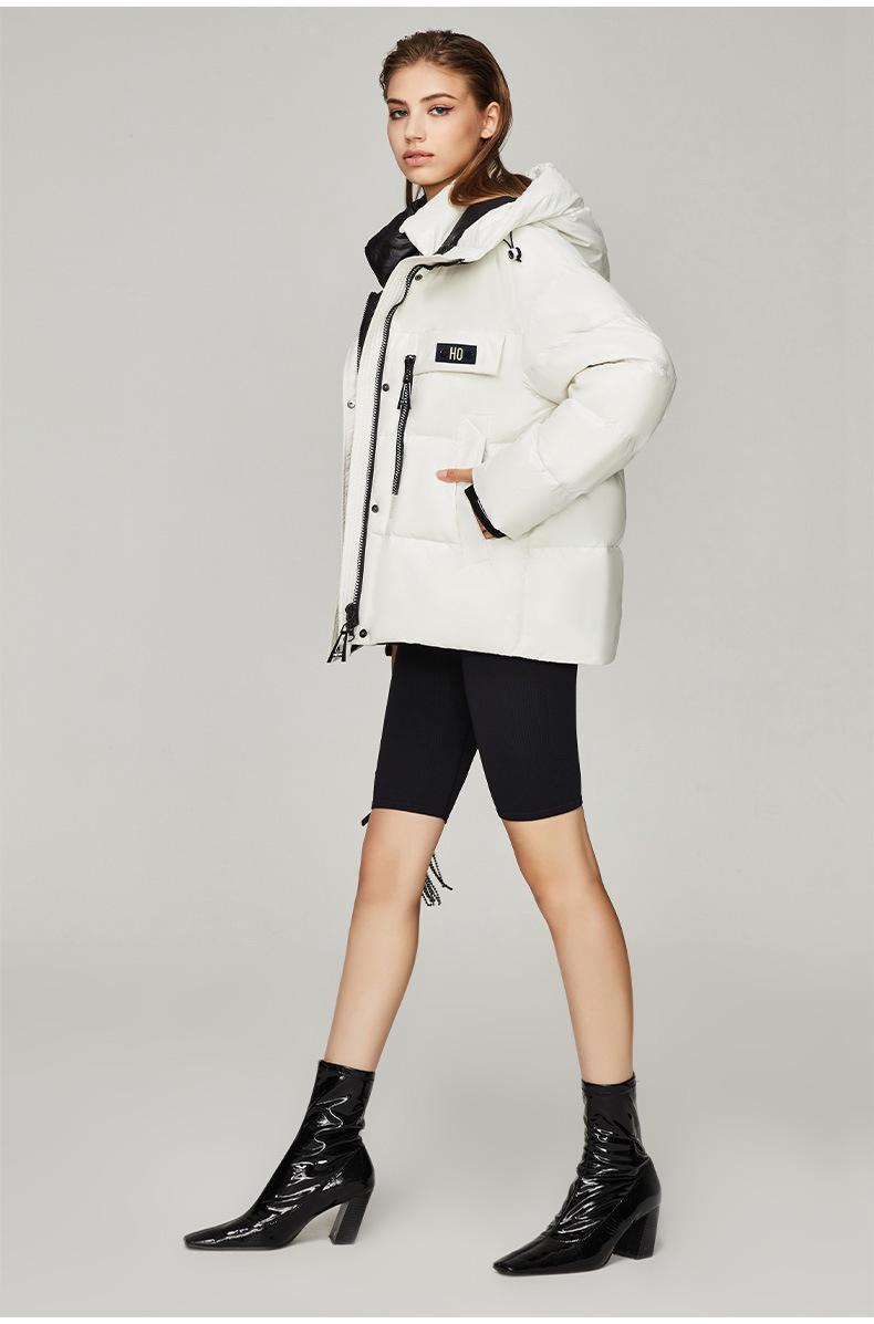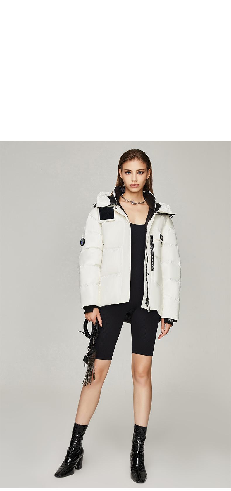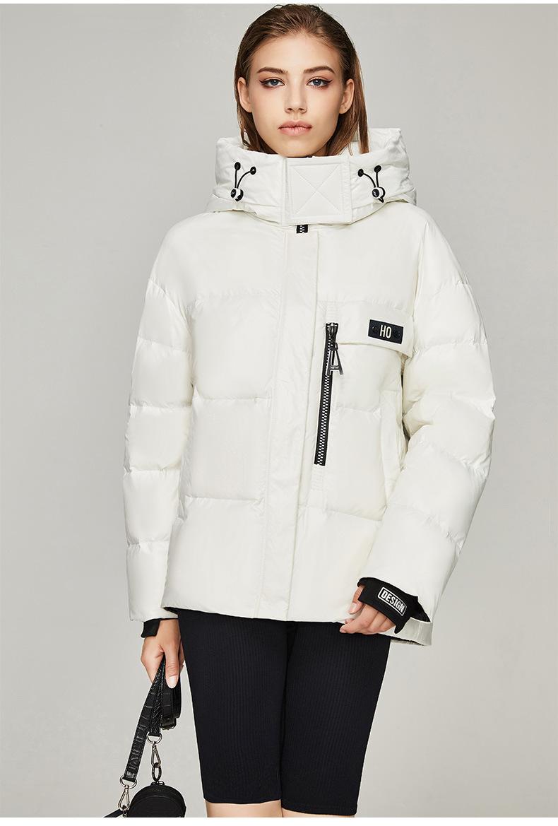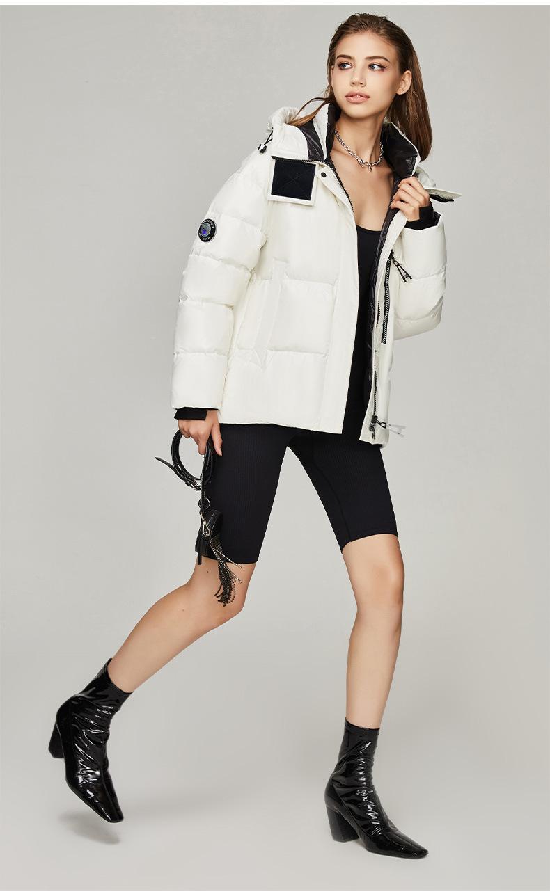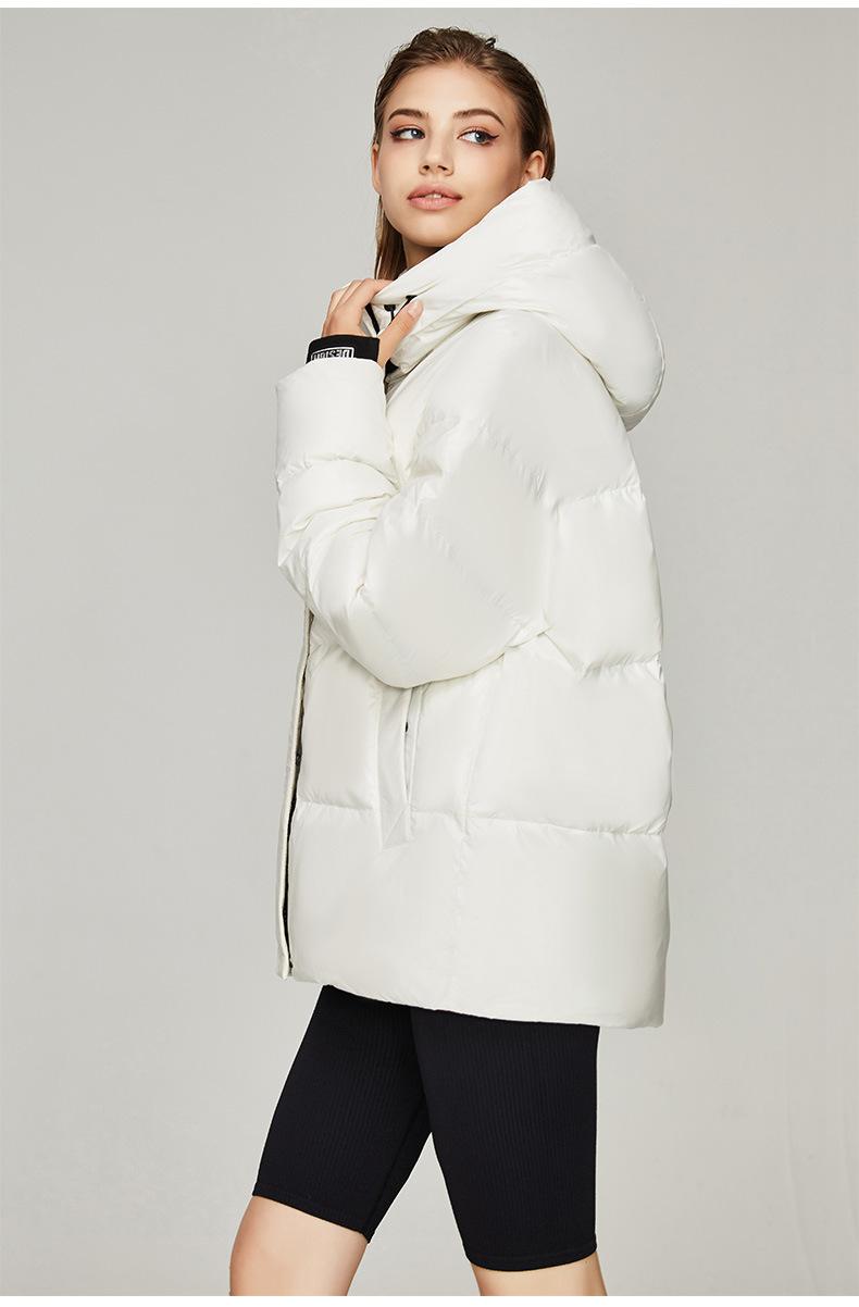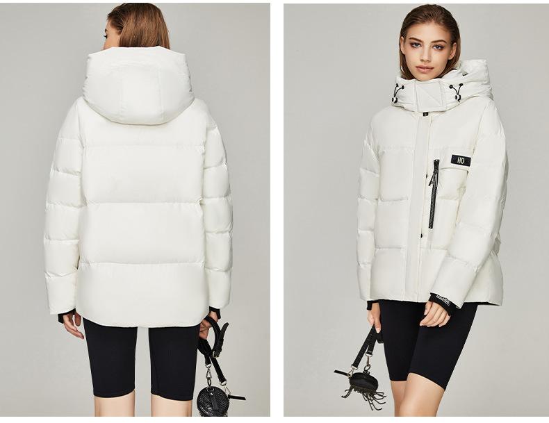 Chaqueta de plumón cálida gruesa corta de moda casual con capucha para mujer