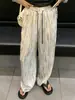 Estilo Perezoso Pantalones de Pierna Ancha de Cintura Suelta a Rayas Coloridas para Mujer Verano 2024 Nuevo Diseño Sentido Suelto Recto Casual