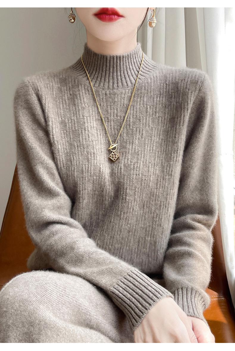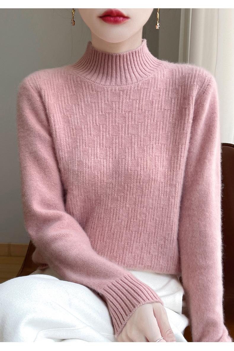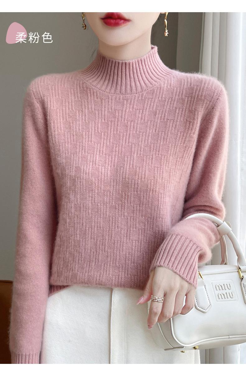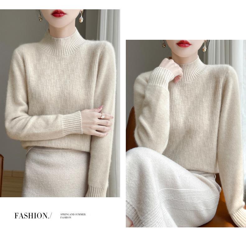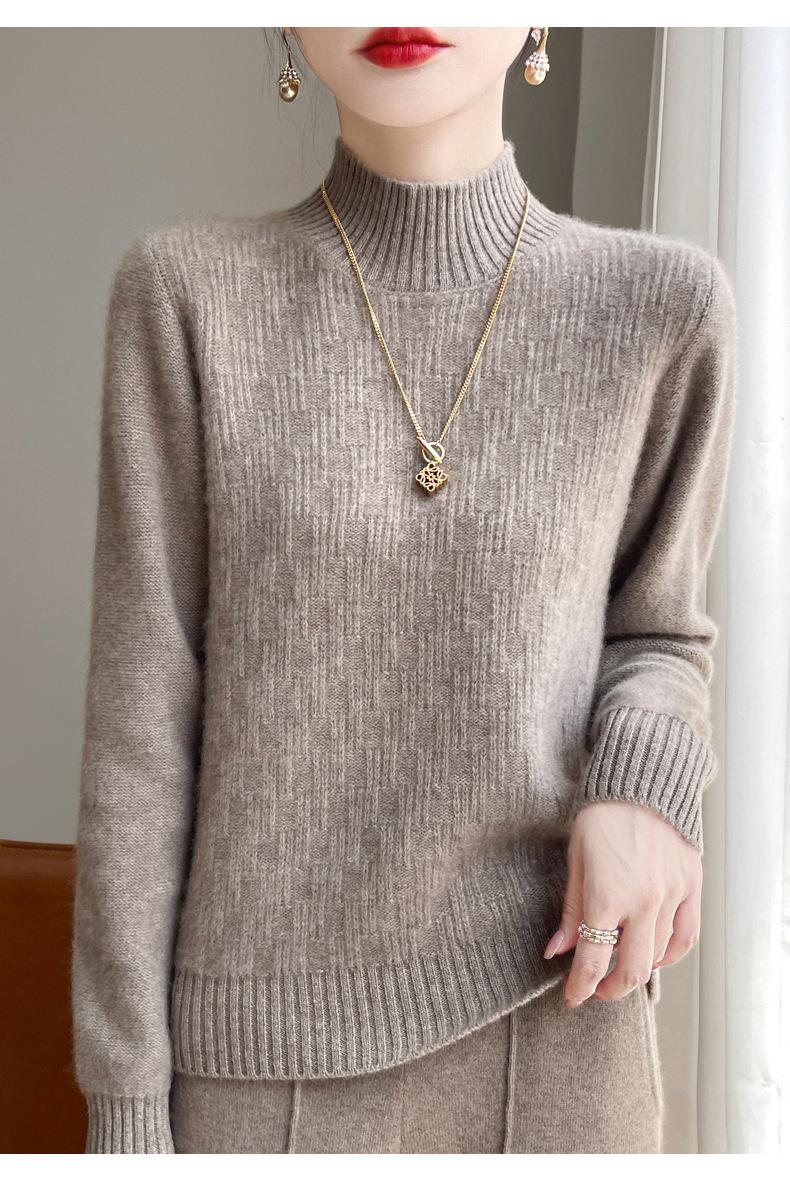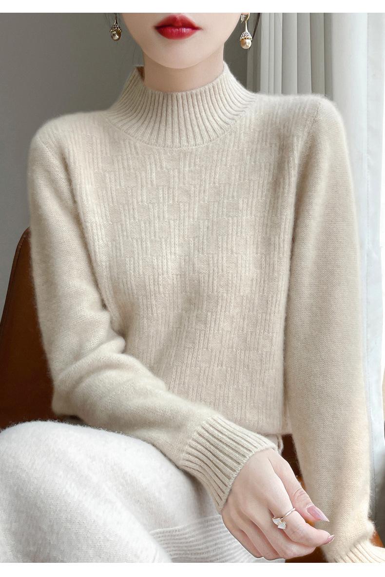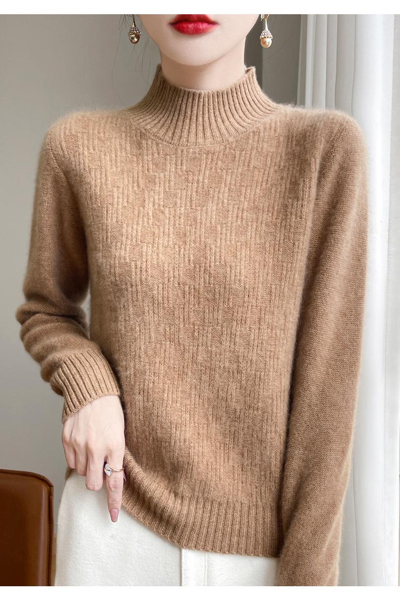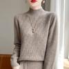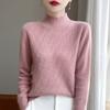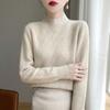 Suéter de jacquard grueso de cuello alto medio para otoño e invierno, camisa de punto para mujer, suéter de manga larga, suéter superior holgado y ajustado