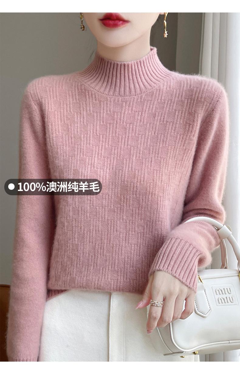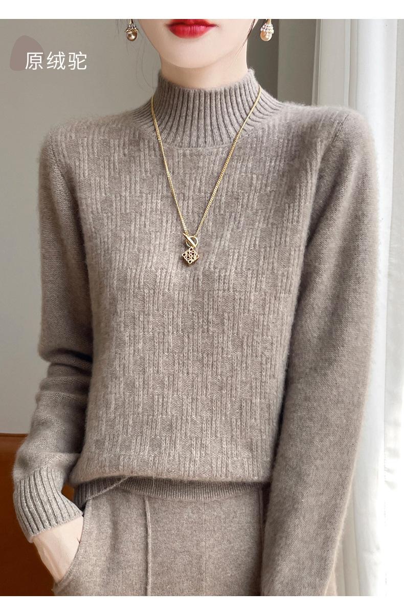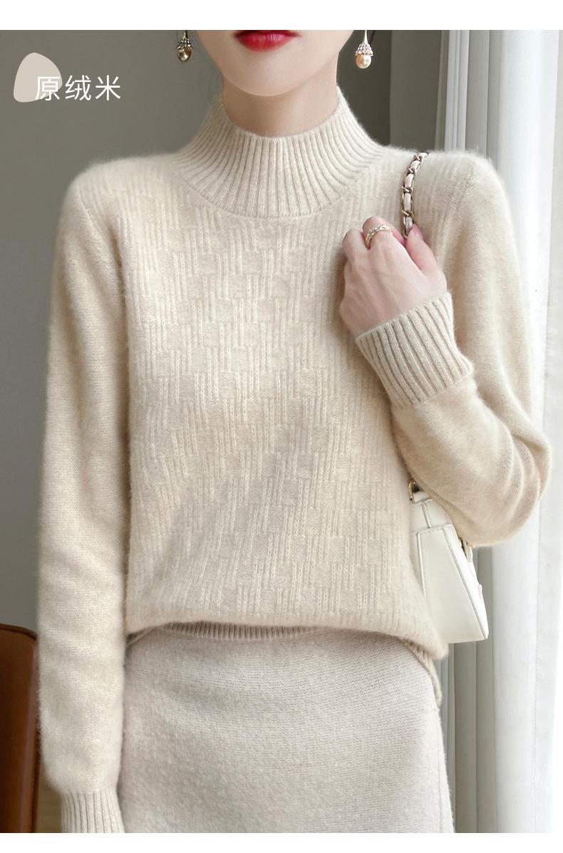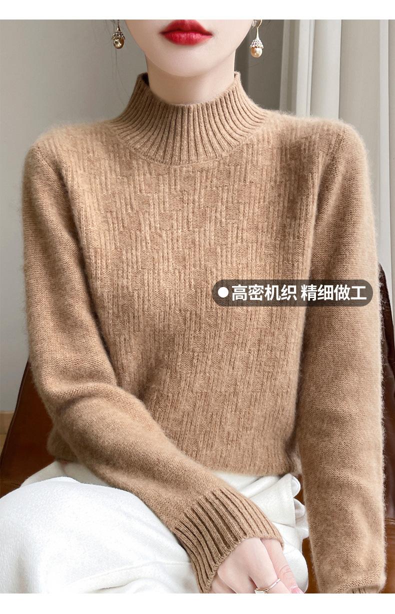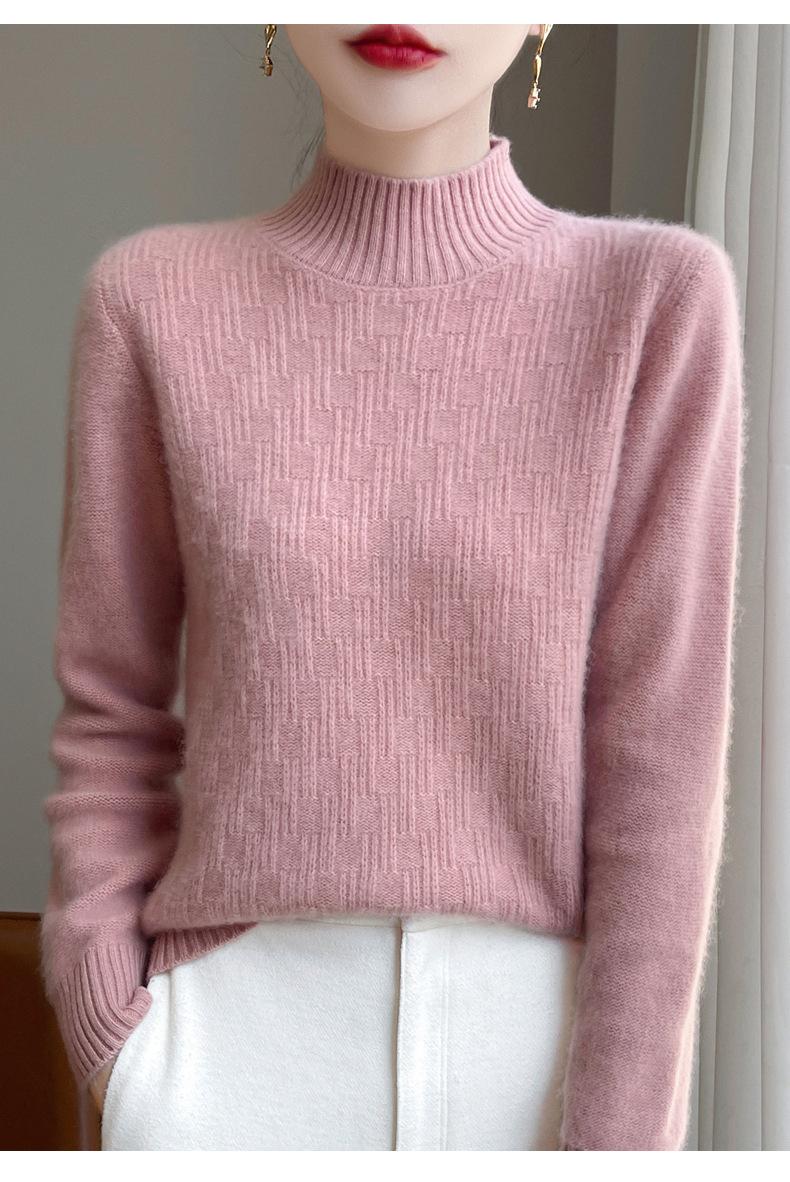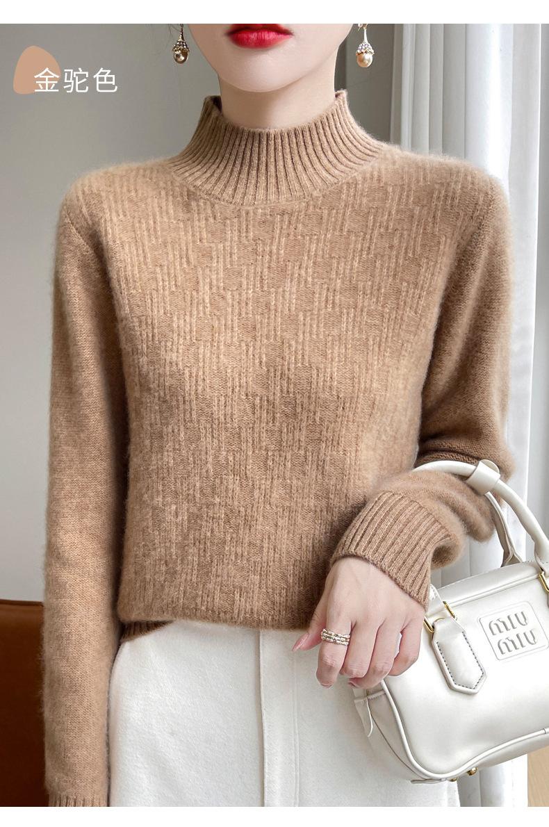 Suéter de jacquard grueso de cuello alto medio para otoño e invierno, camisa de punto para mujer, suéter de manga larga, suéter superior holgado y ajustado