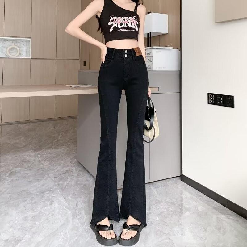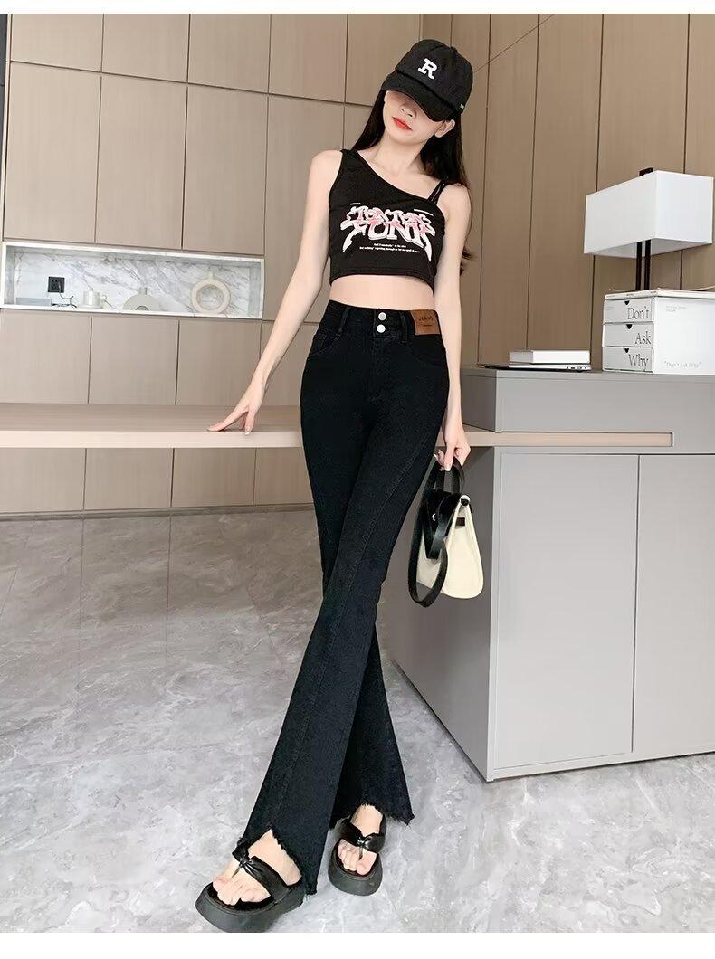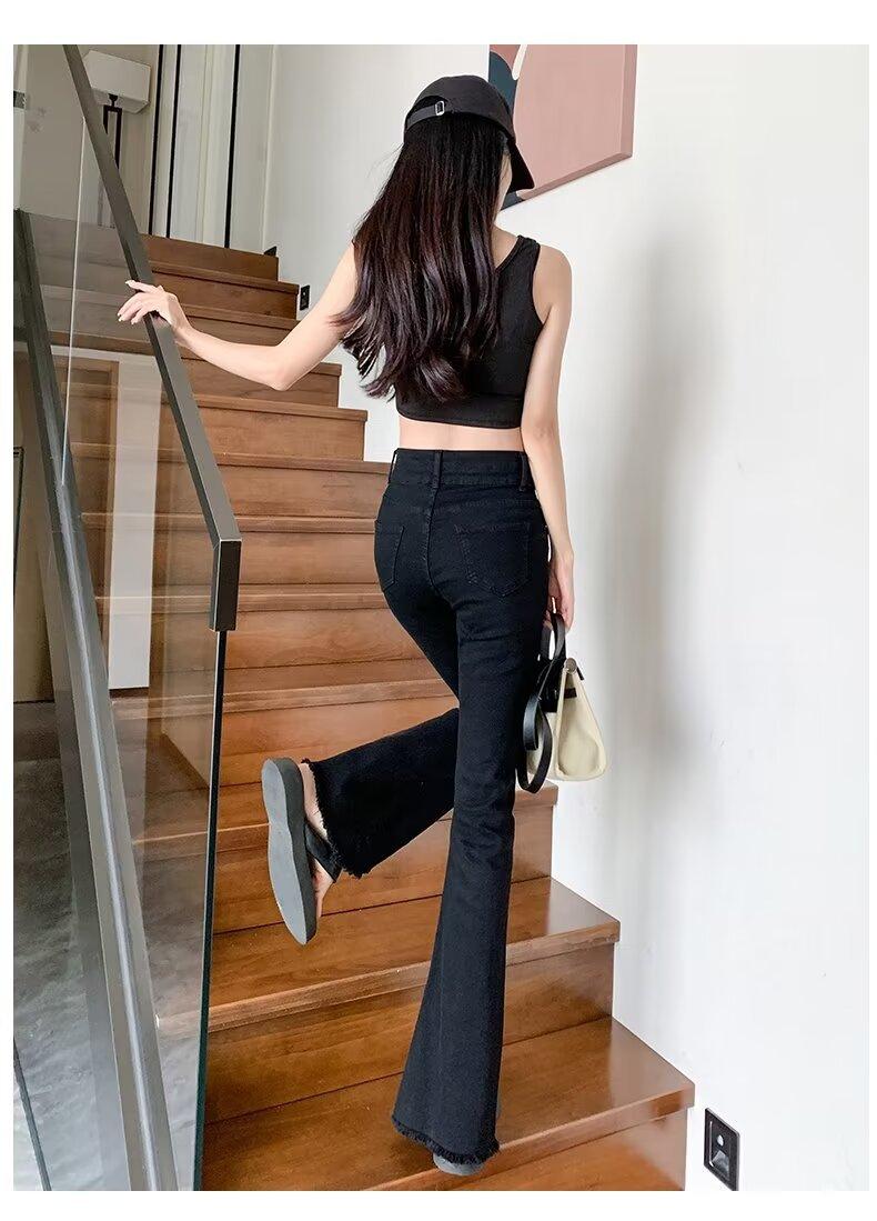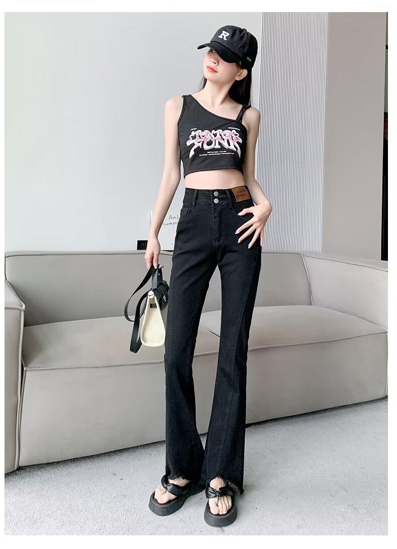 Pantalones vaqueros rectos para mujer, micropantalones, modernos, ajustados, elásticos, negros, largos, estilo retro de Hong Kong, de color claro, pequeños.