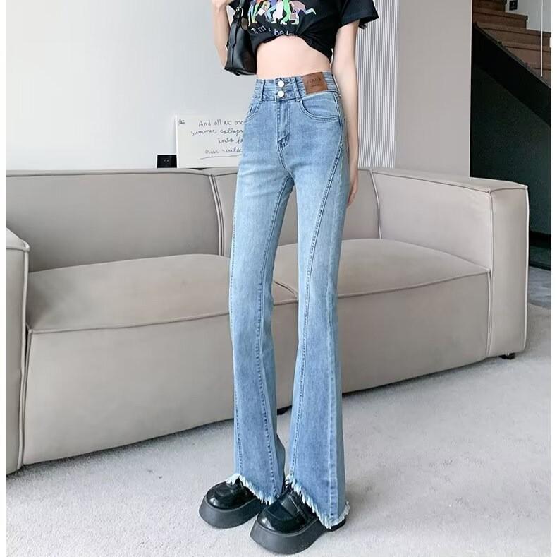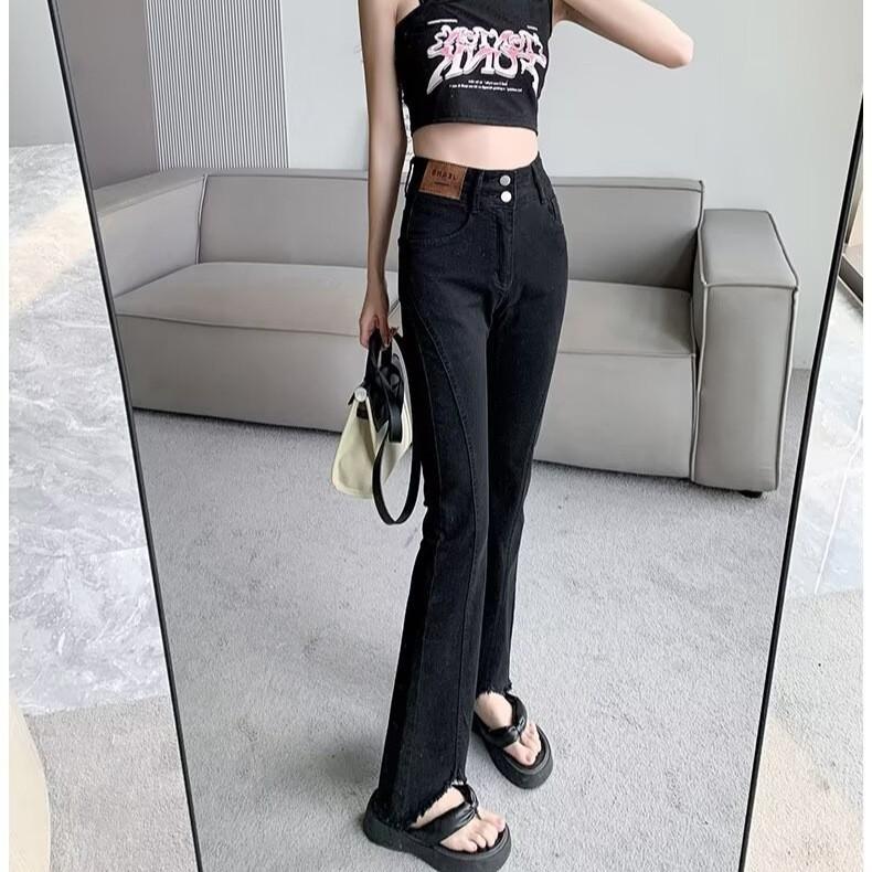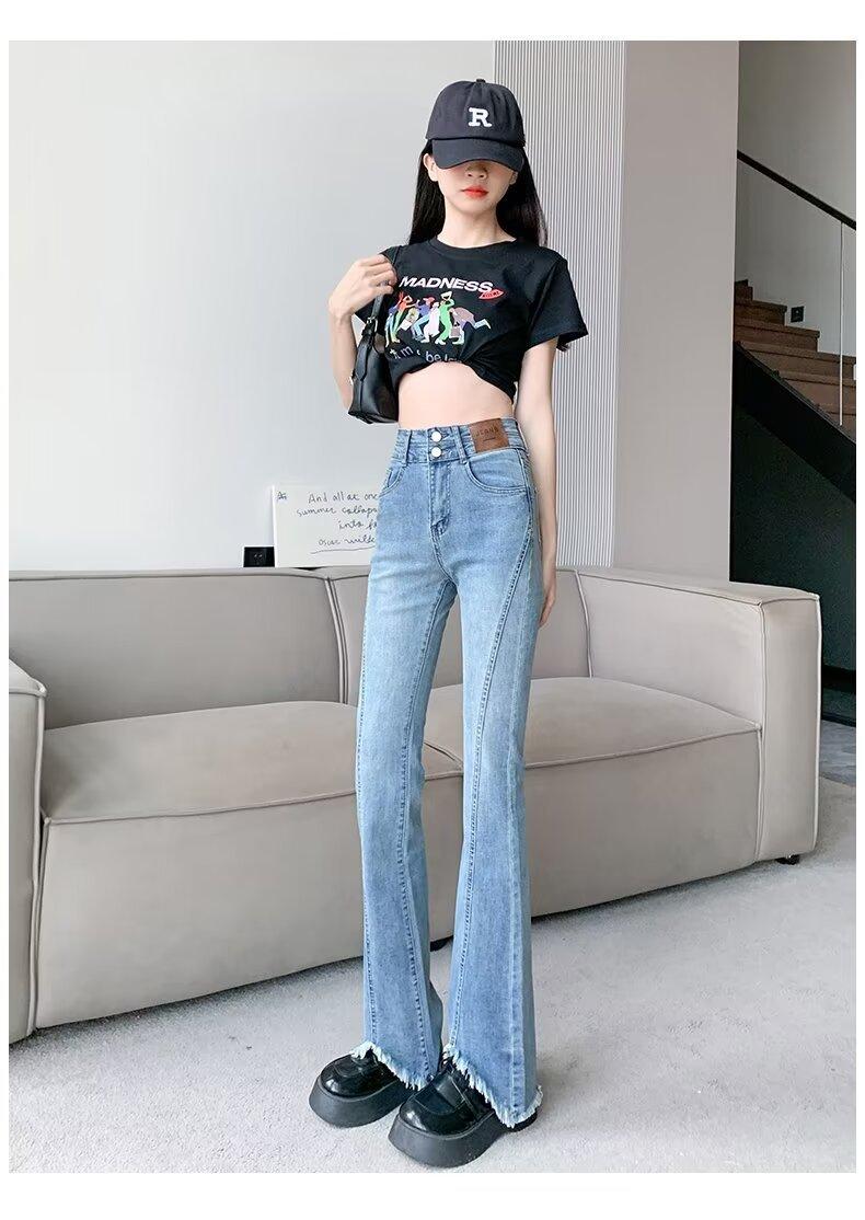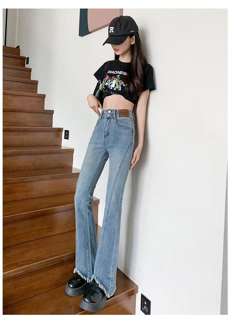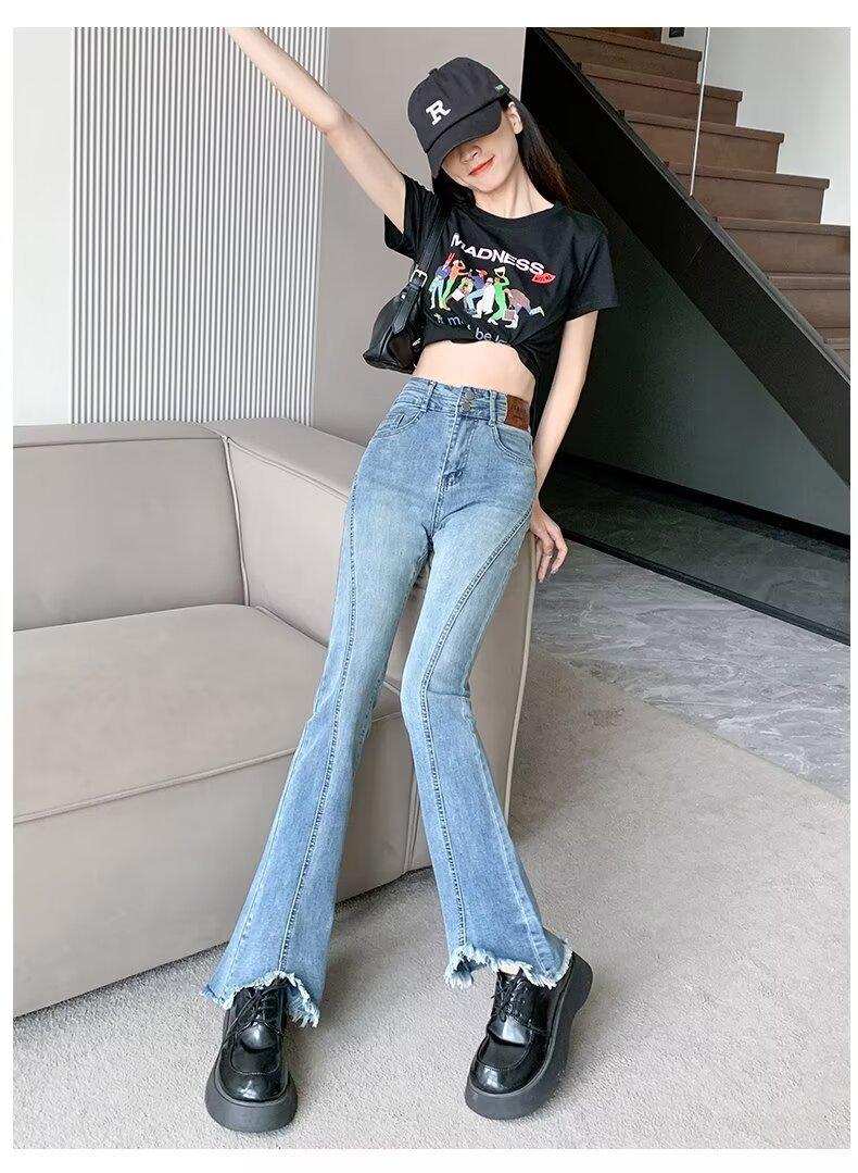 Pantalones vaqueros rectos para mujer, micropantalones, modernos, ajustados, elásticos, negros, largos, estilo retro de Hong Kong, de color claro, pequeños.